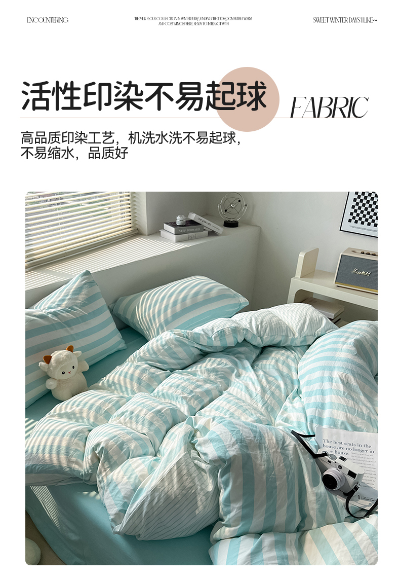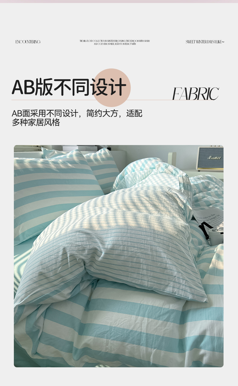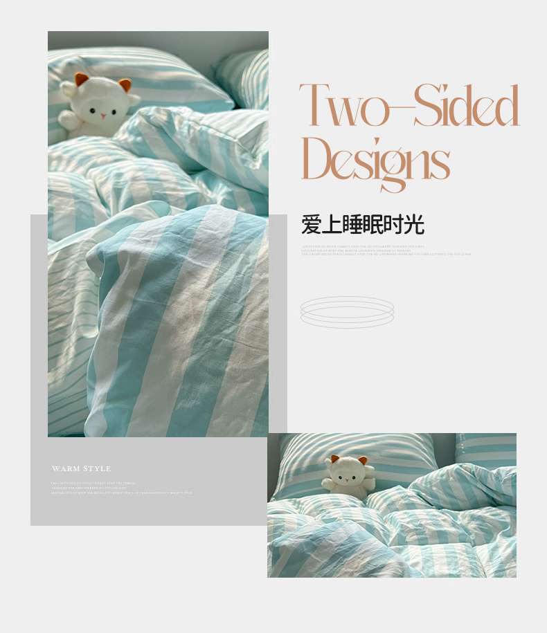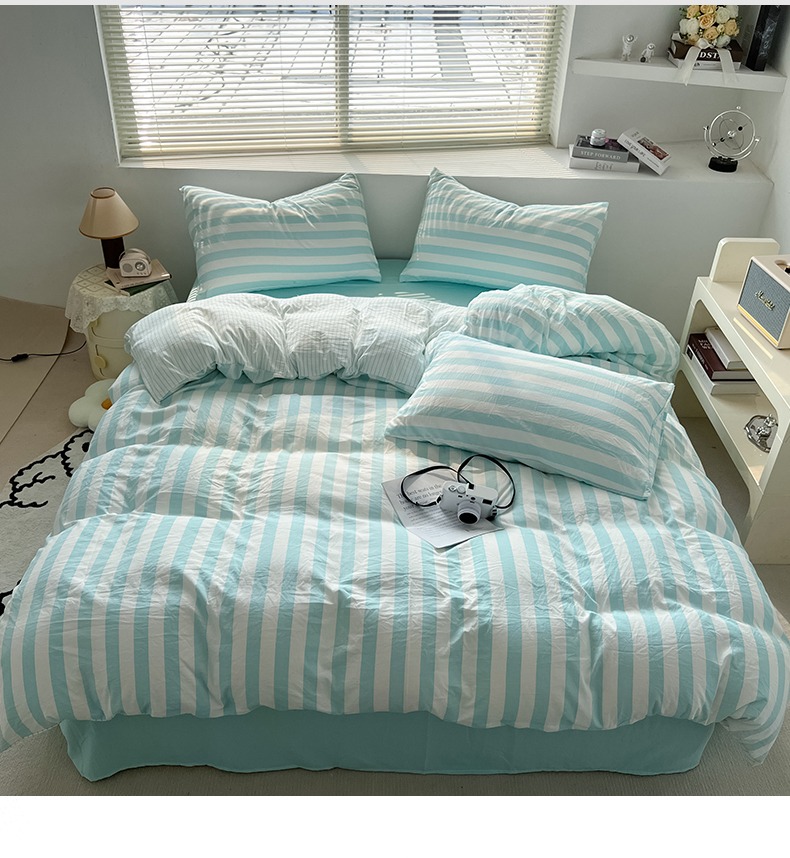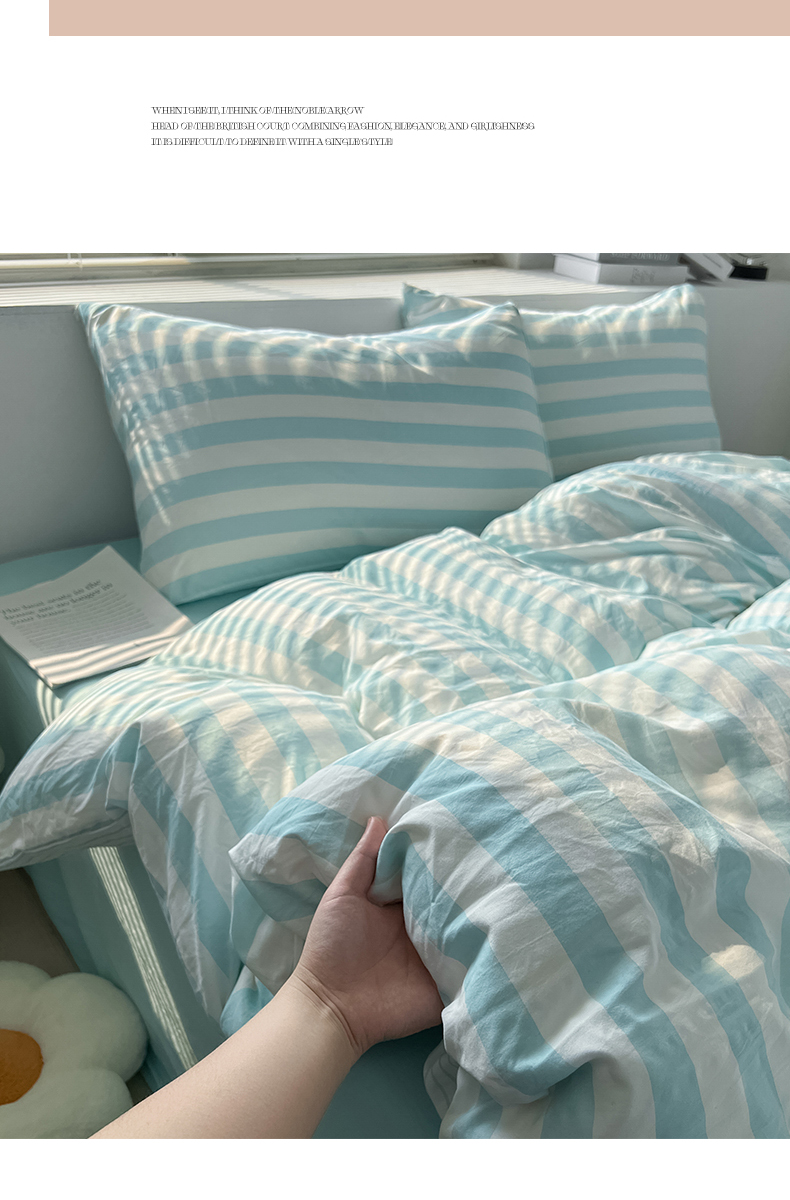 当前位置: 91家纺网 > 商品网购 > 床品套件 > 四件套 > 全棉普通四件套 > 多品 2024新款高克重水洗棉双层纱皱皱纱四件套 糯米蓝条
