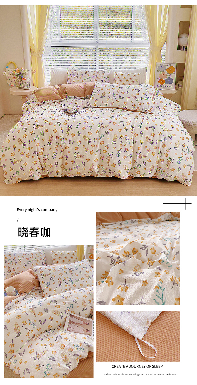 商品名称:氧家 2024新款水洗棉华夫格泡泡纱四件套 晓春咖
