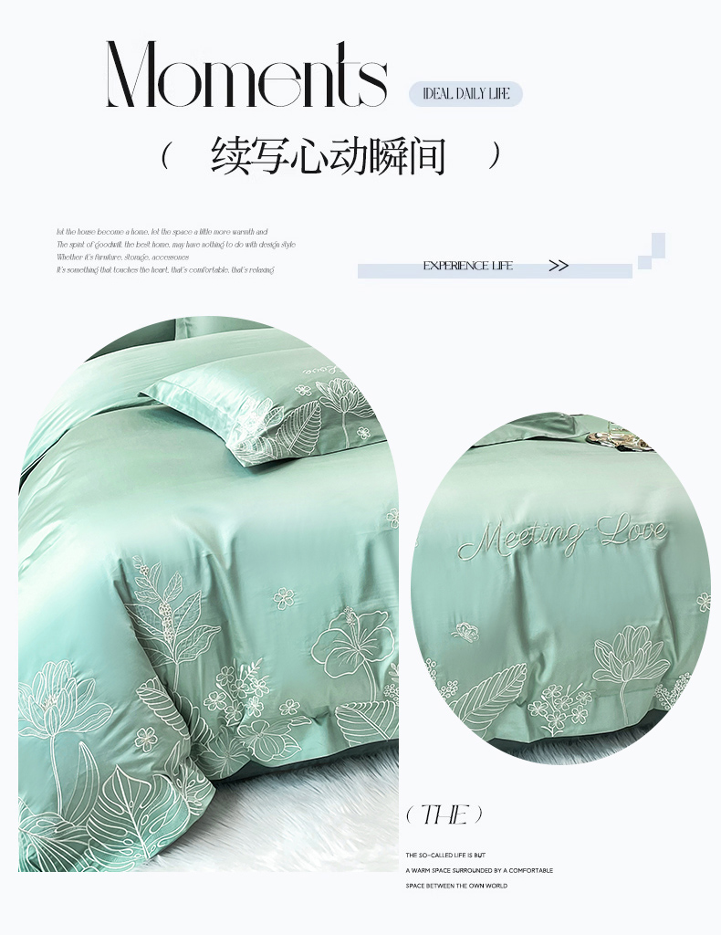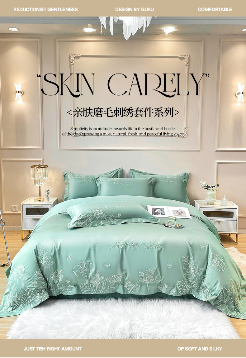 2024新款亲肤棉磨毛刺绣四件套-花前悦夏 花前悦夏-青草绿