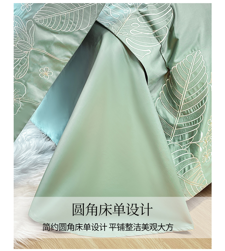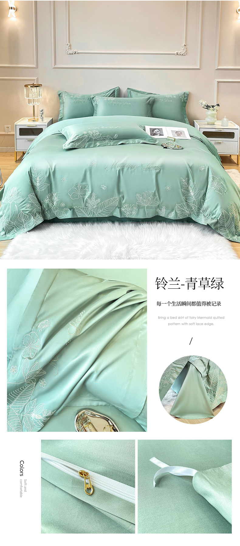 商品名称:2024新款亲肤棉磨毛刺绣四件套-花前悦夏 花前悦夏-青草绿
