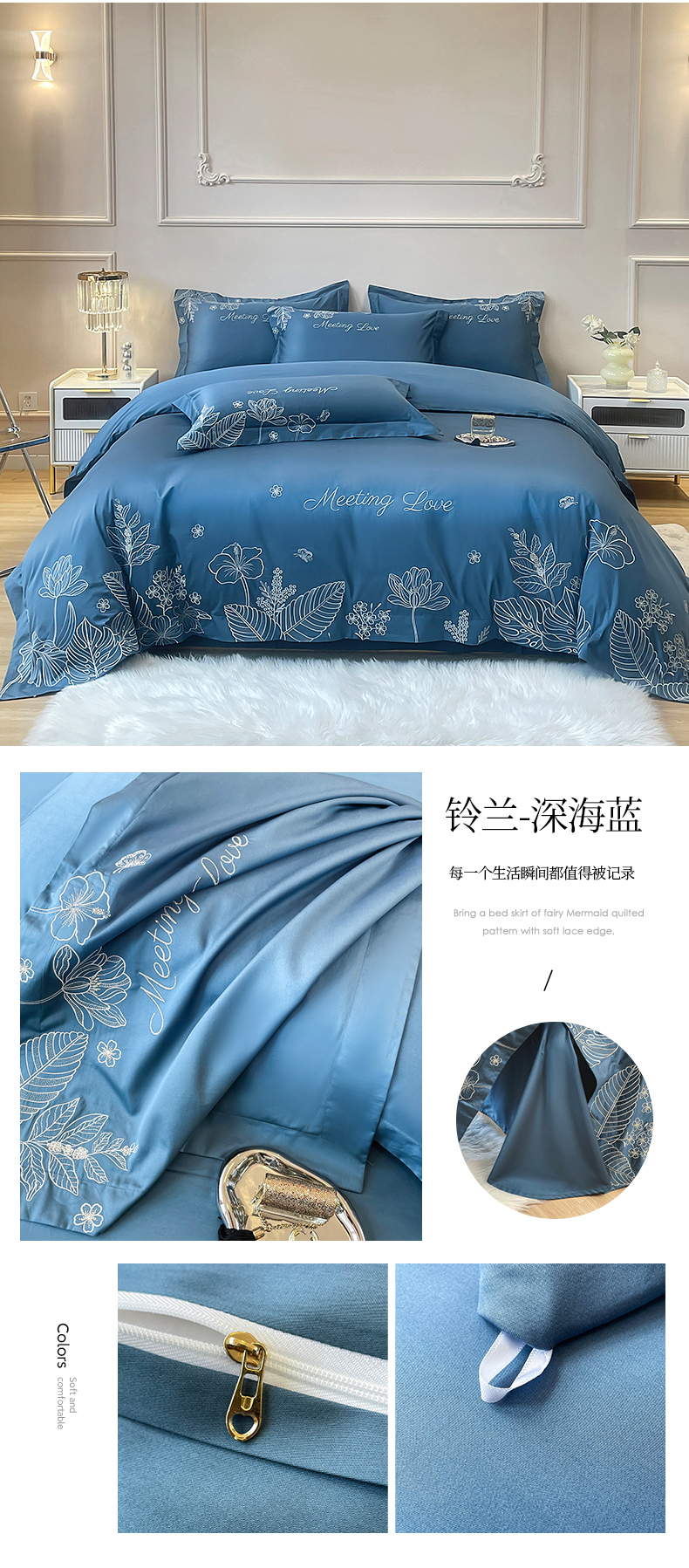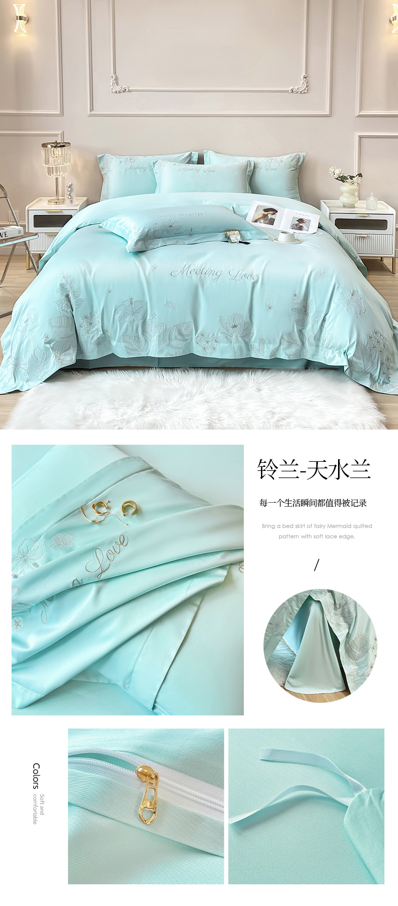 (总)金麦家纺 2025新款冰丝绣花四件套-心愿系列,心愿粉色,心愿燕麦奶,心愿天空蓝,心愿淡雅绿,心愿浅灰