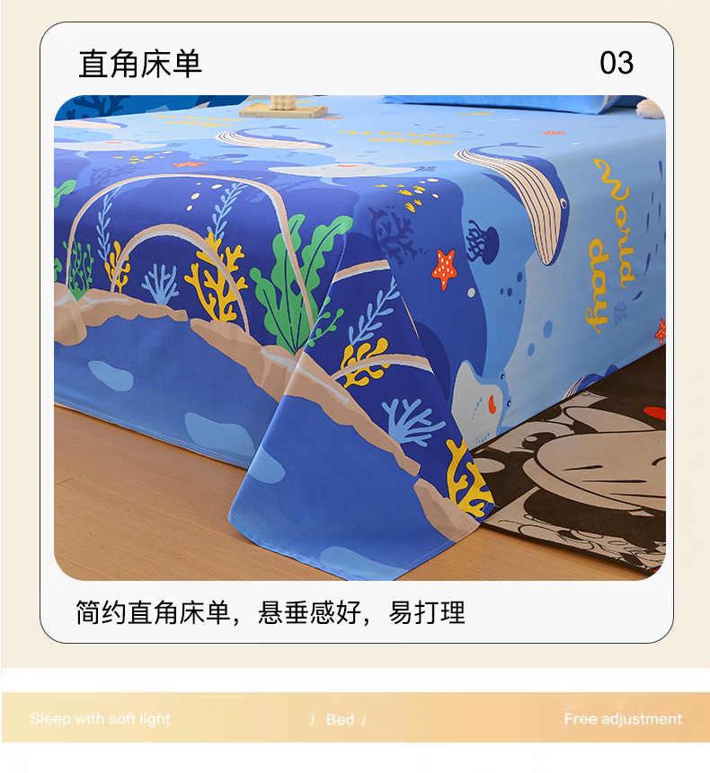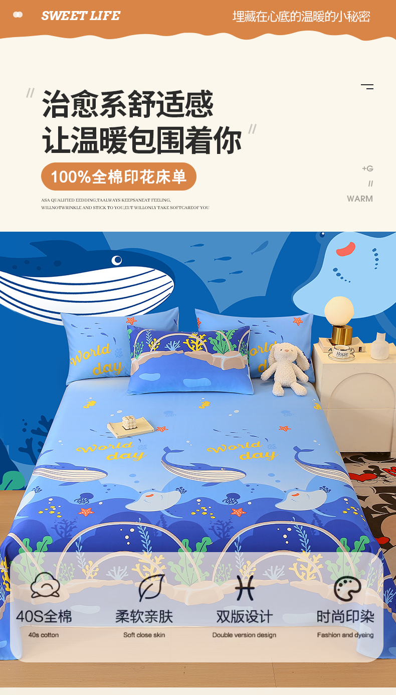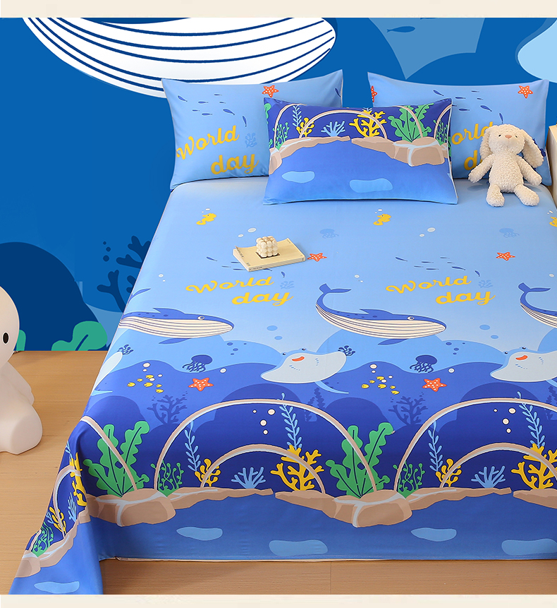 金鑫汇家纺 2024新款全棉印花单床单 海族馆
