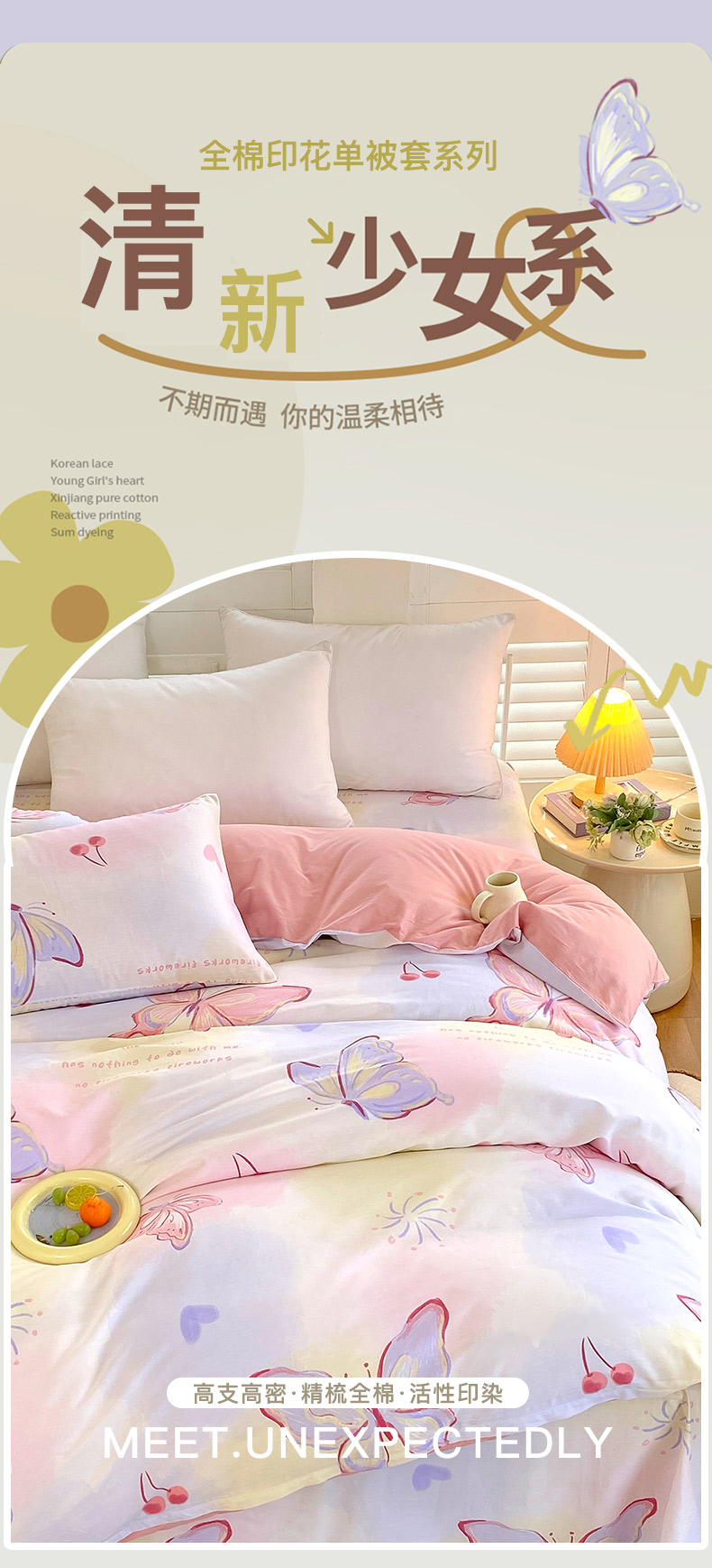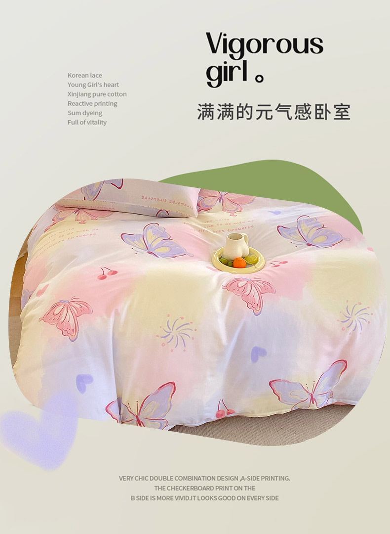 金鑫汇家纺 2024新款全棉印花单被套 彩蝶飞舞