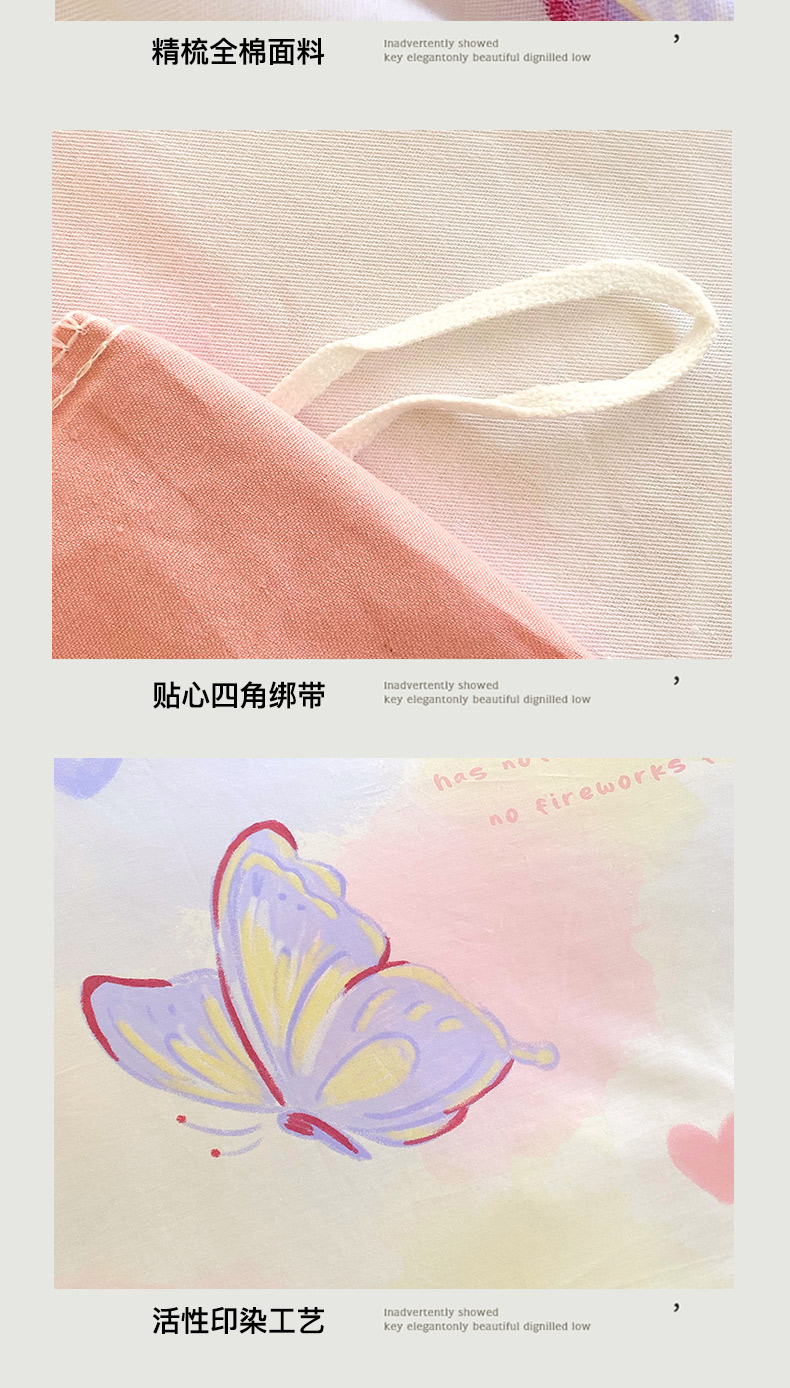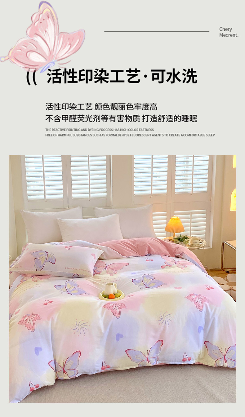 商品名称:金鑫汇家纺 2024新款全棉印花单被套 彩蝶飞舞