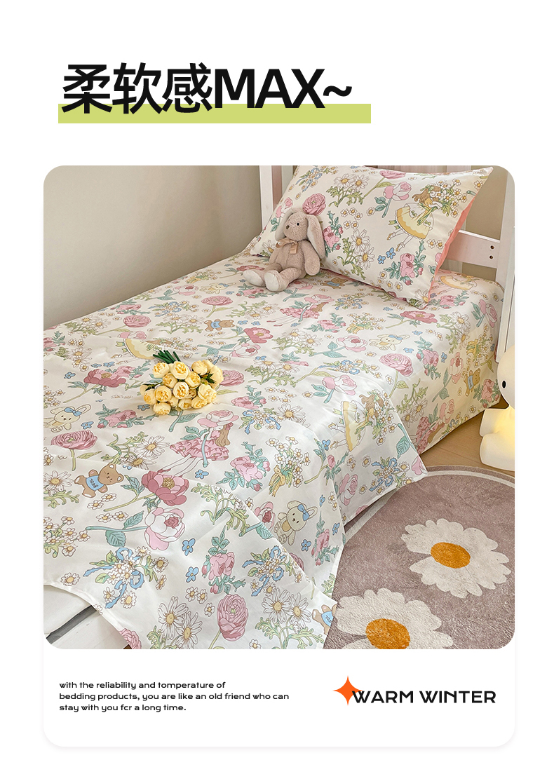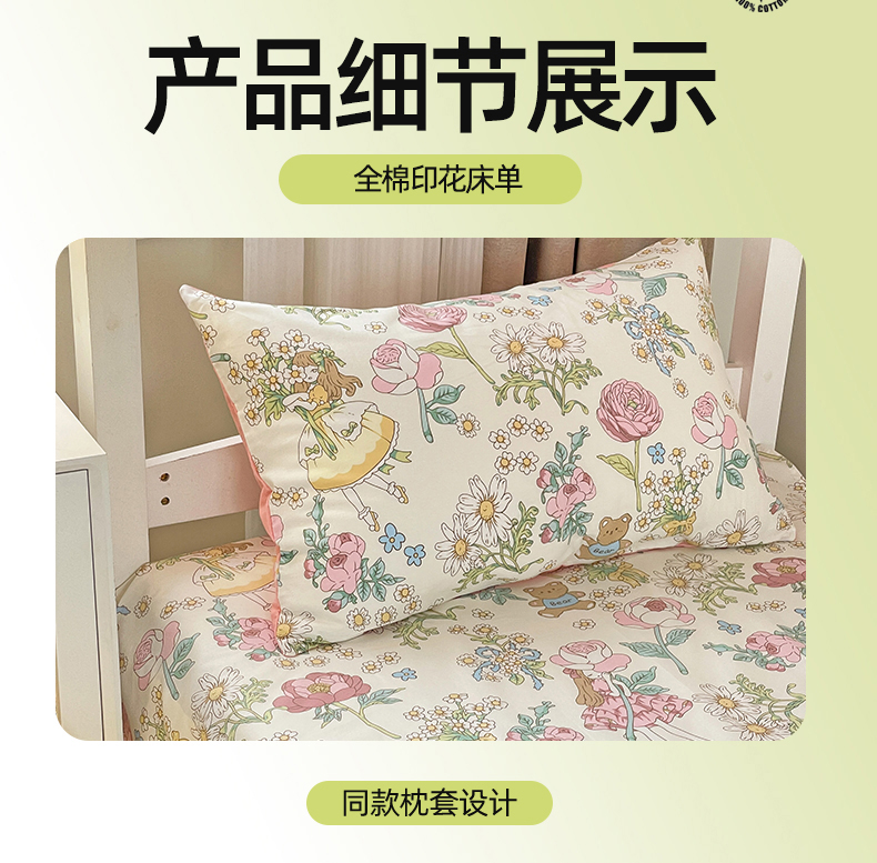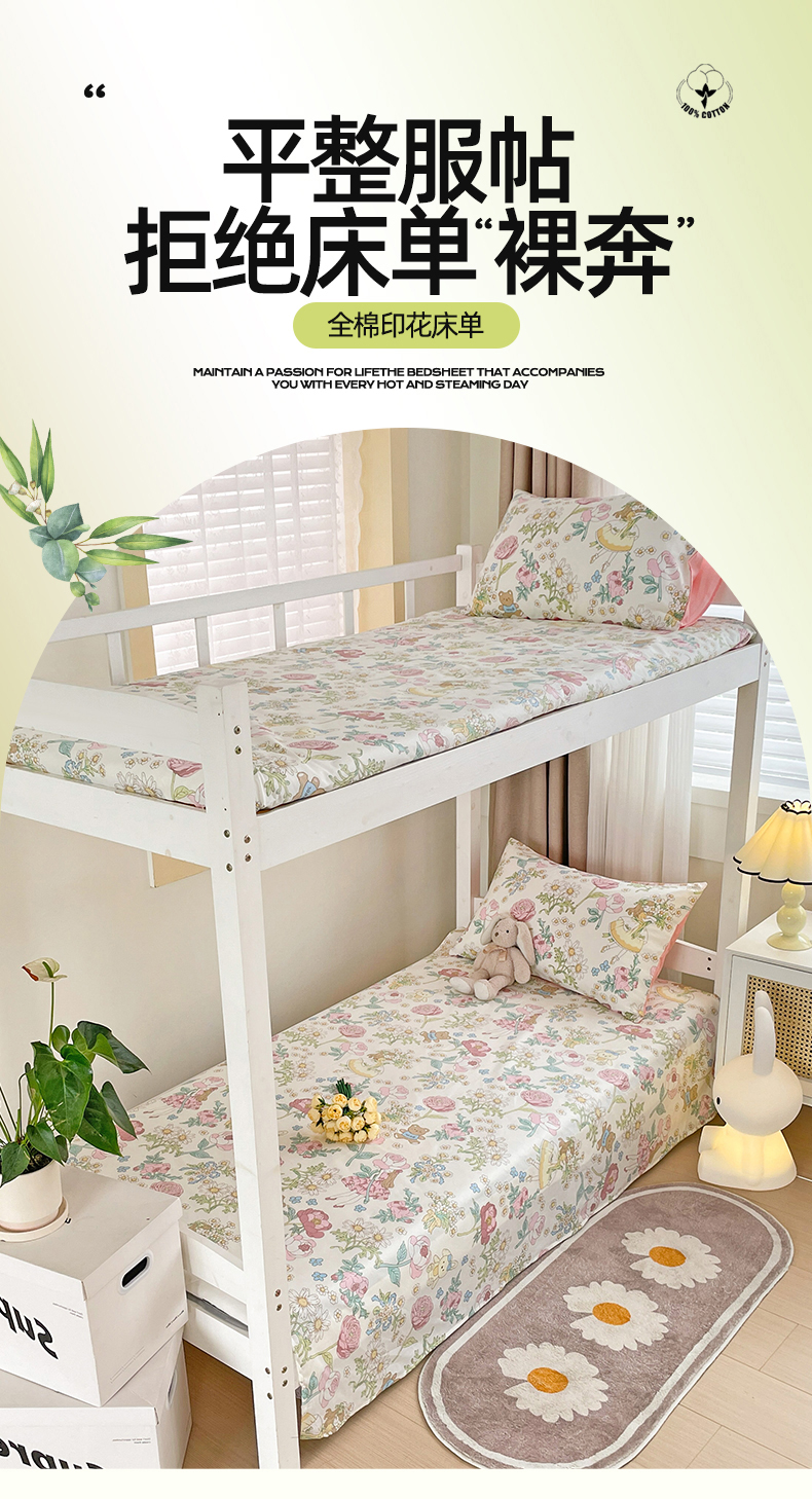 • 91家纺网 家纺一手货源 找家纺 名兮家居 2024新款学生床上下铺全棉床单  玛丽春天