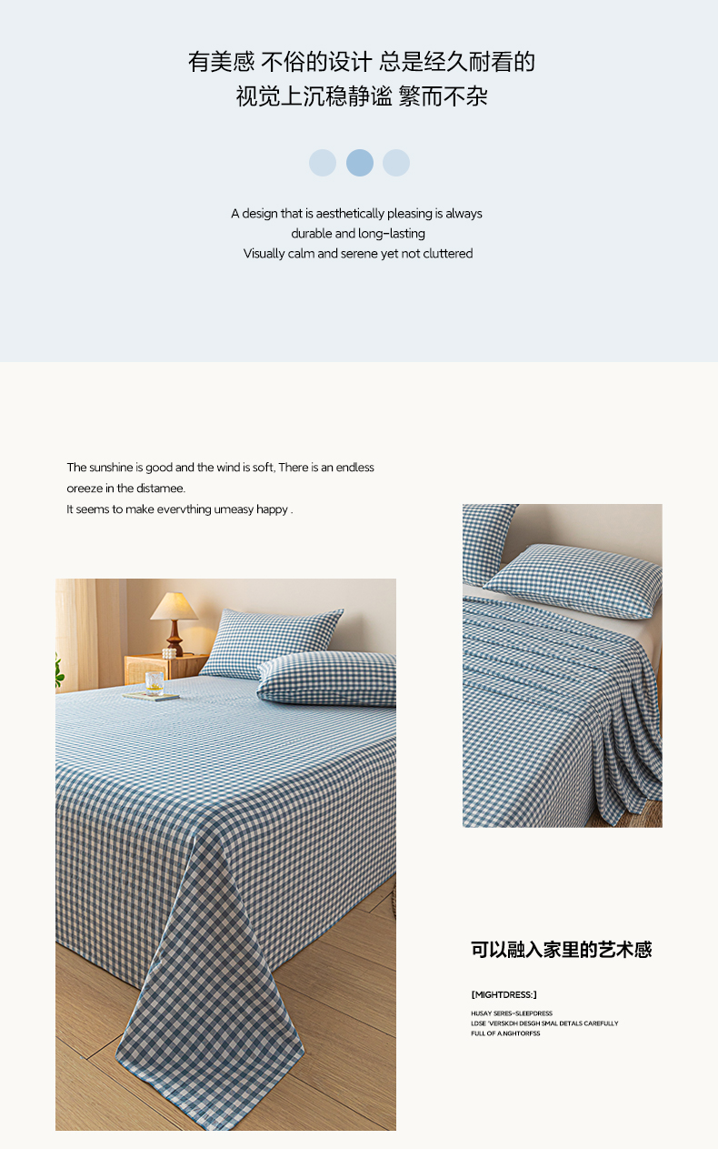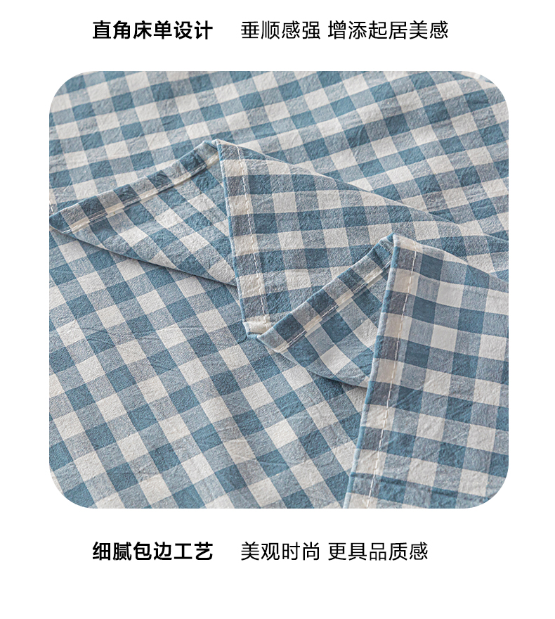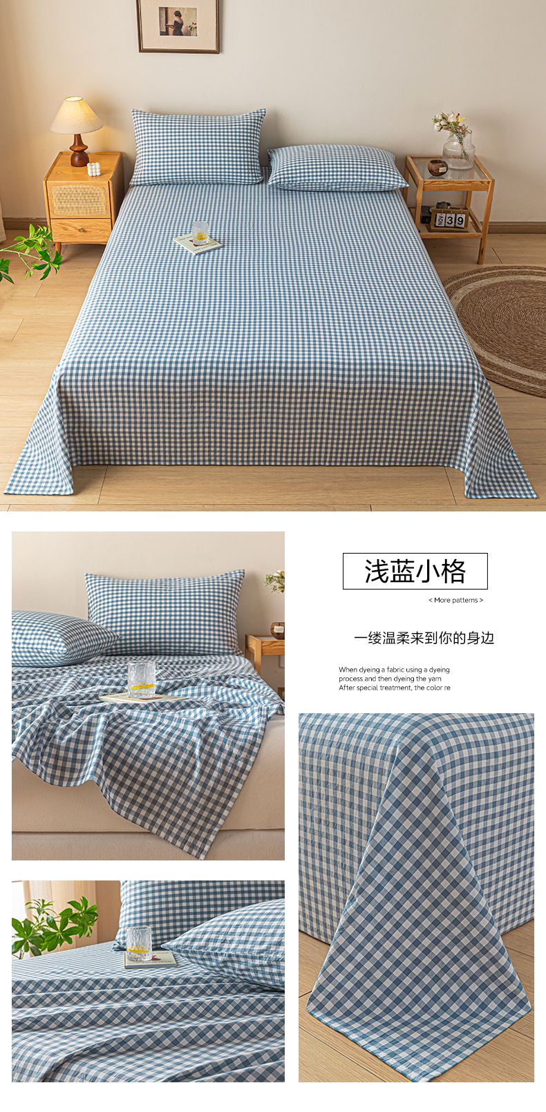 卡伦家纺 2025新款全棉色织水洗棉床单学生宿舍单人双人床单系列浅蓝小格