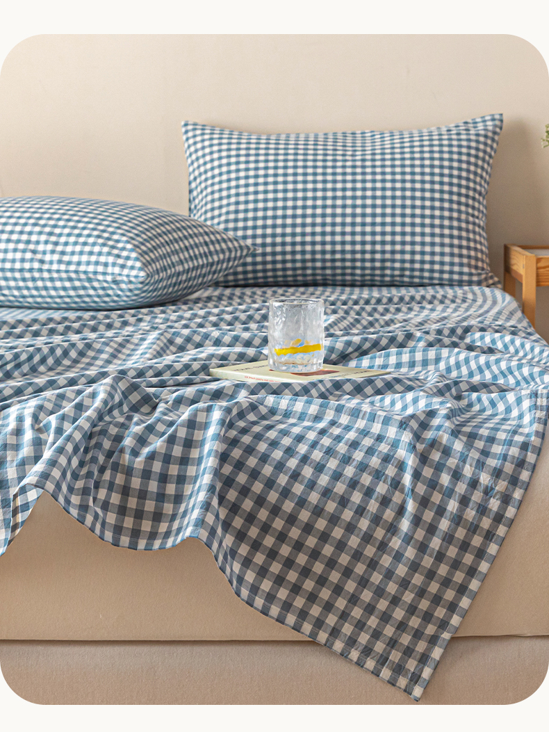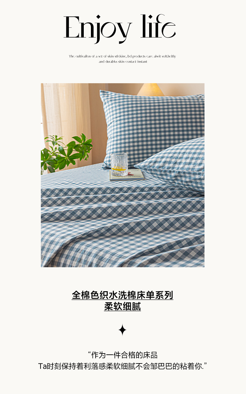 (总)卡伦家纺 2025新款全棉色织水洗棉单层宿舍学生床笠,错格咖,咖青年,蓝大格,蓝灰中格,牛仔蓝,浅蓝小格,绅士灰,英伦粉