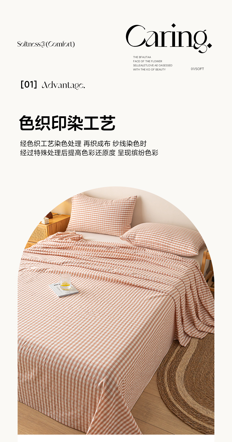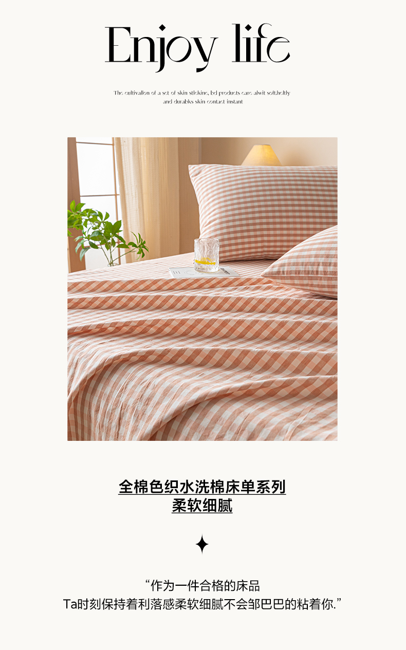 商品名称:2025新款全棉色织水洗棉床单学生宿舍单人双人床单系列 粉小格
