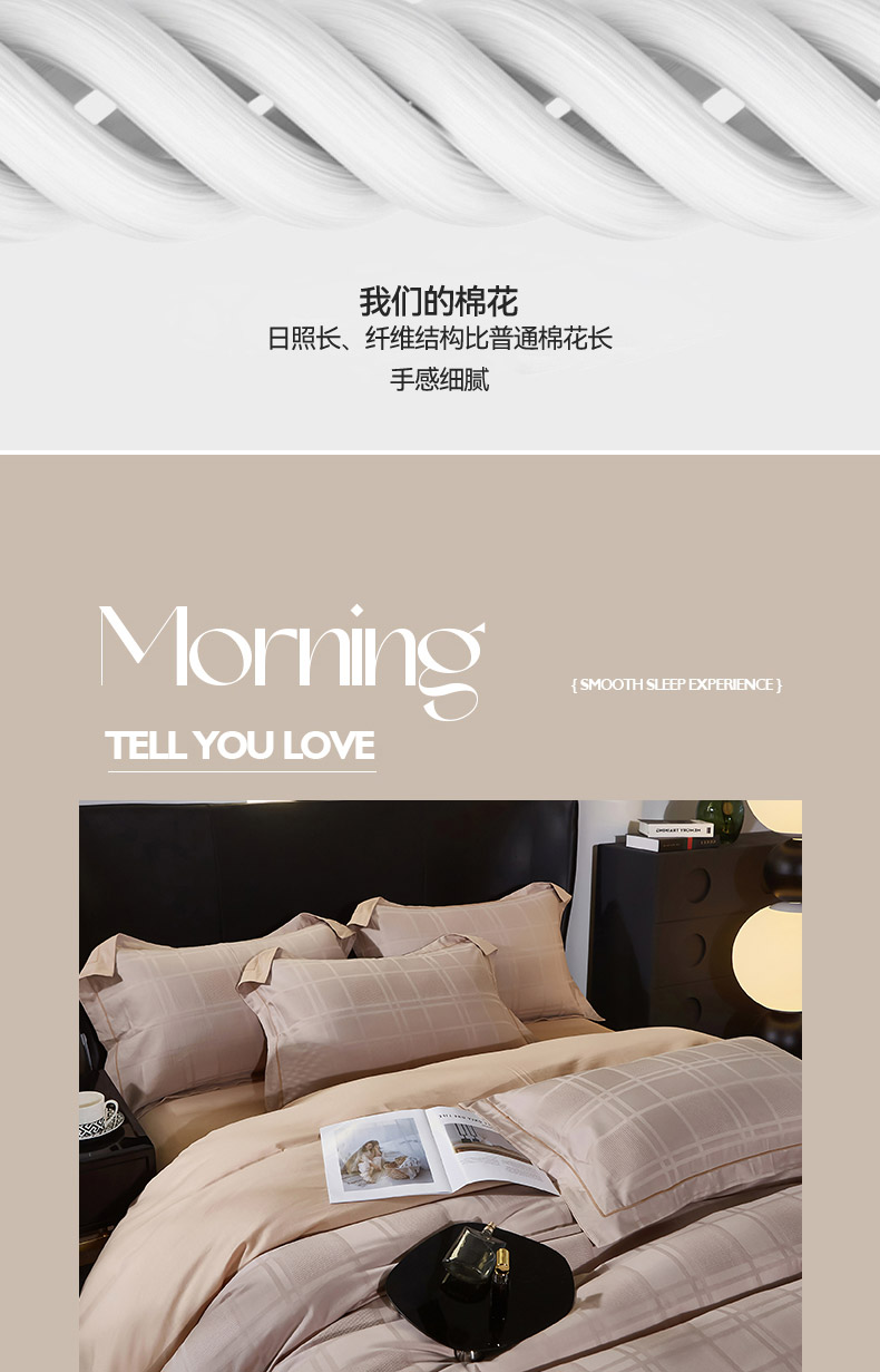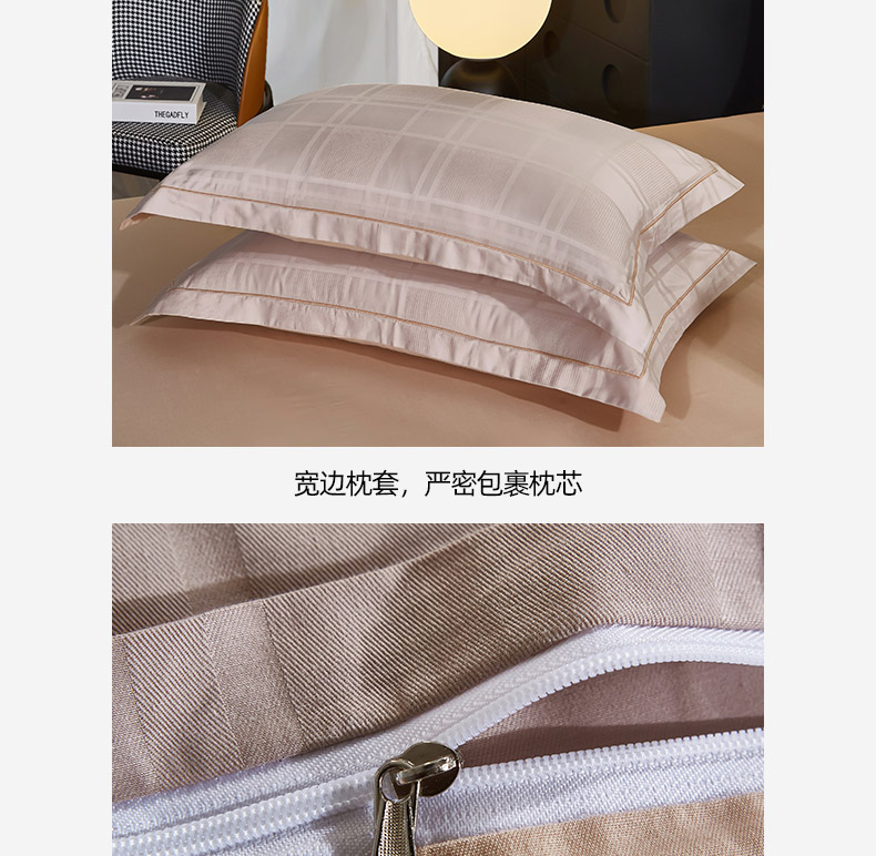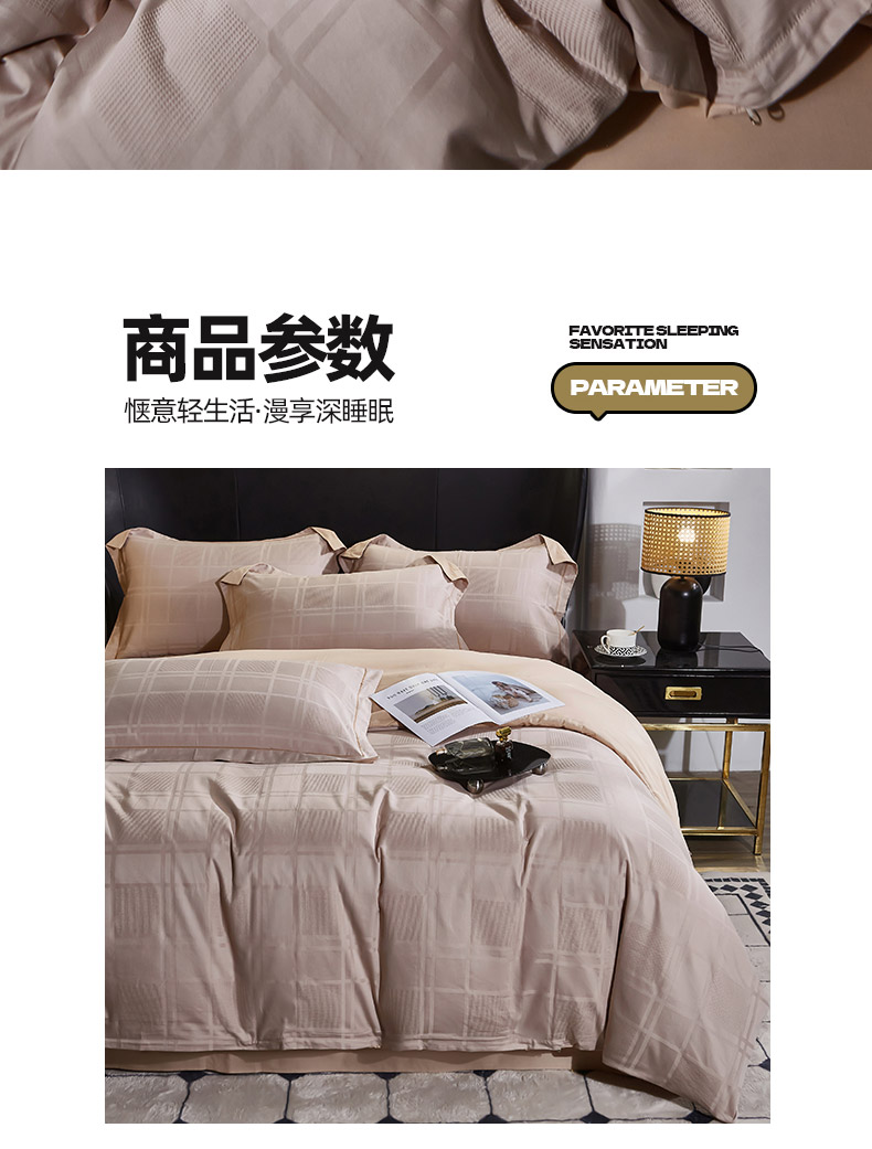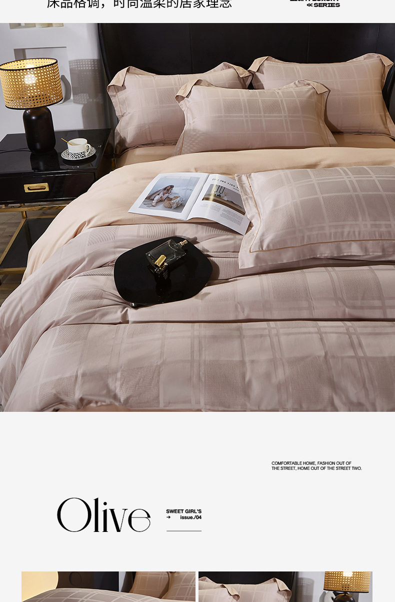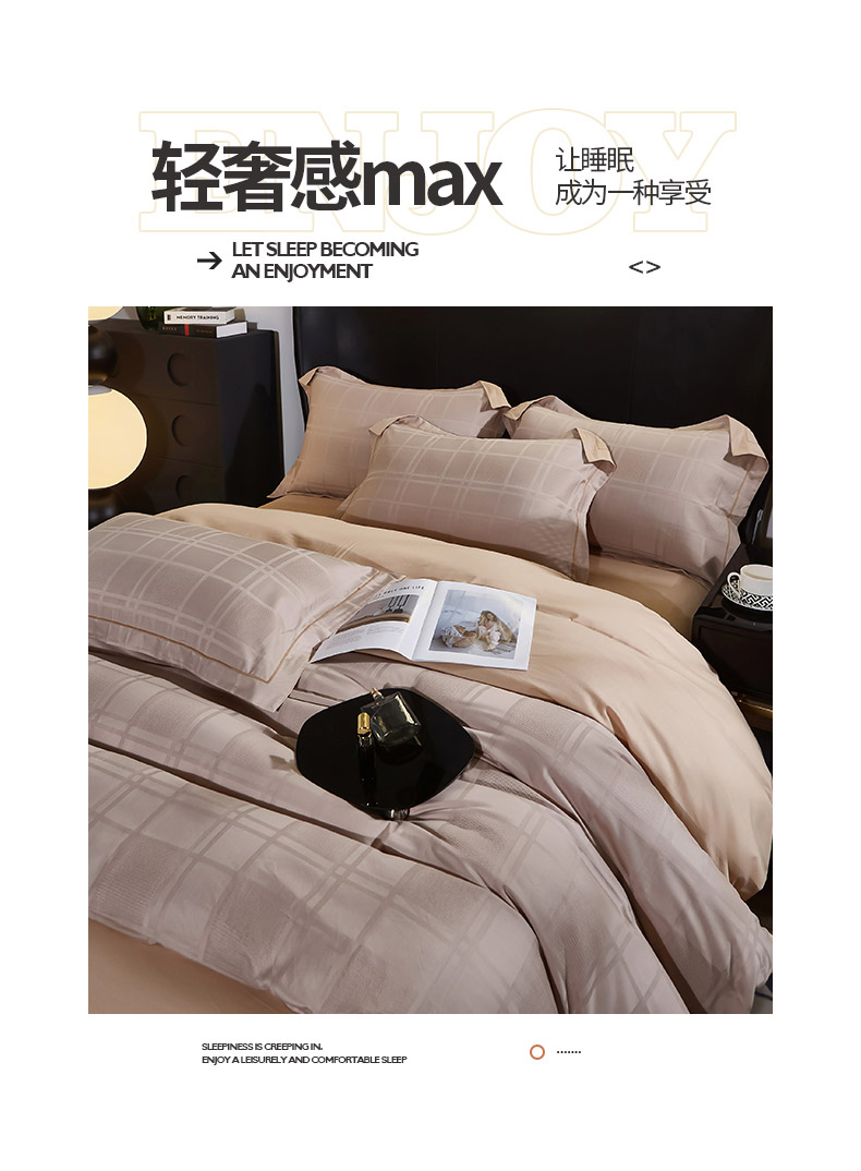 商品名称:雲归梦 2024新款全棉提花活性高支密轻奢四件套 大方格-浅咖