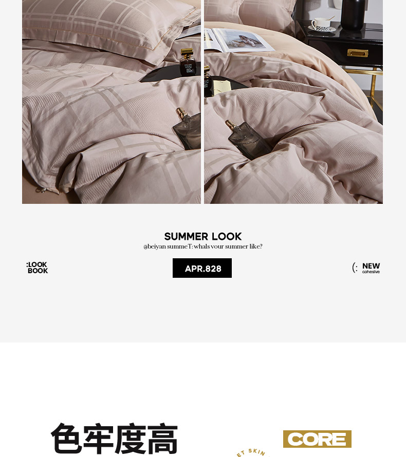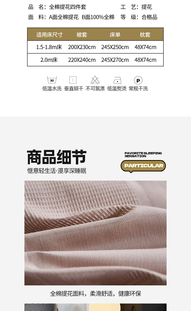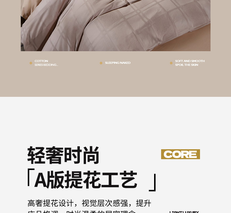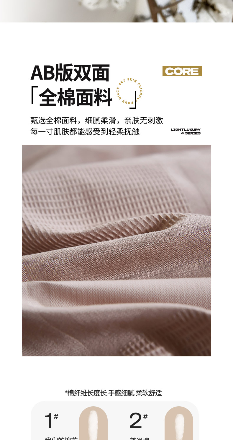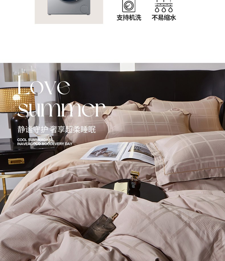 商品名称:雲归梦 2024新款全棉提花活性高支密轻奢四件套 大方格-浅咖