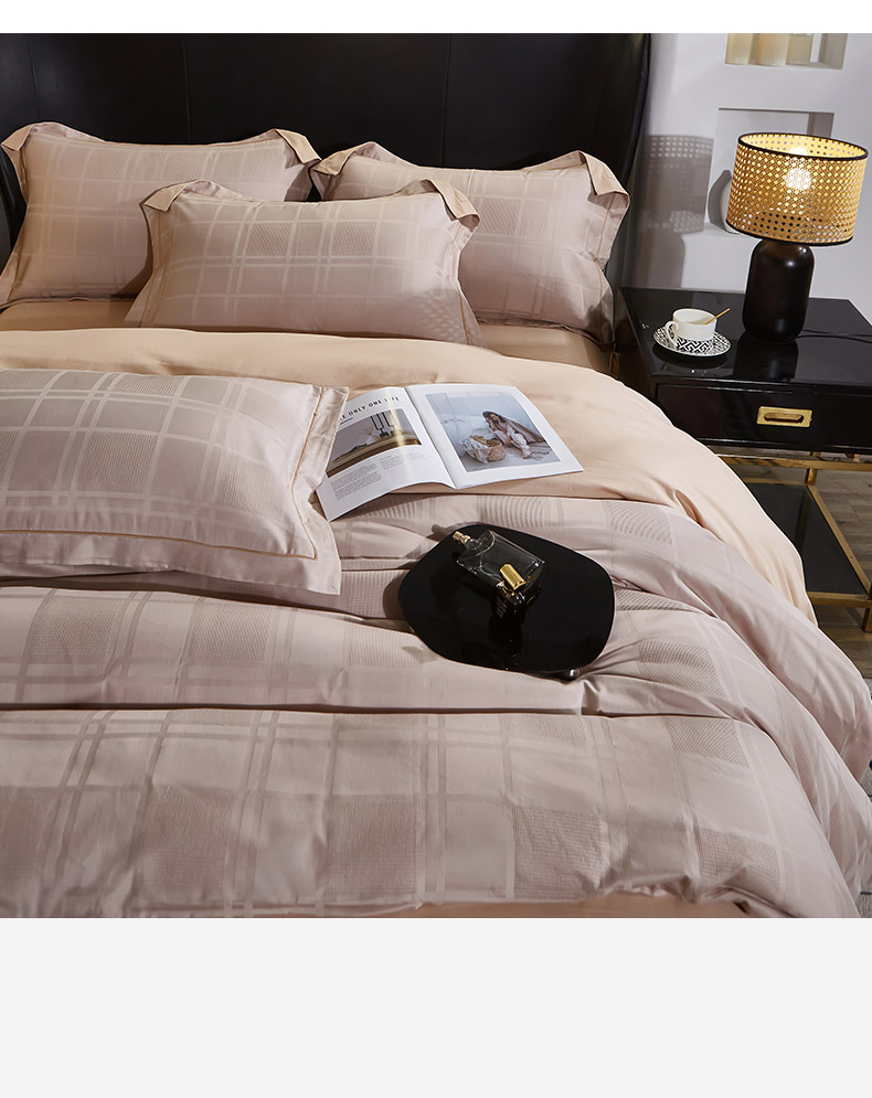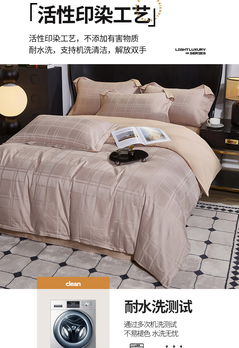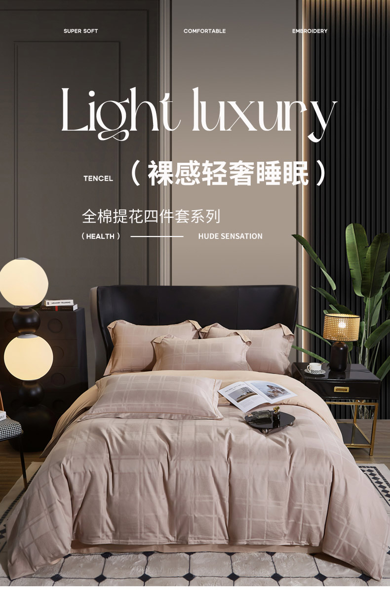 雲归梦 2024新款全棉提花活性高支密轻奢四件套 大方格-浅咖