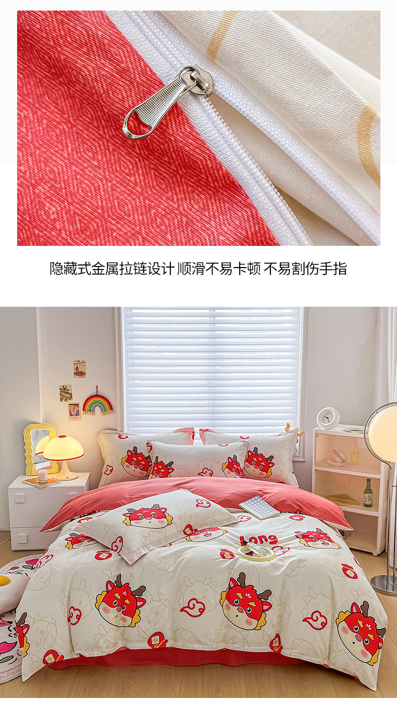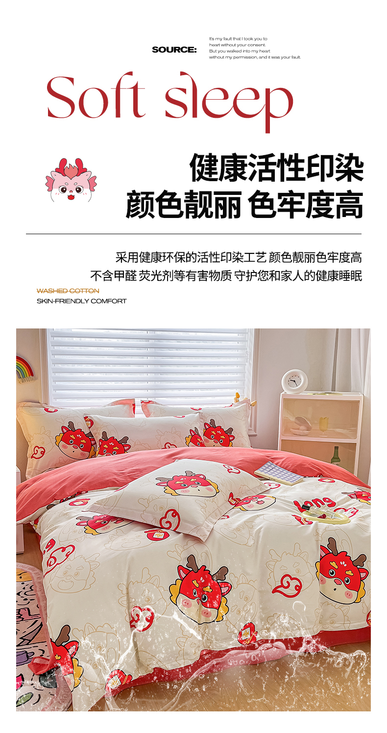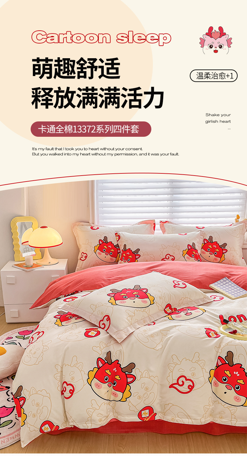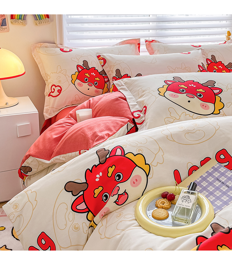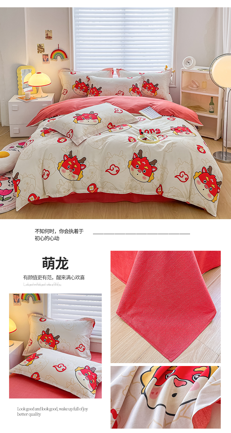 商品名称:慕晨 新款2024开学季13372全棉印花学生三件套小清新卡通花卉ins风四件套直播爆款 萌龙
