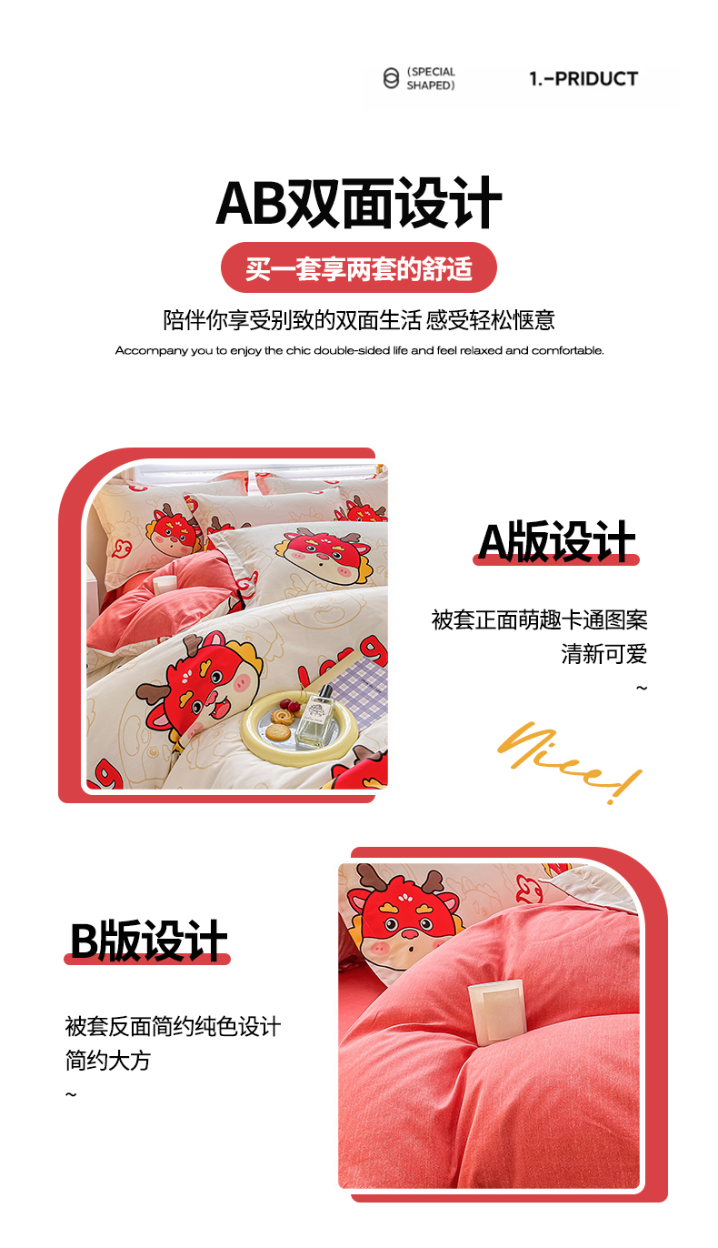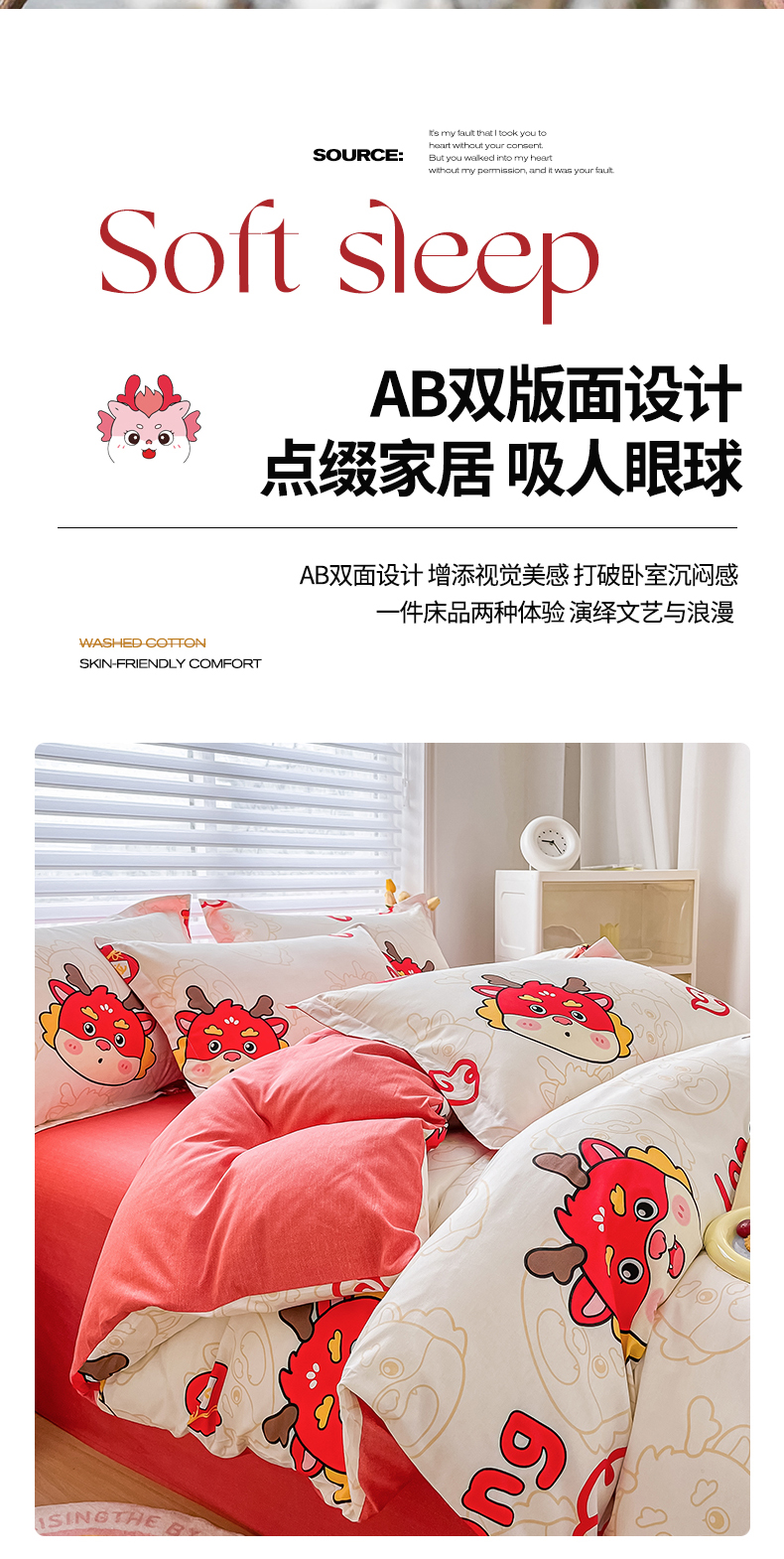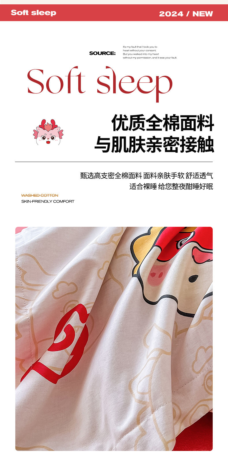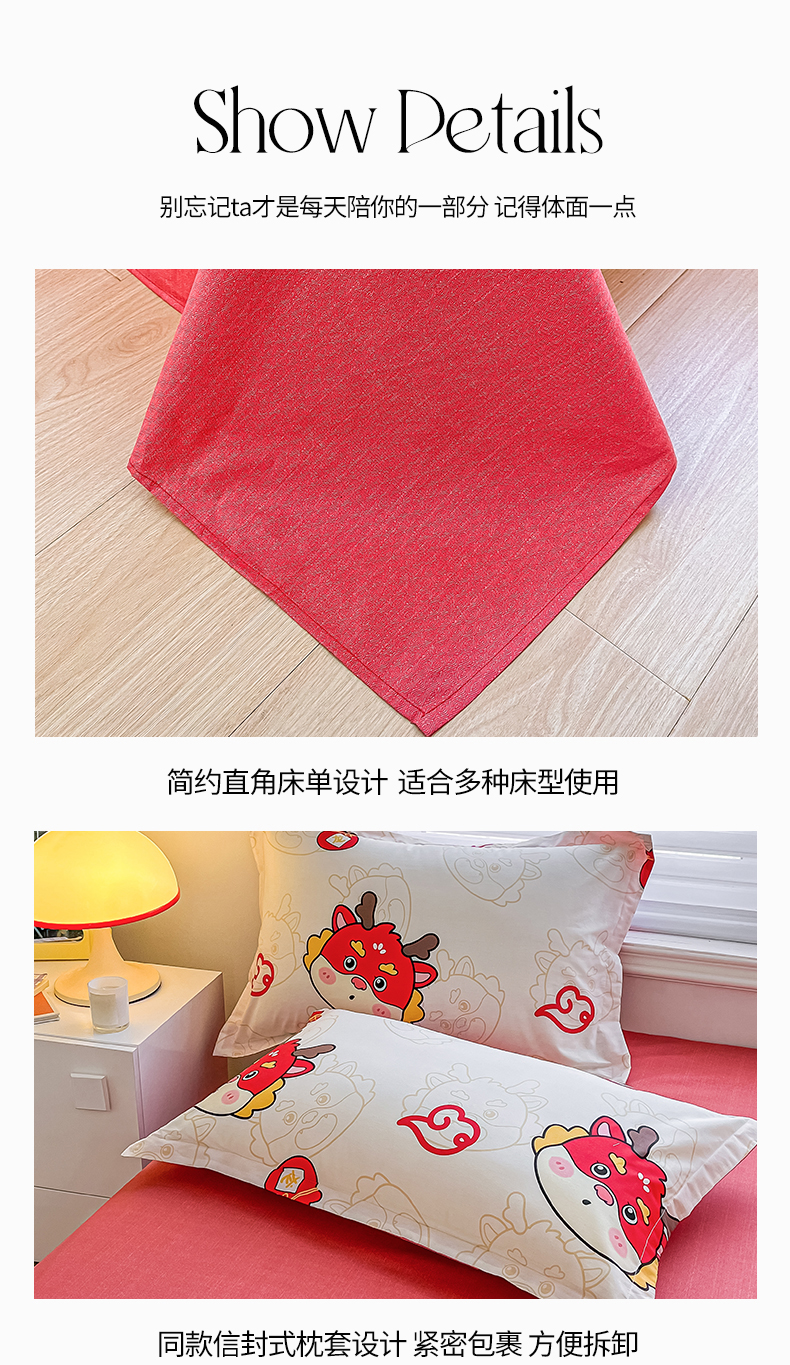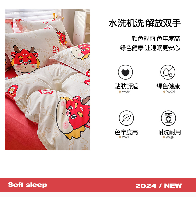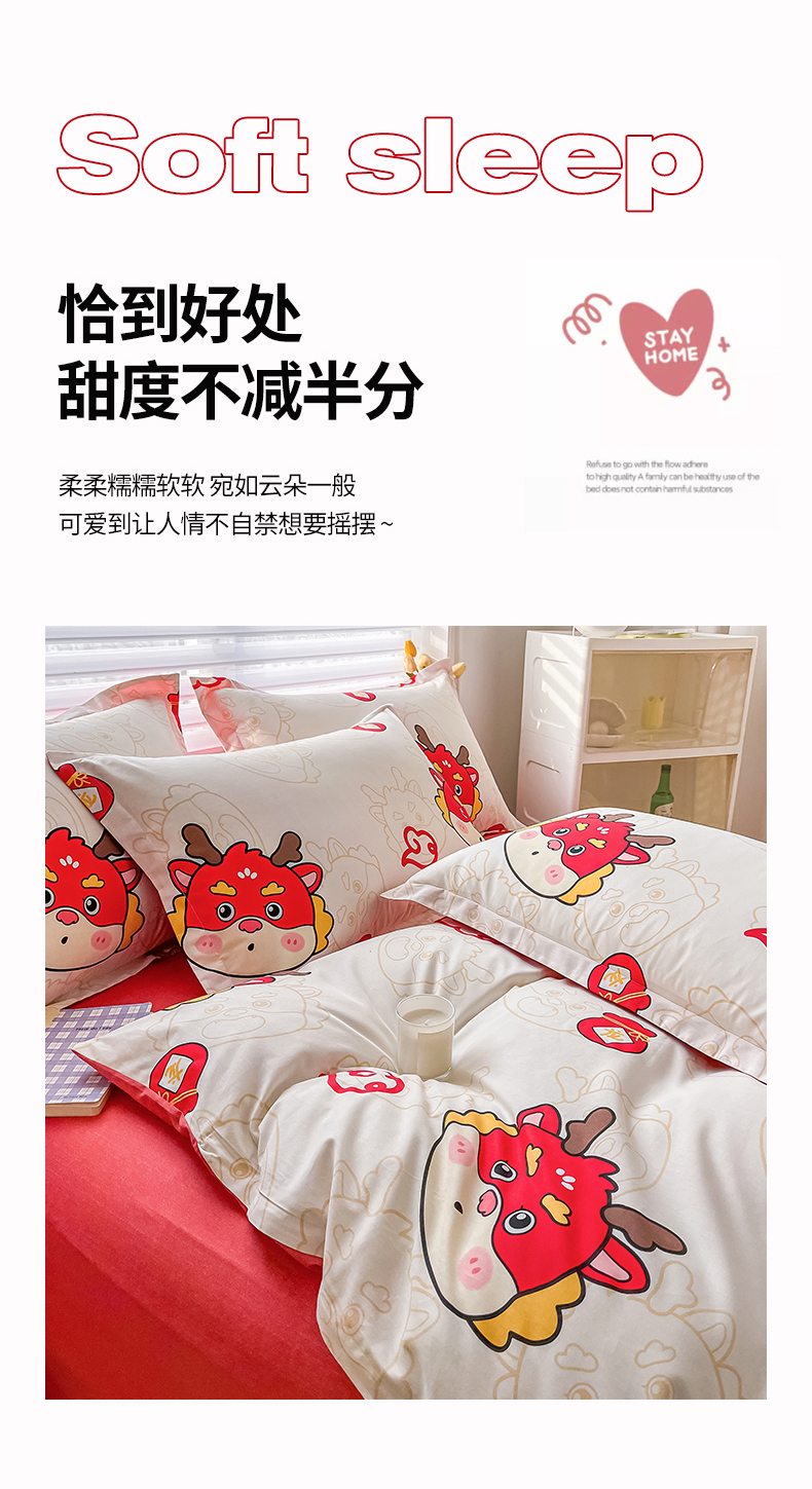 商品名称:慕晨 新款2024开学季13372全棉印花学生三件套小清新卡通花卉ins风四件套直播爆款 萌龙
