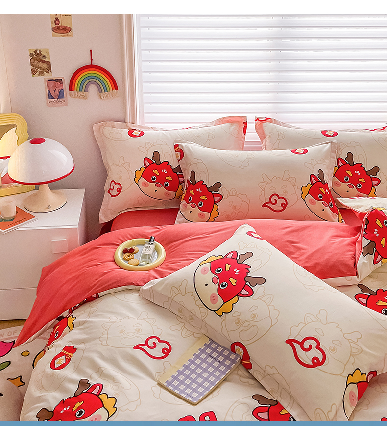 慕晨 新款2024开学季13372全棉印花学生三件套小清新卡通花卉ins风四件套直播爆款 萌龙