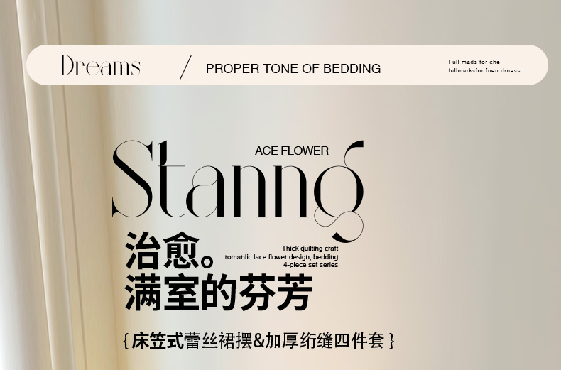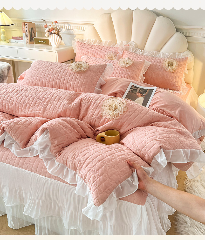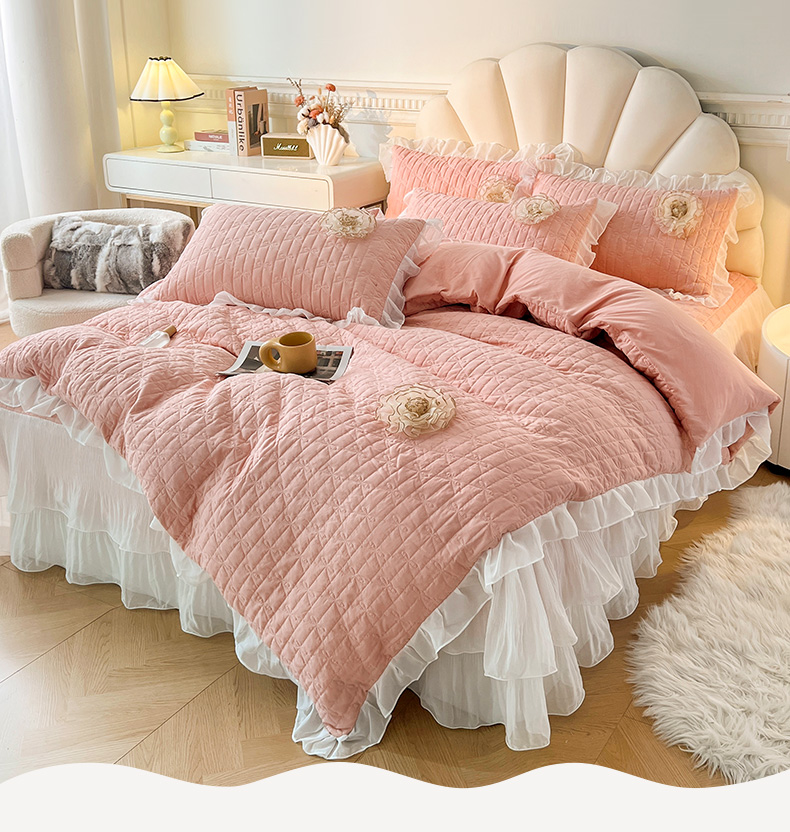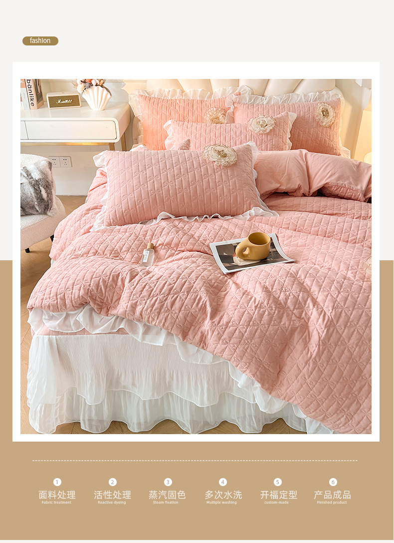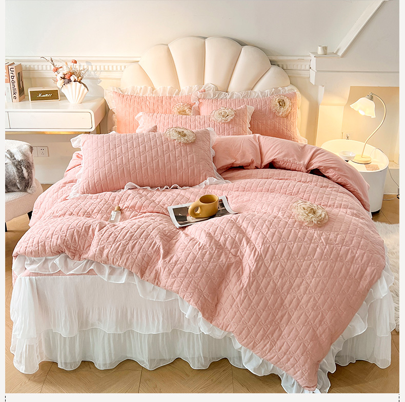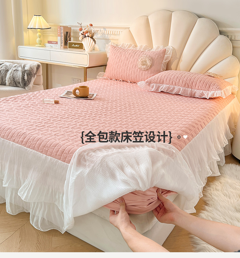 当前位置: 91家纺网 > 商品网购 > 床品套件 > 四件套 > 化纤活性四件套 > 恋尚 2025新款蜜桃棉绗缝加厚立体蕾丝花床笠式床裙四件套-奶芙系列 奶芙 玉色
