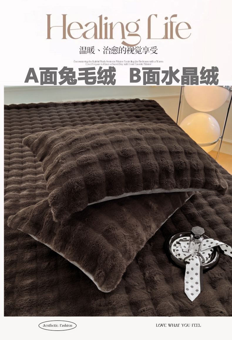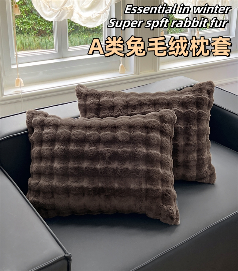 商品名称:梦舒羽 2025新款兔毛绒单人枕套牛奶绒枕芯套雪花绒宿舍枕头套 咖啡色