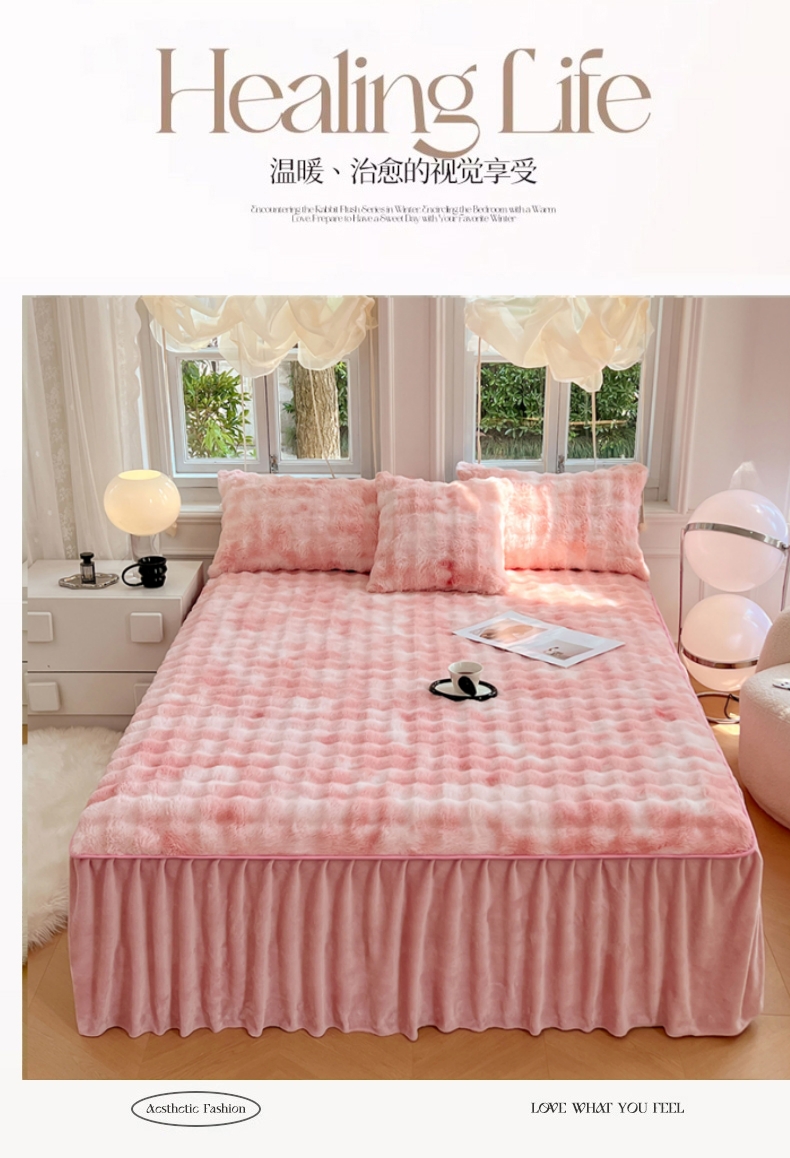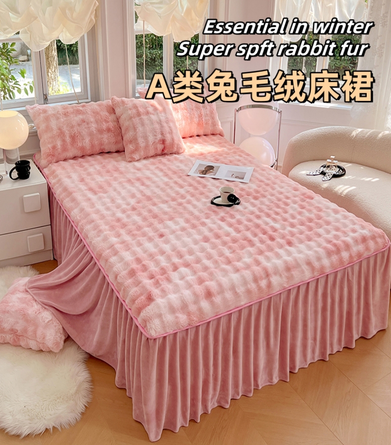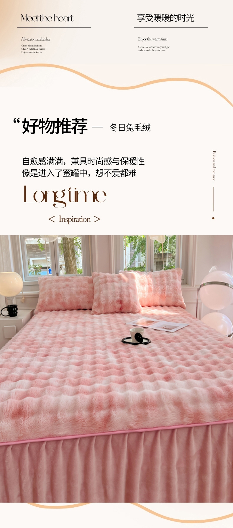商品名称:梦舒羽 2025新款兔毛绒床裙水晶绒床垫保护罩牛奶绒床垫床单罩 梦幻樱粉