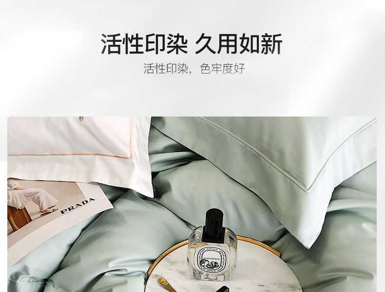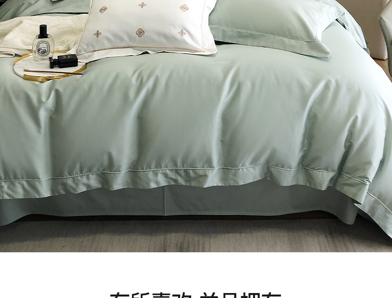 商品名称:卡姿家纺 2024新款全棉简爱系列埋线工艺四件套 简爱-蒂芙绿