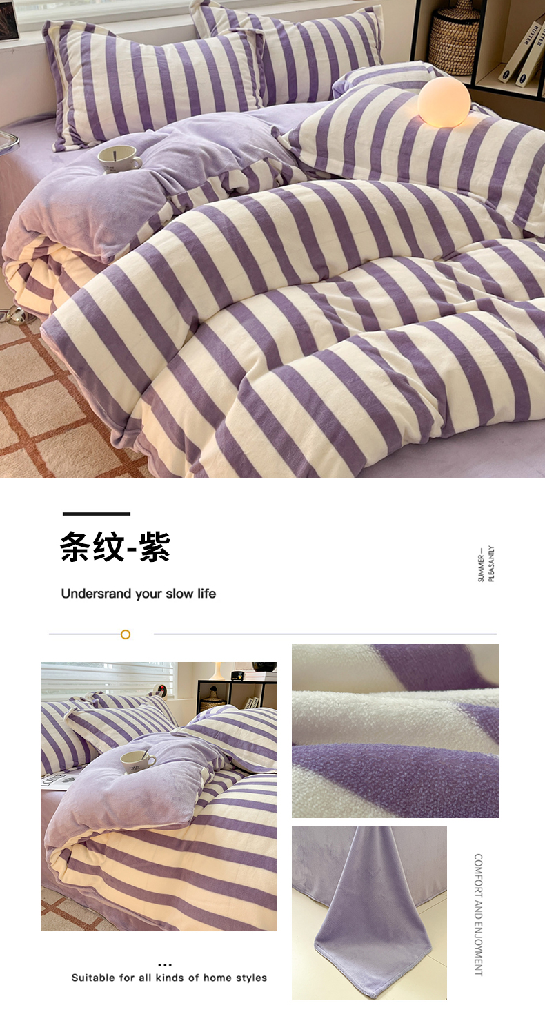 商品名称:启程家纺 2024新款无印风A类牛奶绒四件套 条纹-紫