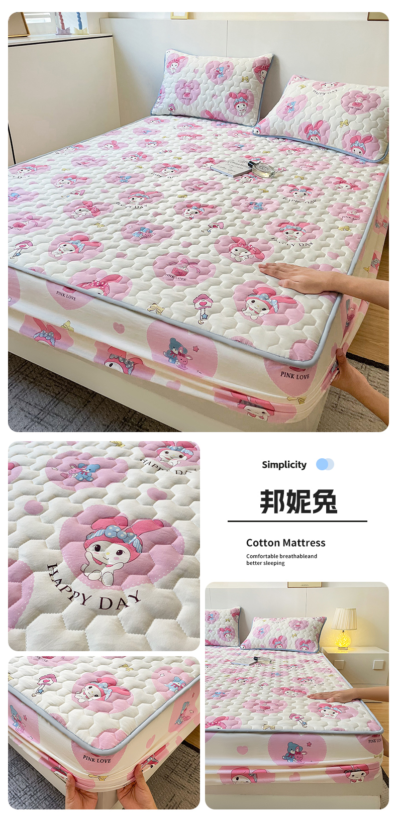 商品名称:予梦家纺 2024新款水洗棉印花夹棉床笠 邦妮兔