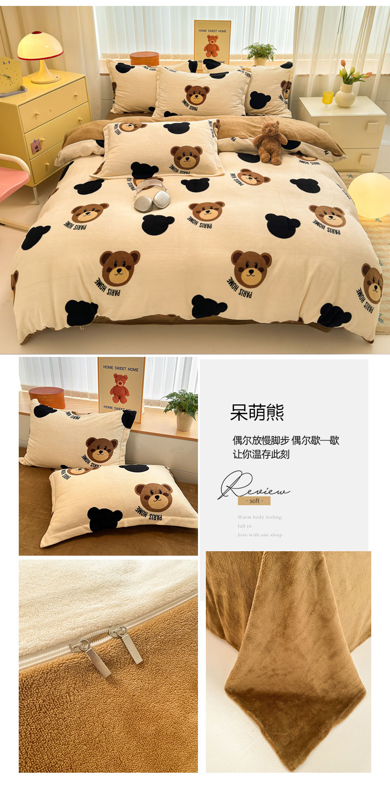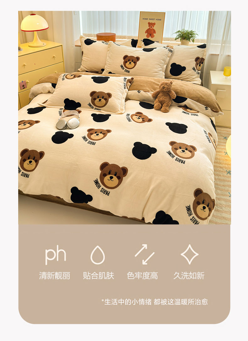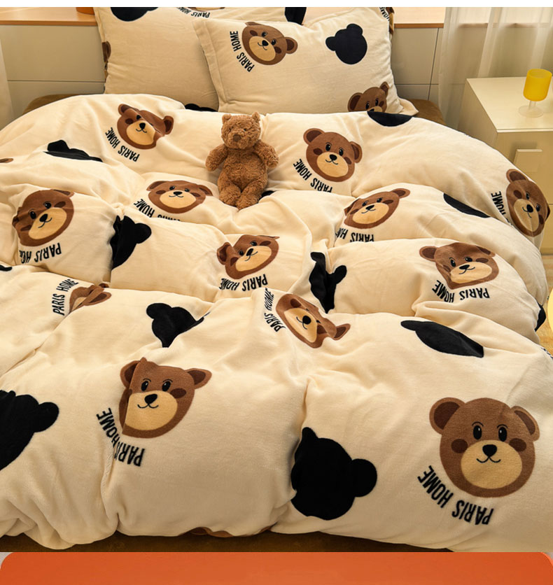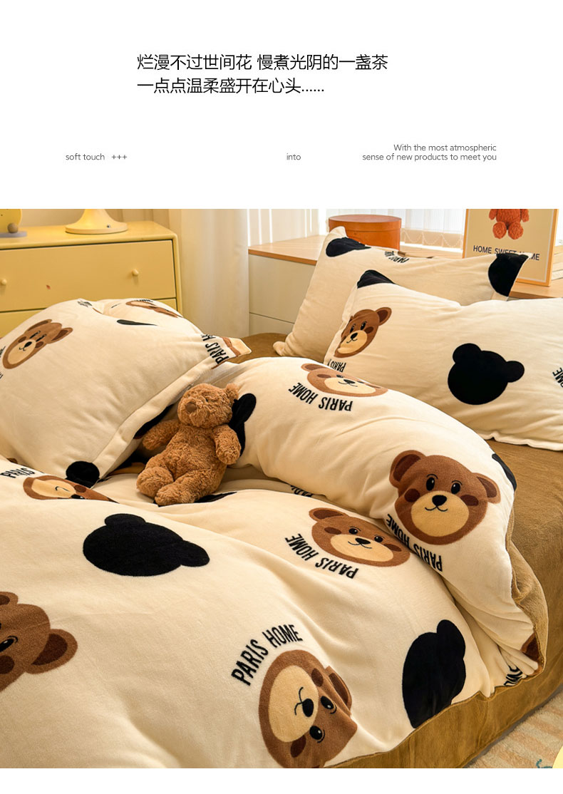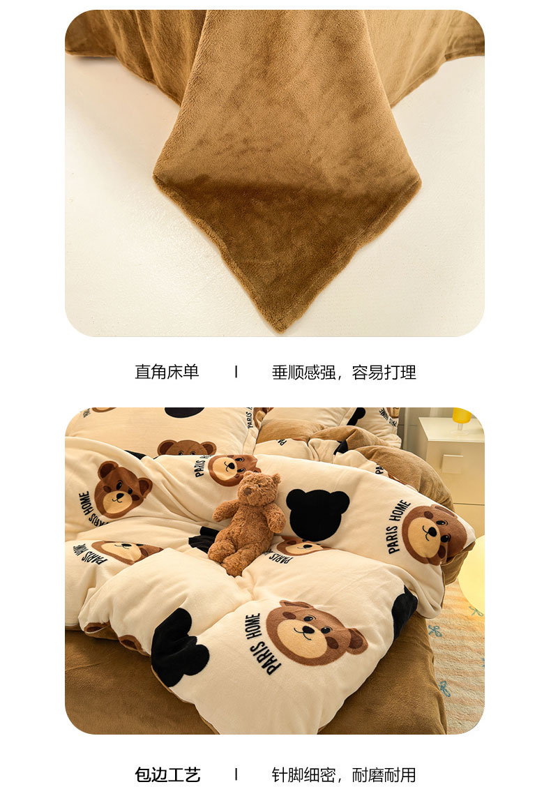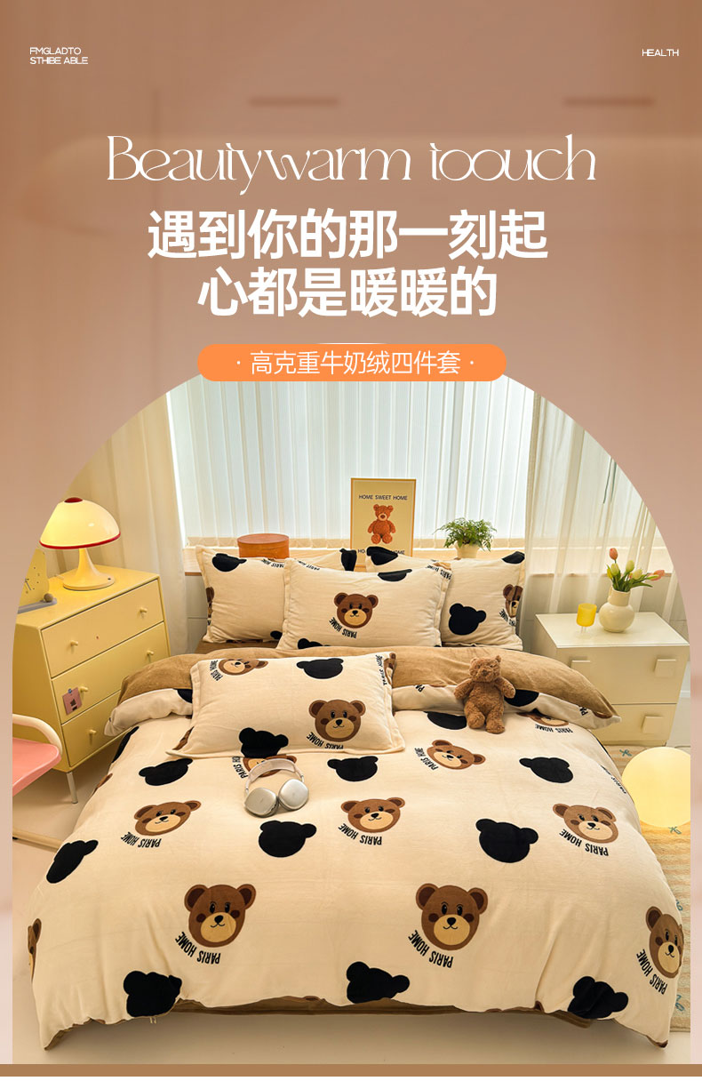 商品名称:德比尔斯 2025新款7斤重印花牛奶绒四件套爆款 呆萌熊
