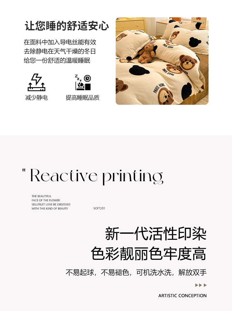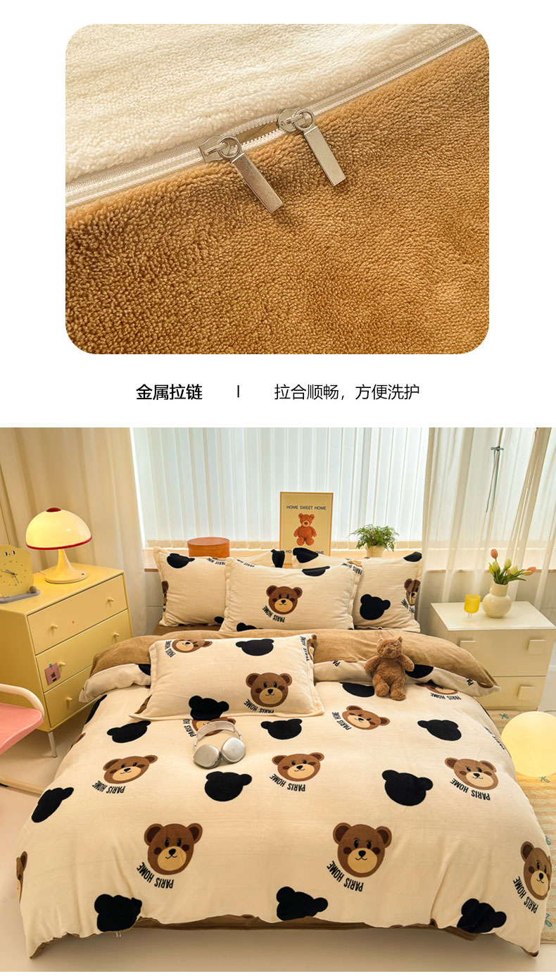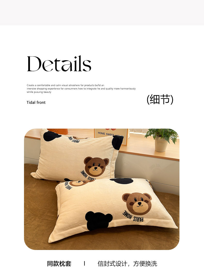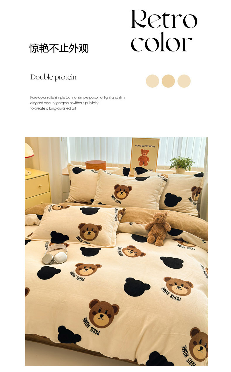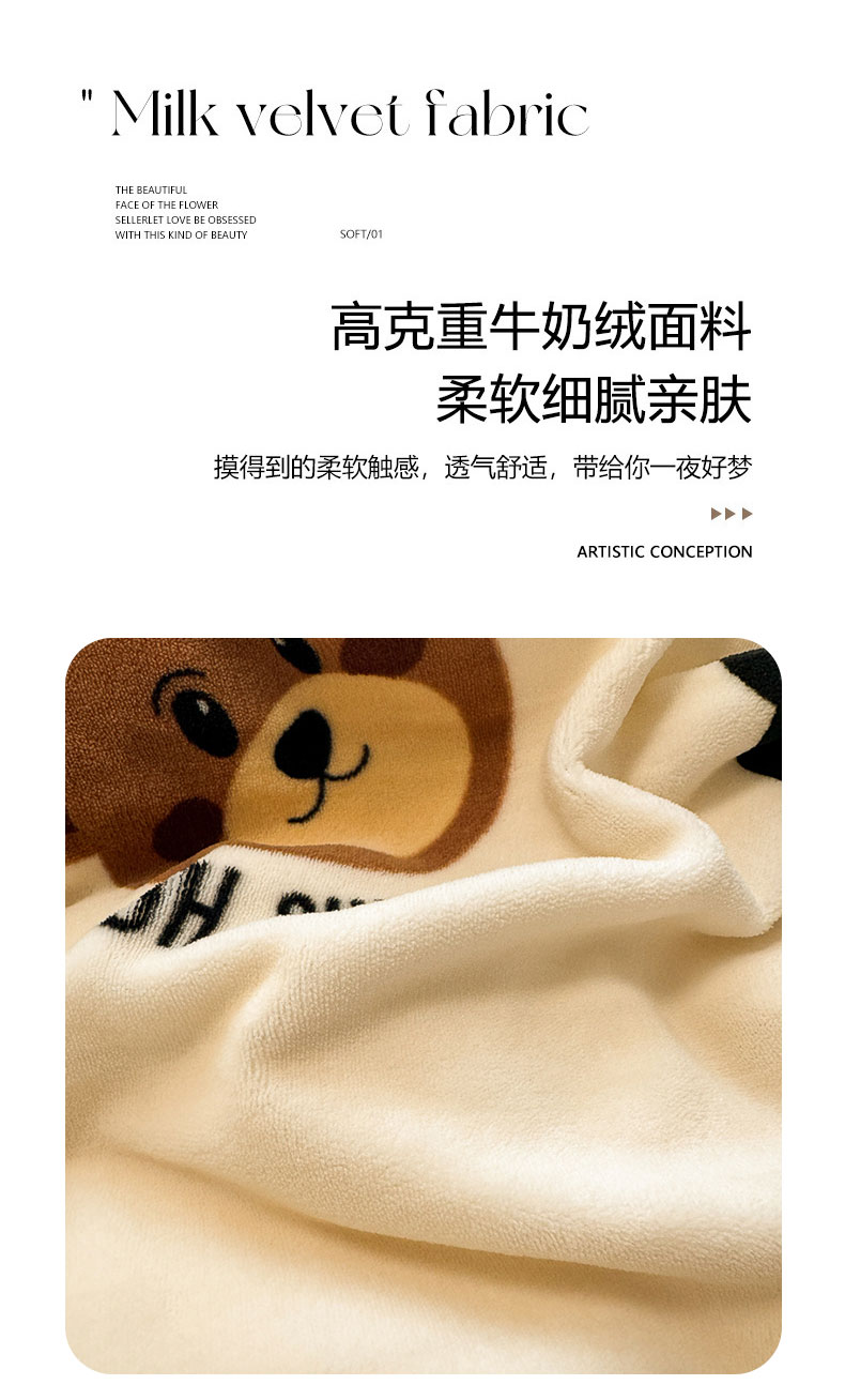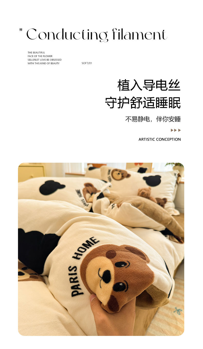 商品名称:德比尔斯 2025新款7斤重印花牛奶绒四件套爆款 呆萌熊