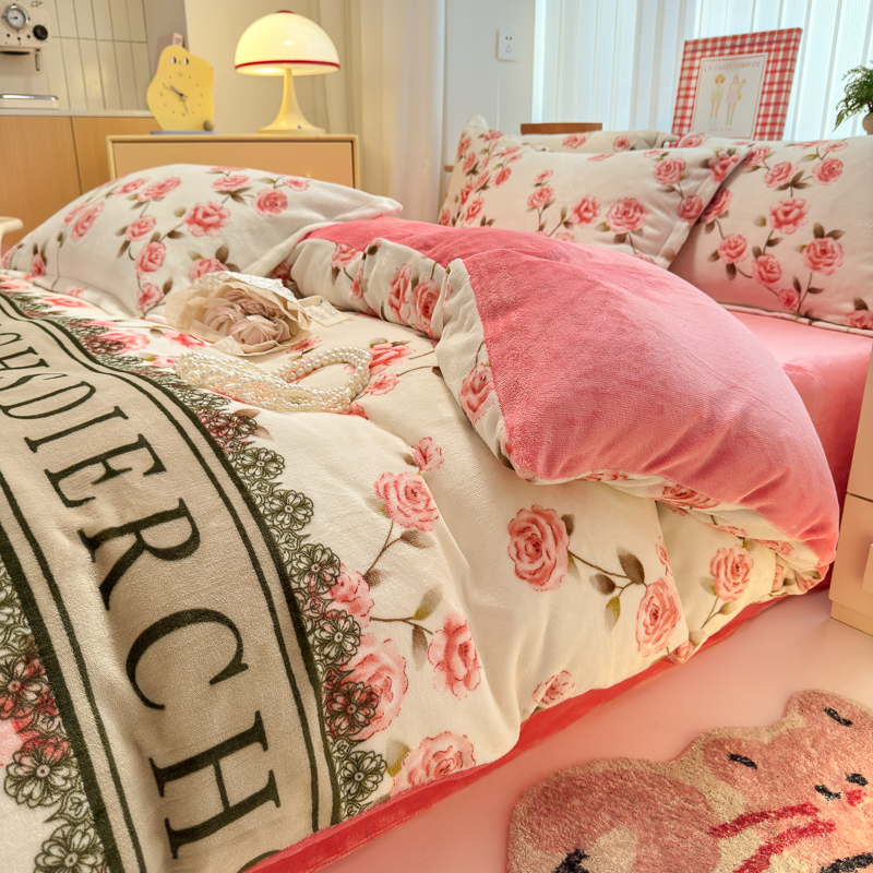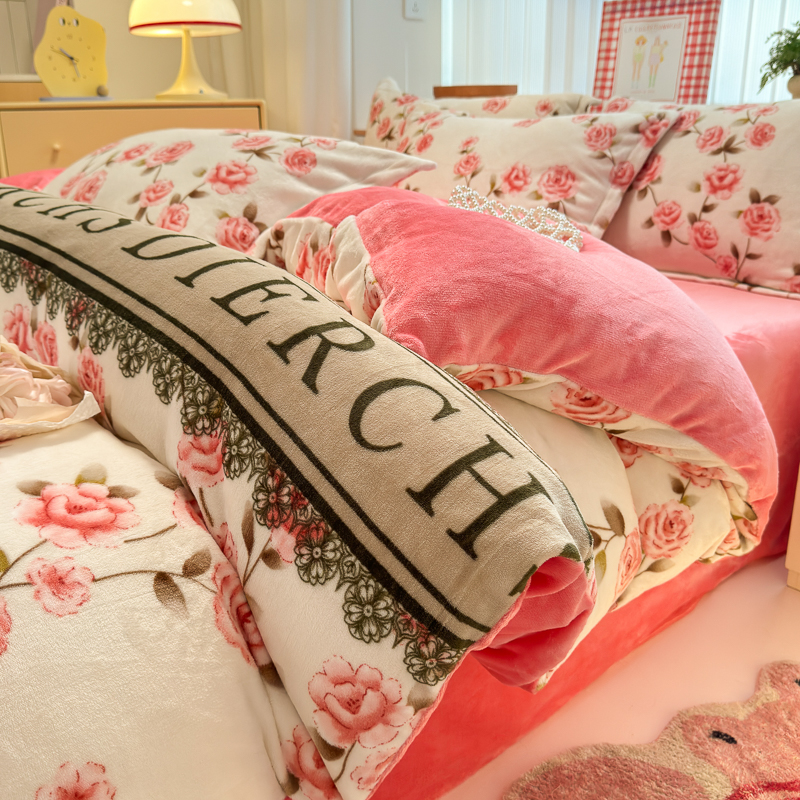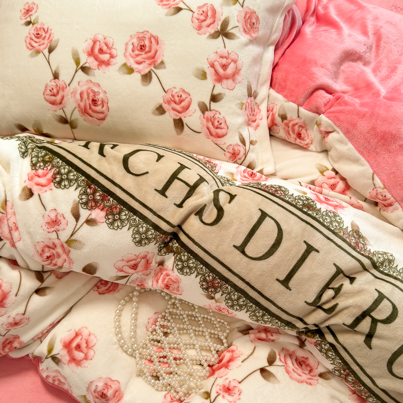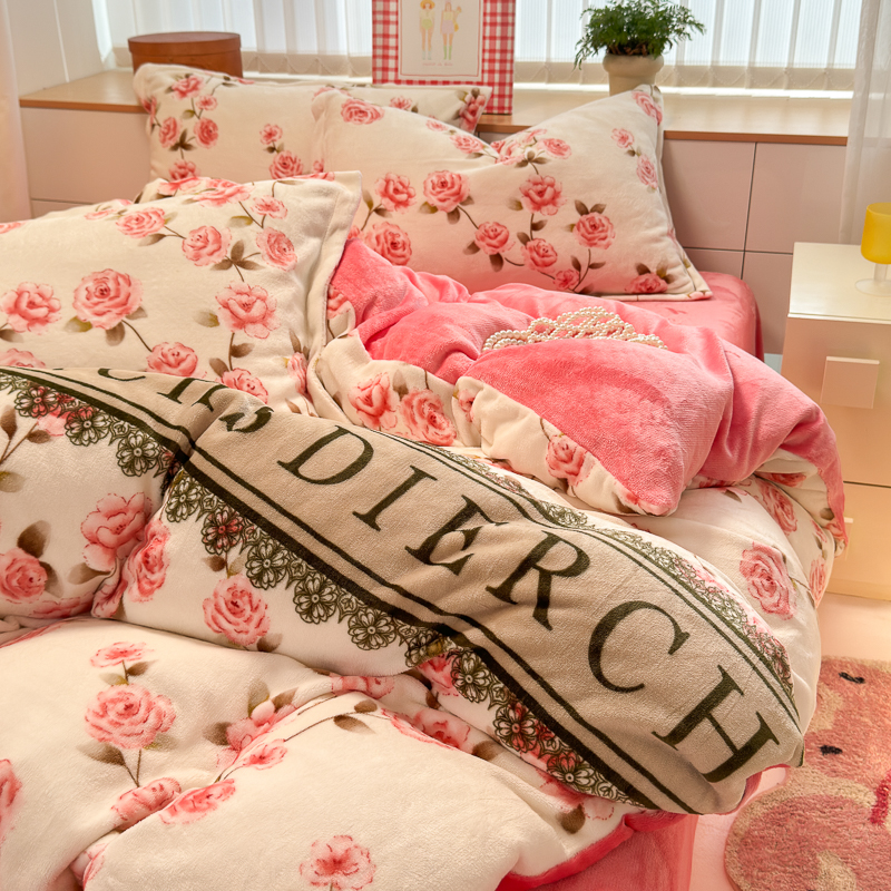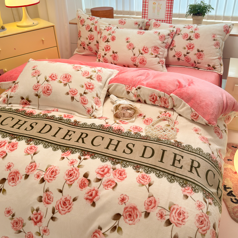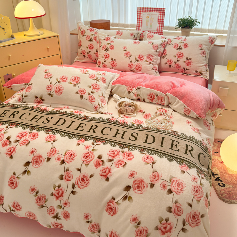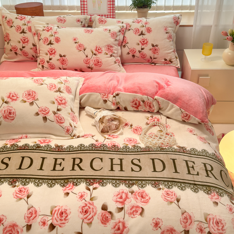 (总)德比尔斯 2025新款韩版白边黑边赫本风牛奶绒床盖四件套,爱心小熊,安妮粉,蝶恋花粉,法风小香,赫本-蝴蝶结粉,赫本-蝴蝶结咖,盛夏丛林,晕染花曳