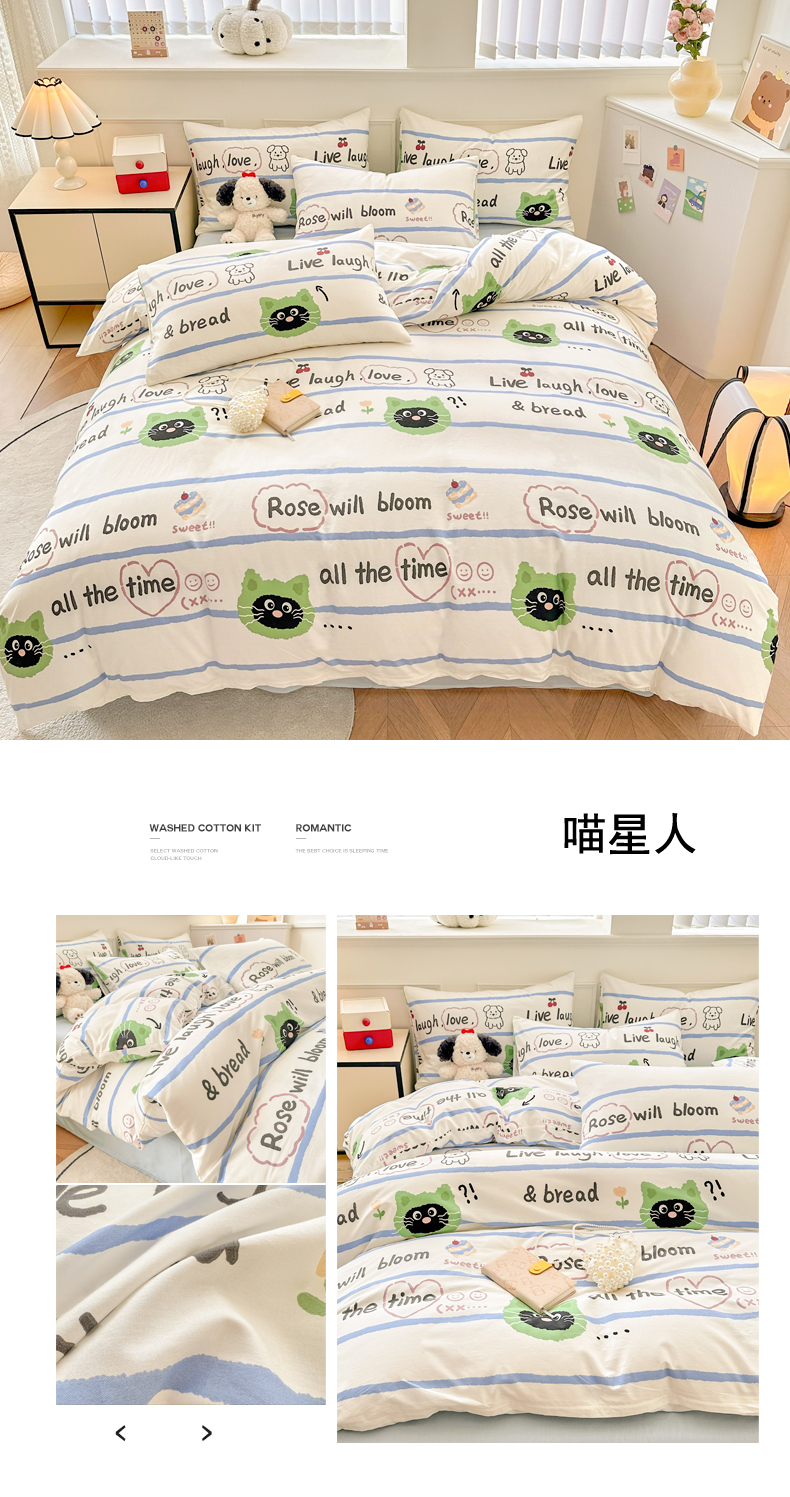 当前位置: 91家纺网 > 商品网购 > 床品套件 > 四件套 > 全棉普通四件套 > 柠馨 2024新款全棉印花四件套 喵星人