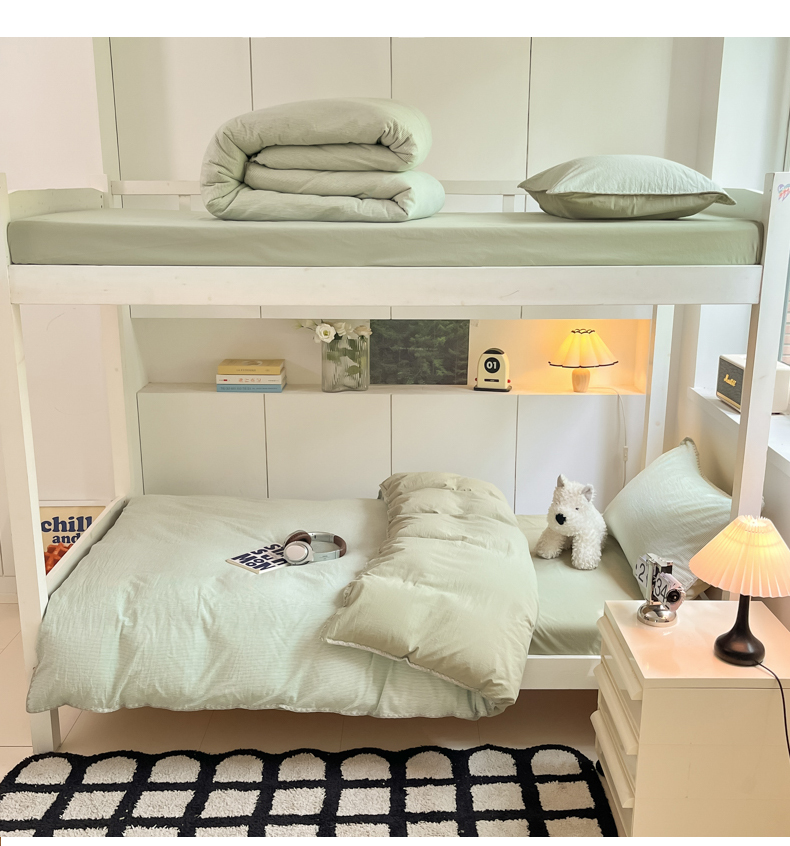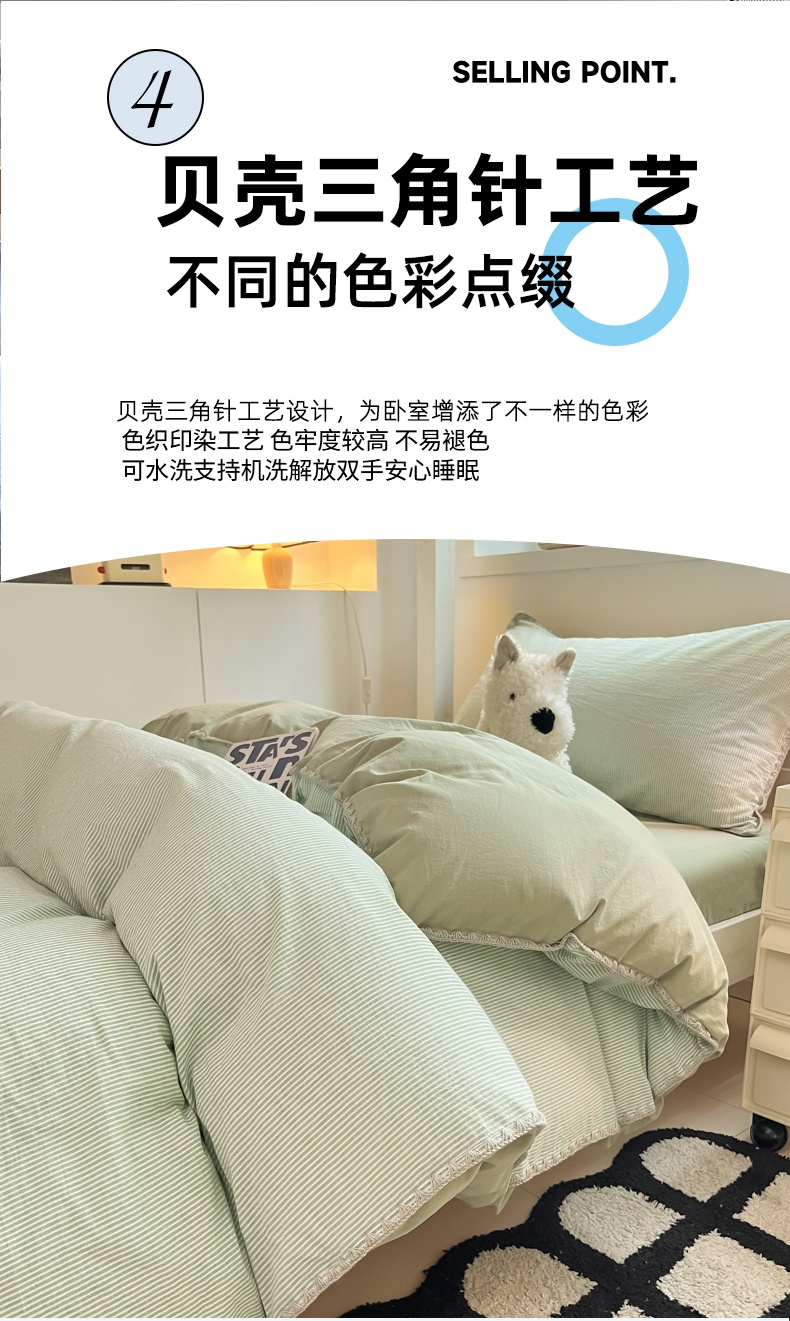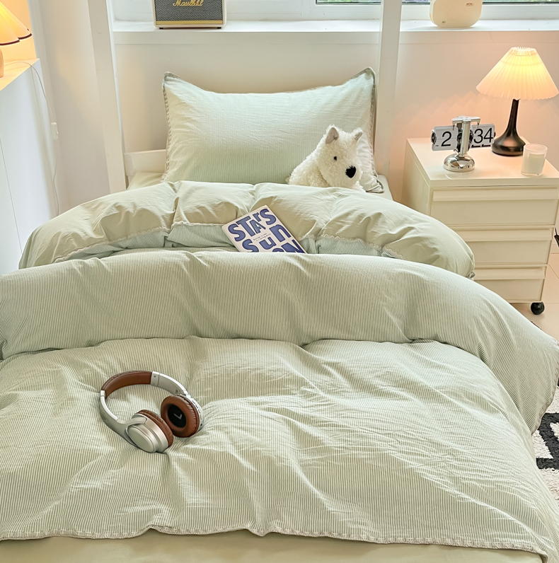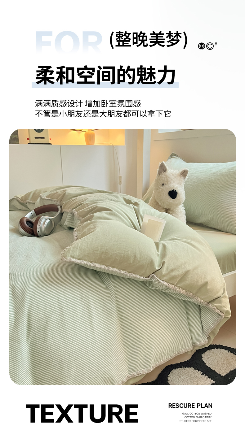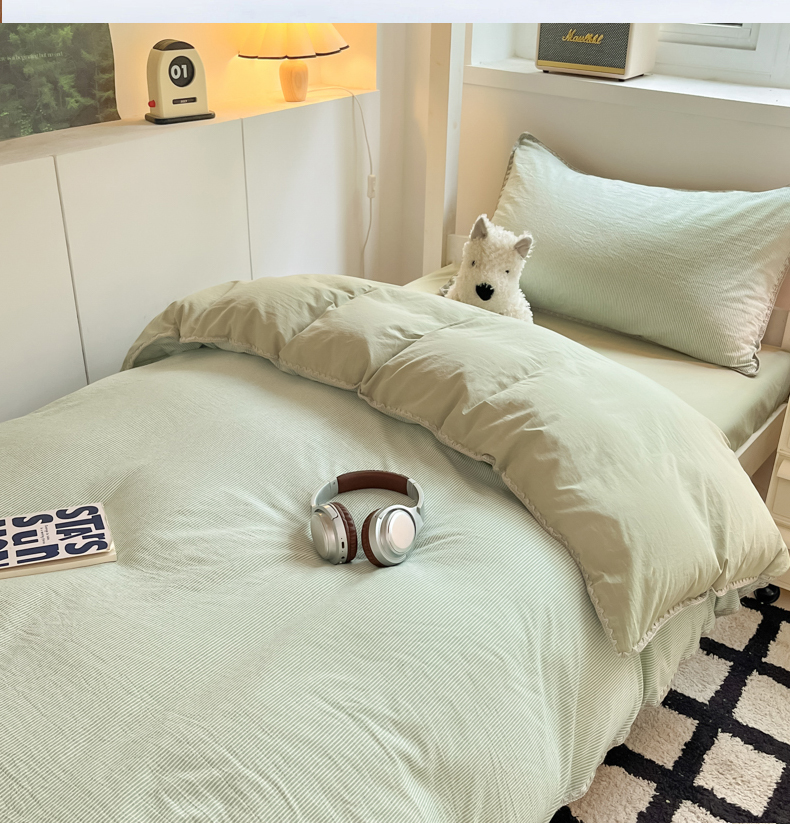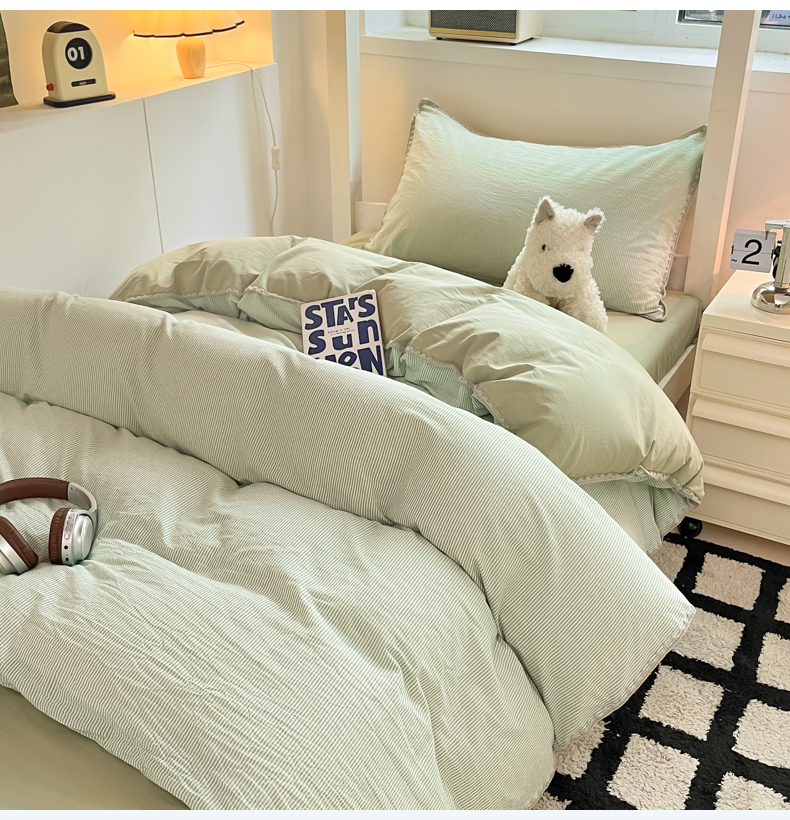 商品名称:吉象家纺 2025新款全棉水洗棉三角针学生三件套四件套 秘境-浅绿