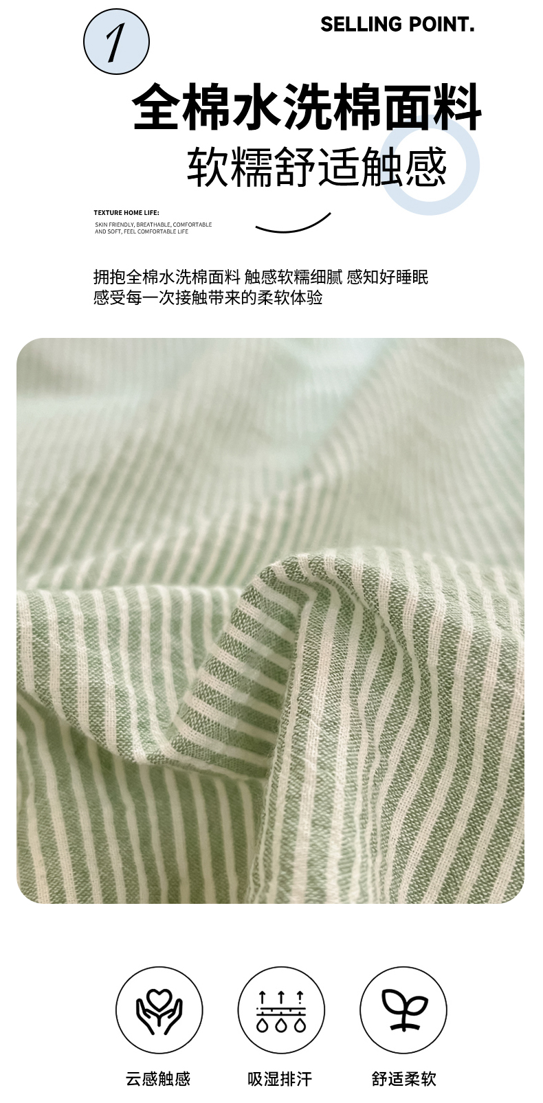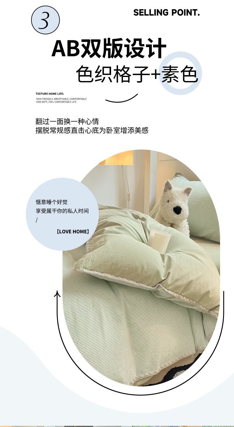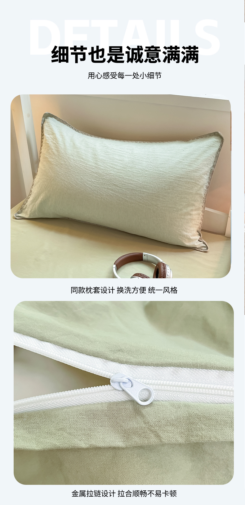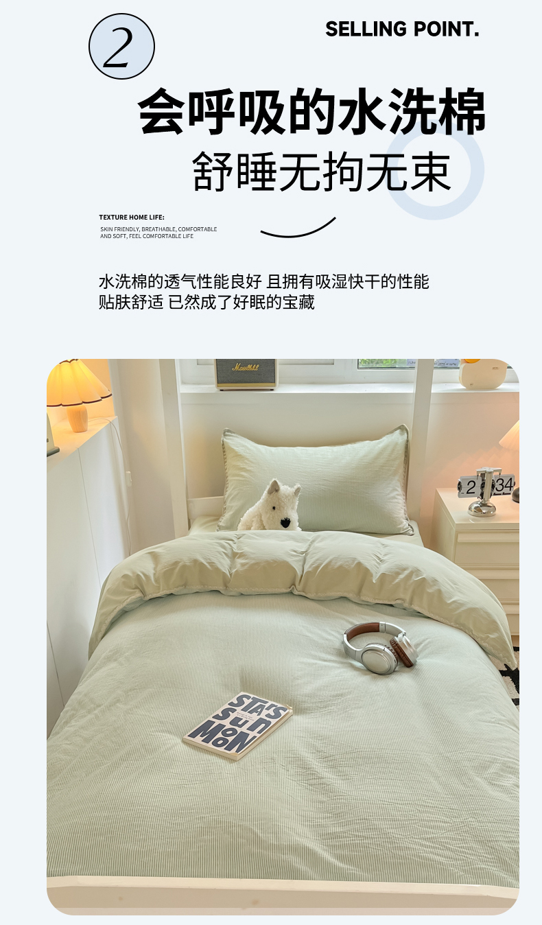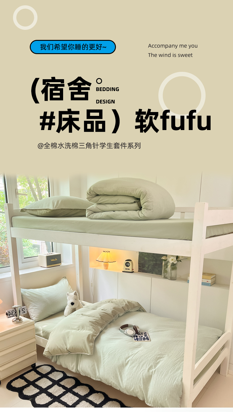 商品名称:吉象家纺 2025新款全棉水洗棉三角针学生三件套四件套 秘境-浅绿