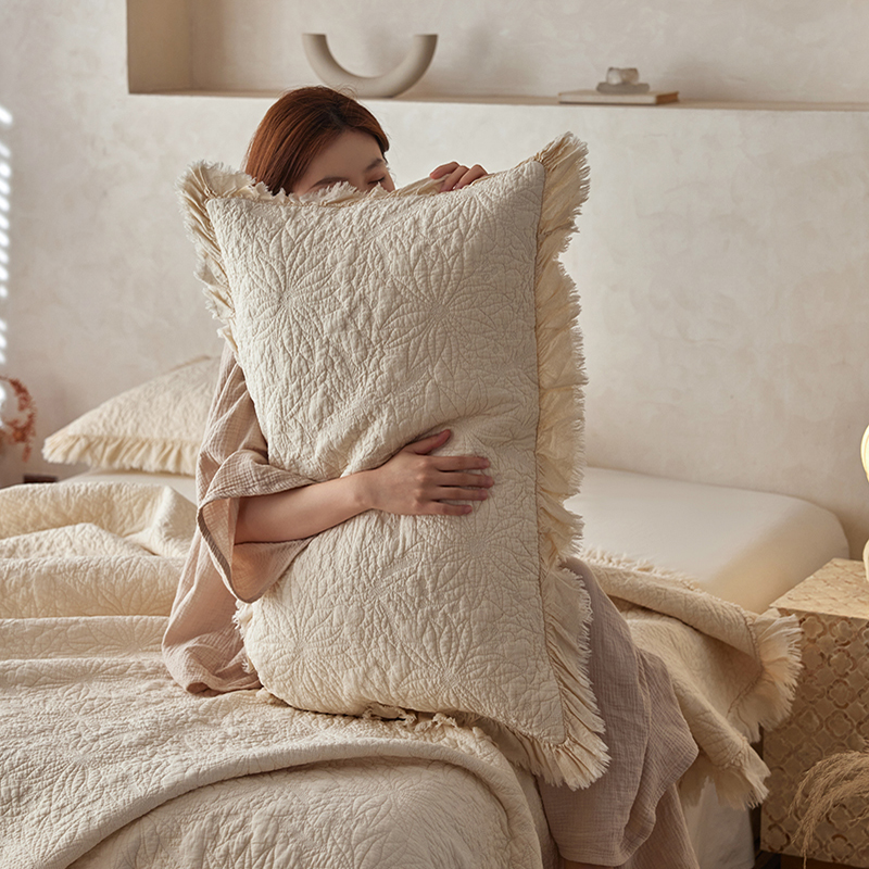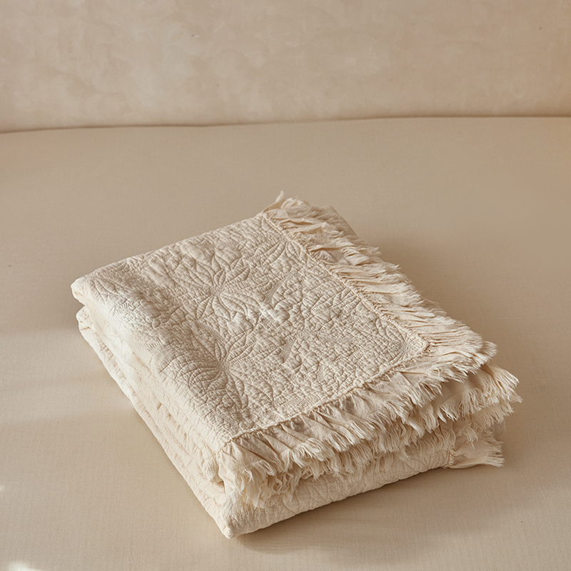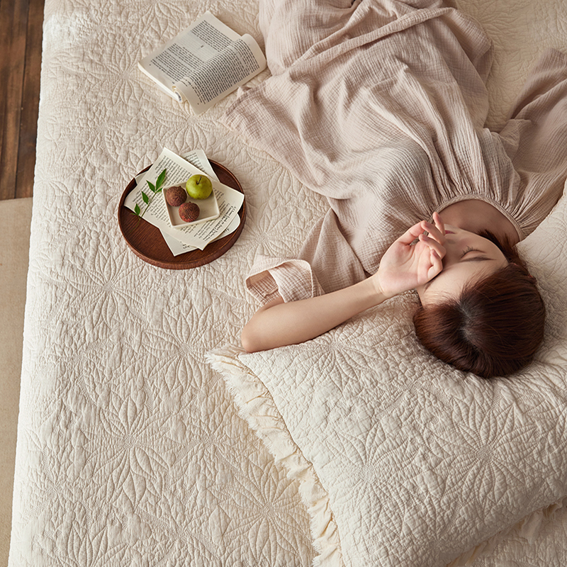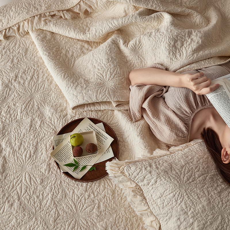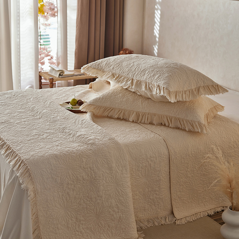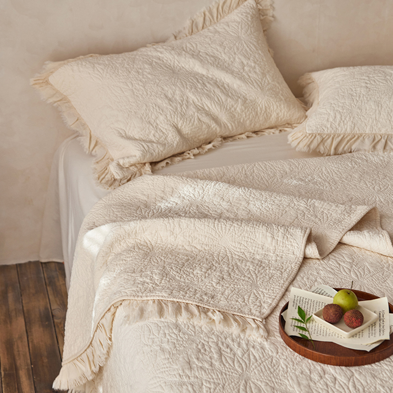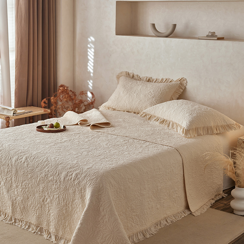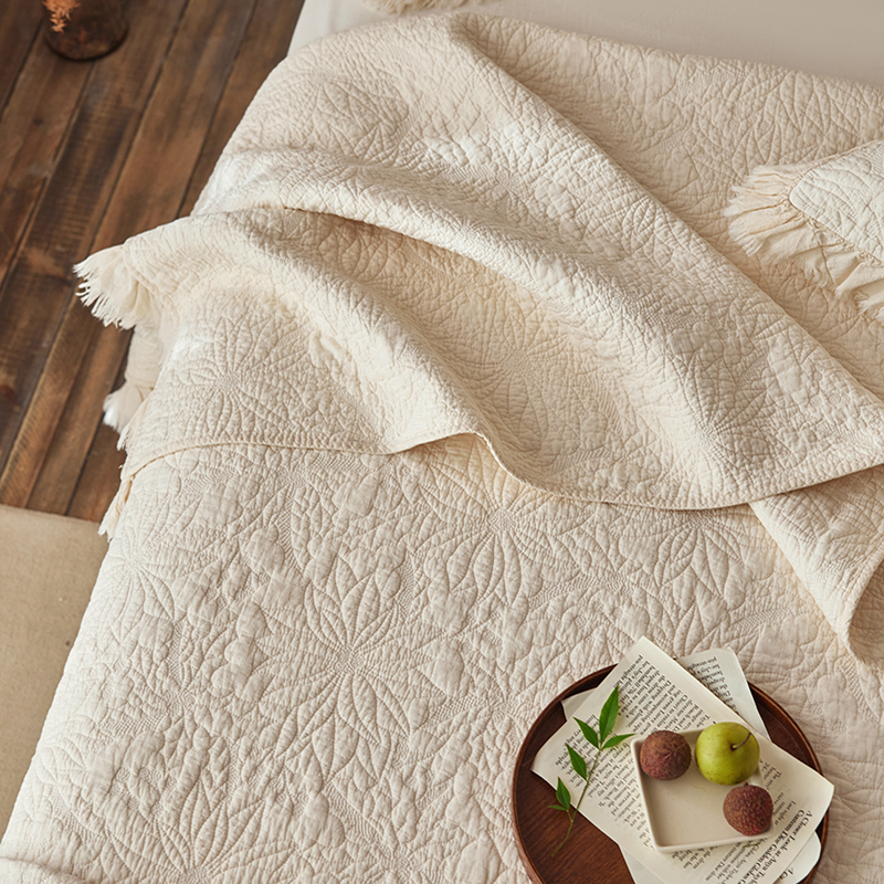 安莱生活 2024新品百分百全棉密道绗缝成品酵素洗多功能床盖三件套 浅花