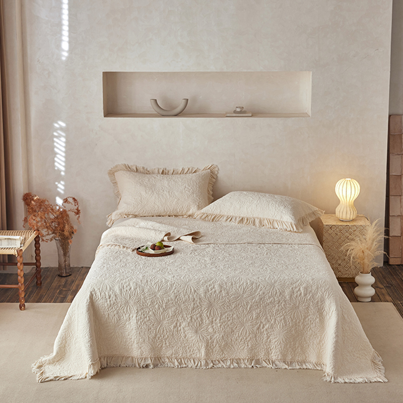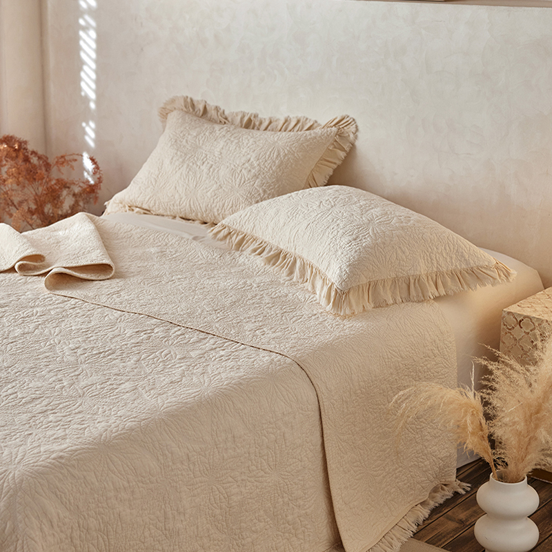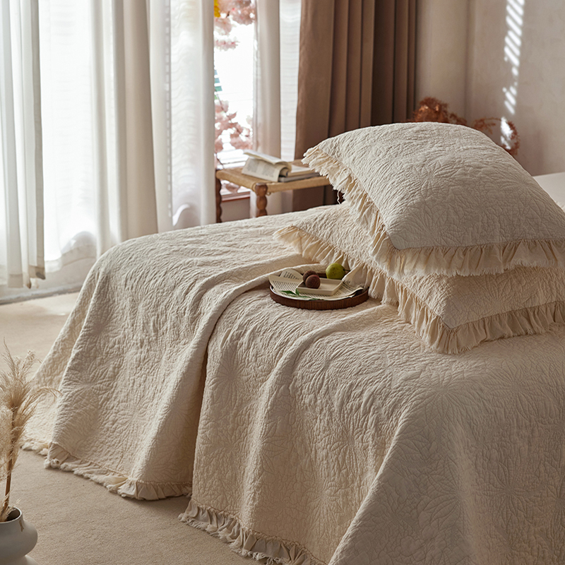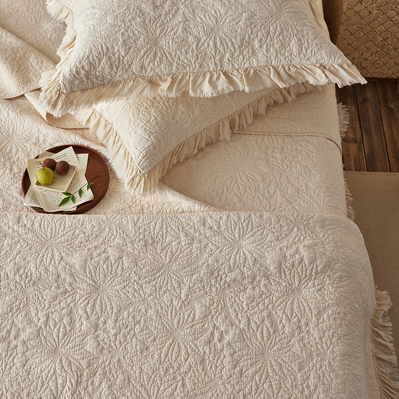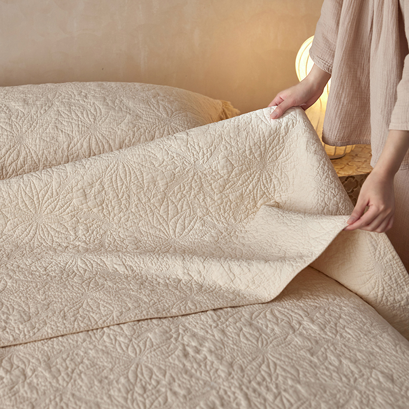 商品名称:安莱生活 2024新品百分百全棉密道绗缝成品酵素洗多功能床盖三件套 浅花