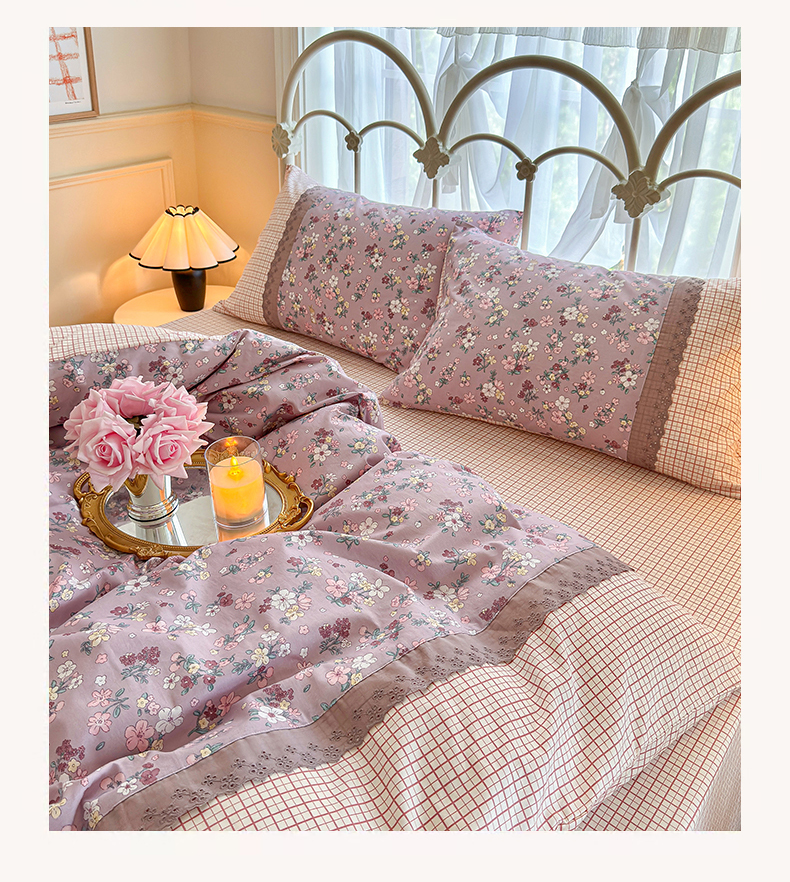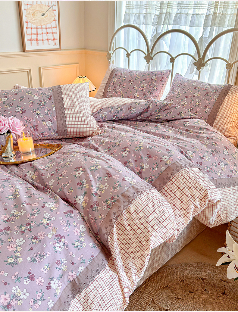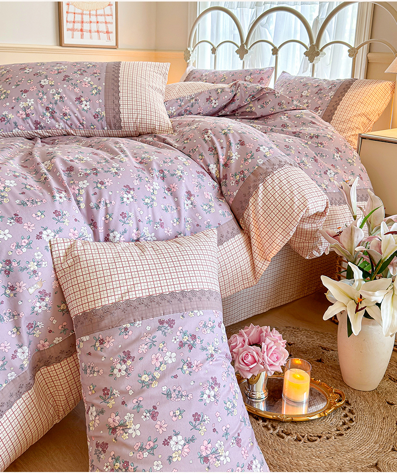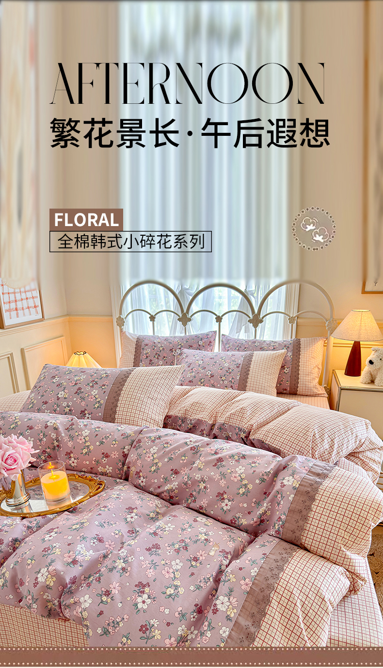 商品名称:安莱生活 2024新款全棉韩式小碎花系列四件套 紫云花园