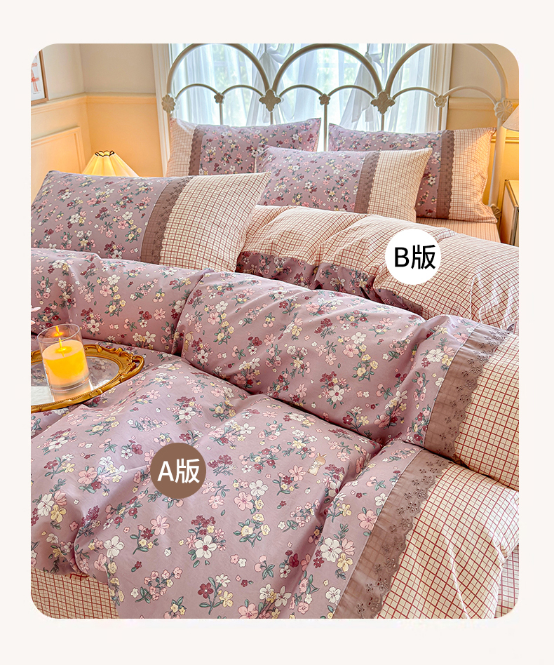 (总)安莱生活 2026年新品全棉纯棉小碎花刺绣花边款四件套-小碎花系列,花漾粉,花梦紫,凯特花园,漫语花,泡芙花园
