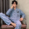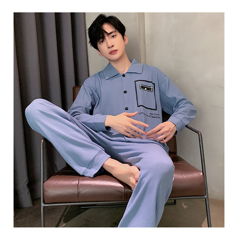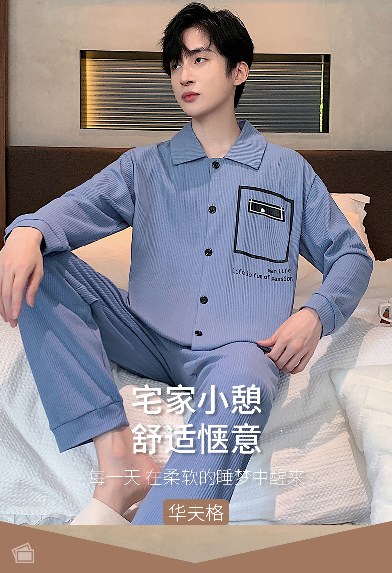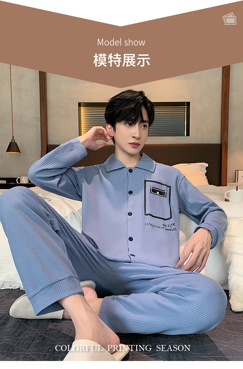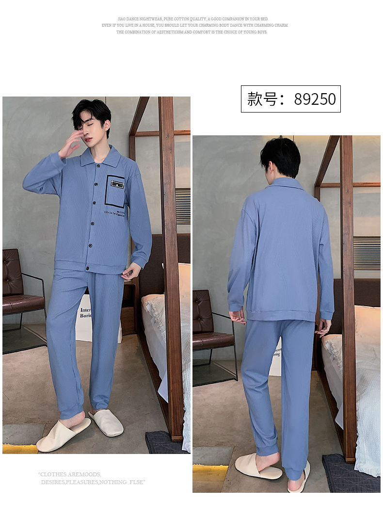 春秋季新款纯棉休闲简约睡衣高级质量家居服夏季男士宽松舒适睡衣翻领 89250