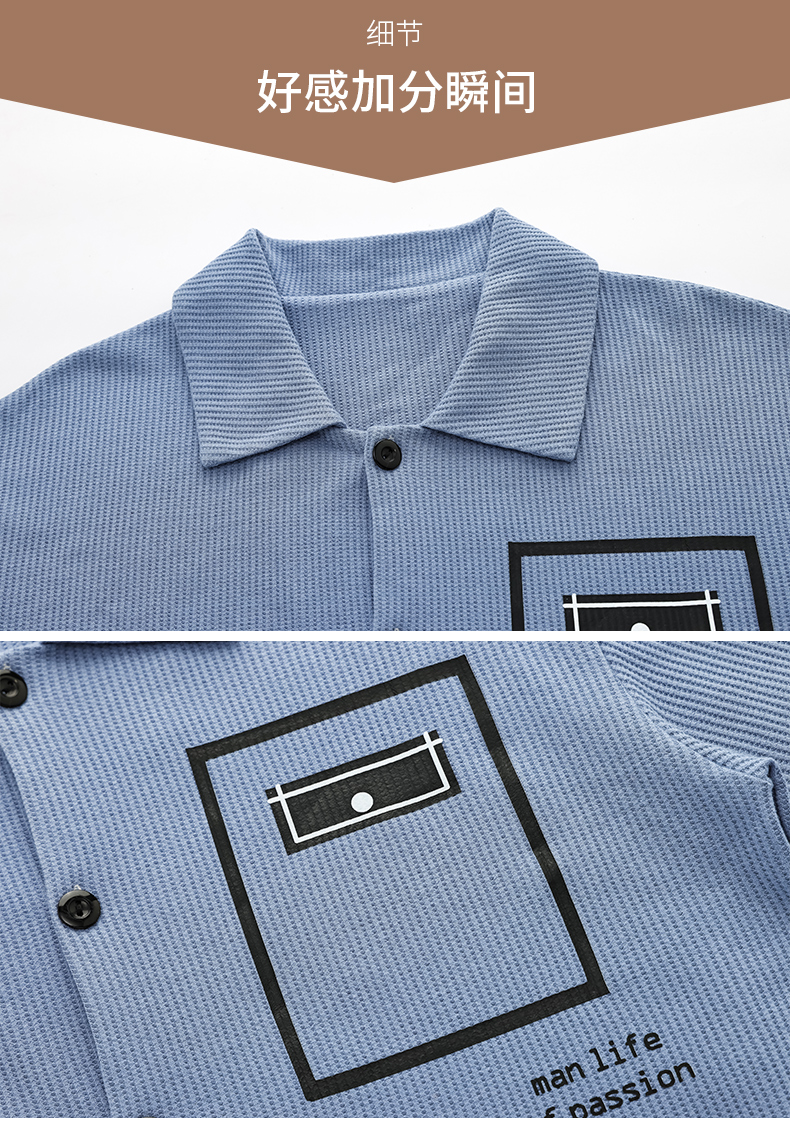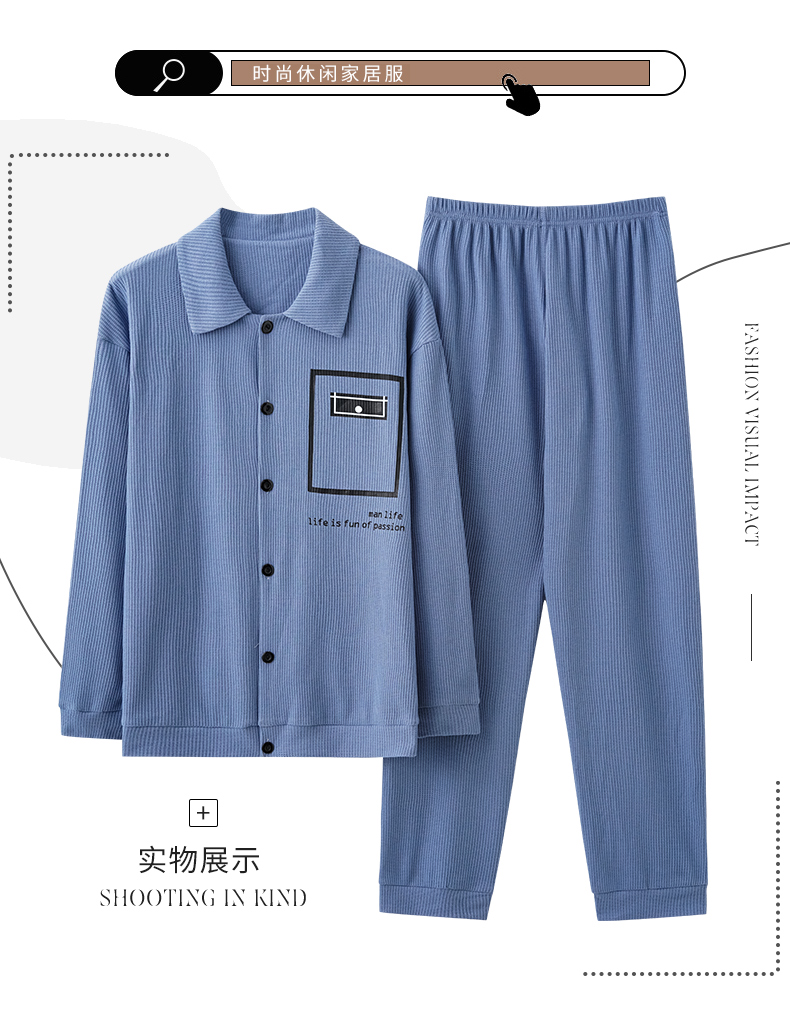 商品名称:春秋季新款纯棉休闲简约睡衣高级质量家居服夏季男士宽松舒适睡衣翻领 89250