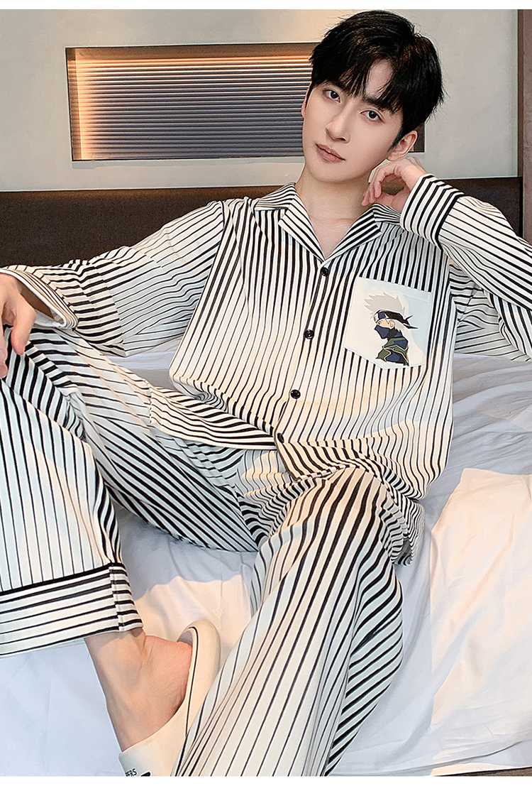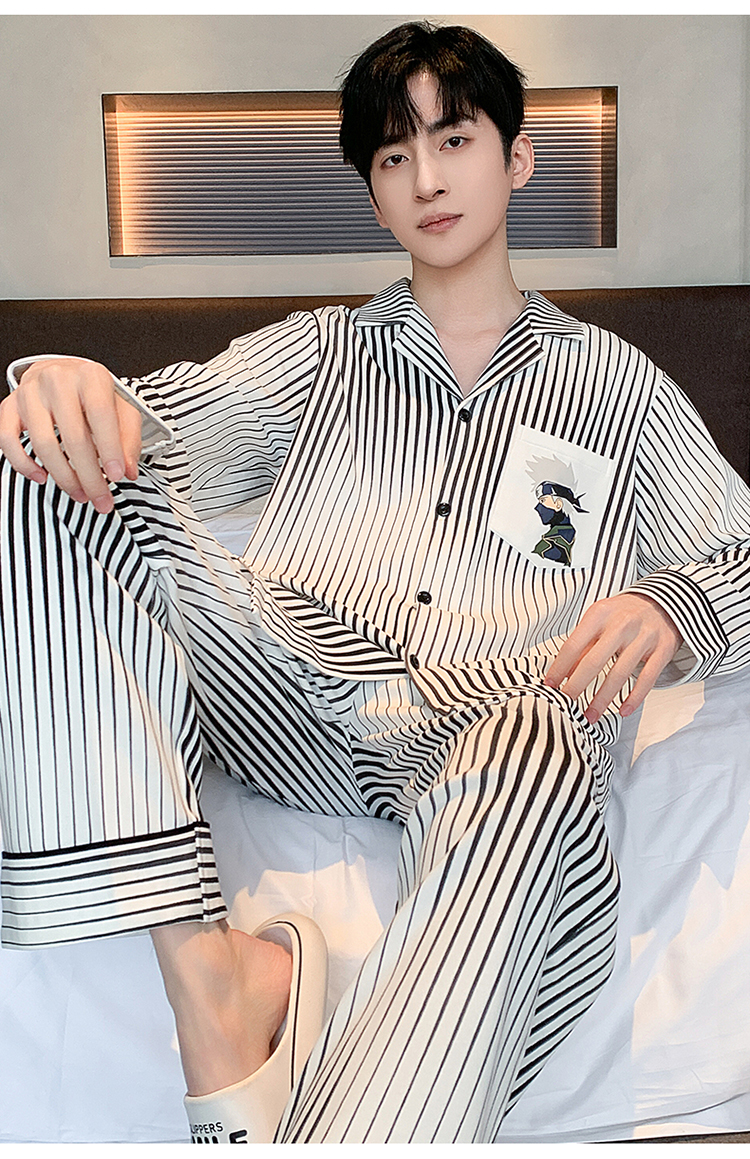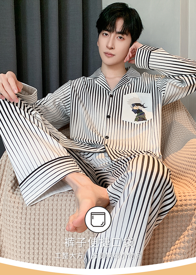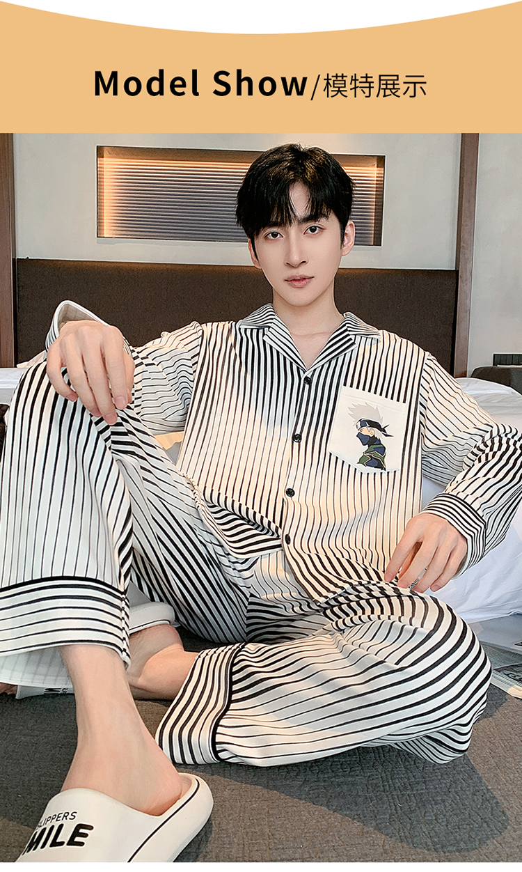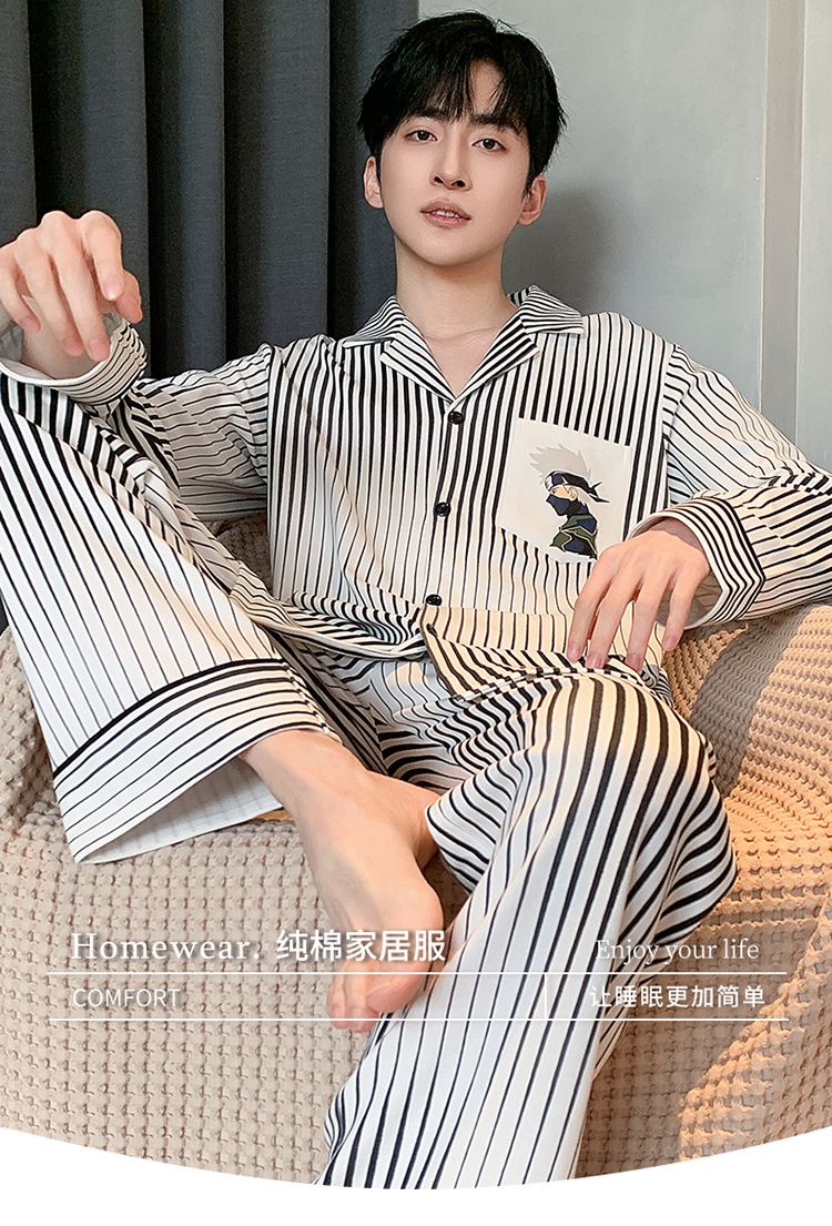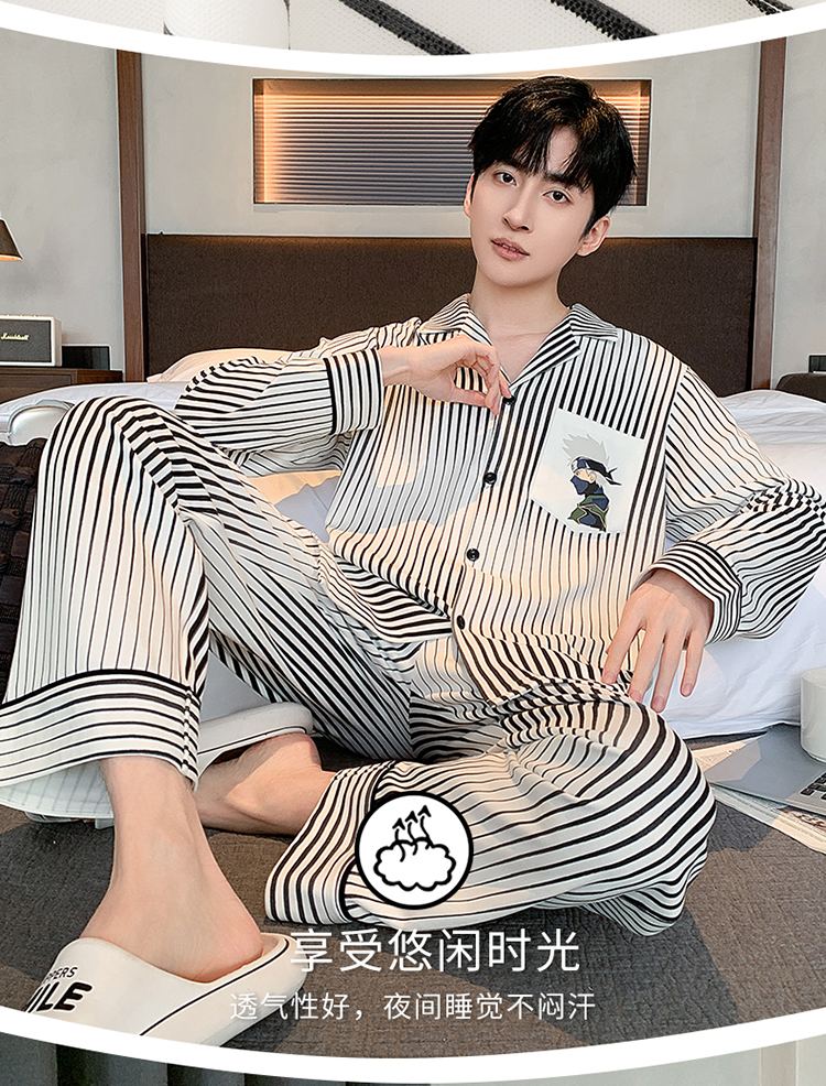 春秋季新款纯棉休闲简约睡衣高级质量家居服夏季男士宽松舒适睡衣翻领 89315