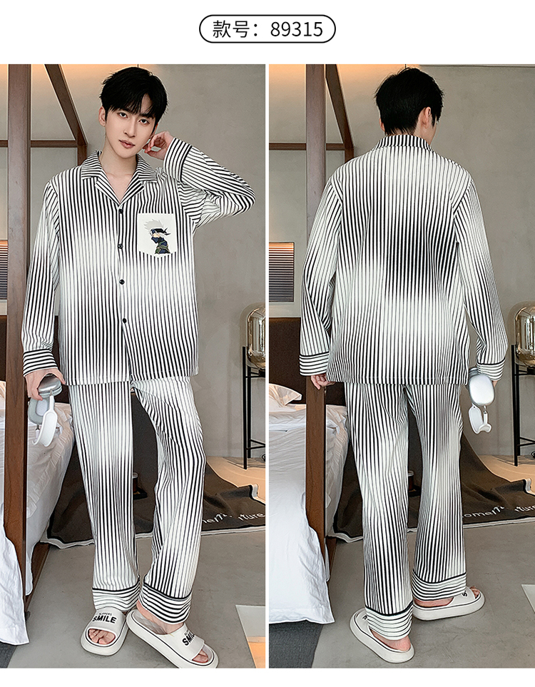 商品名称:春秋季新款纯棉休闲简约睡衣高级质量家居服夏季男士宽松舒适睡衣翻领 89315