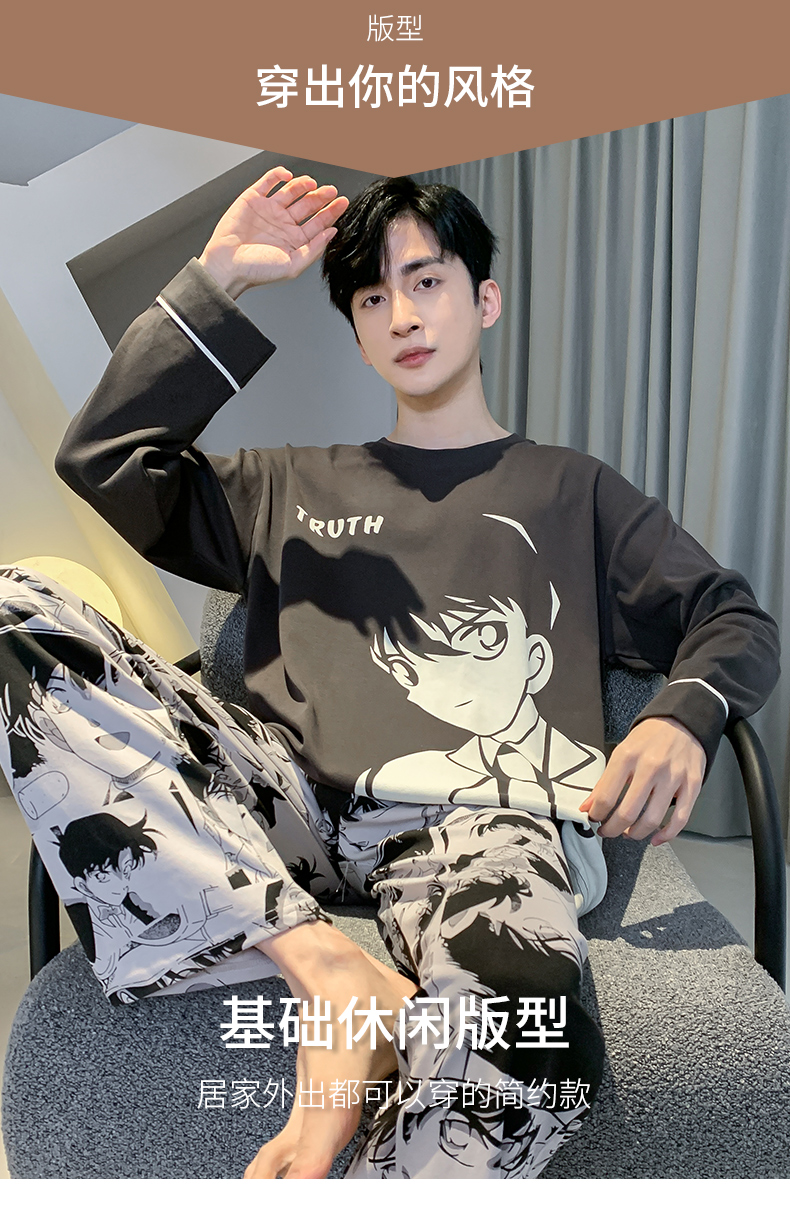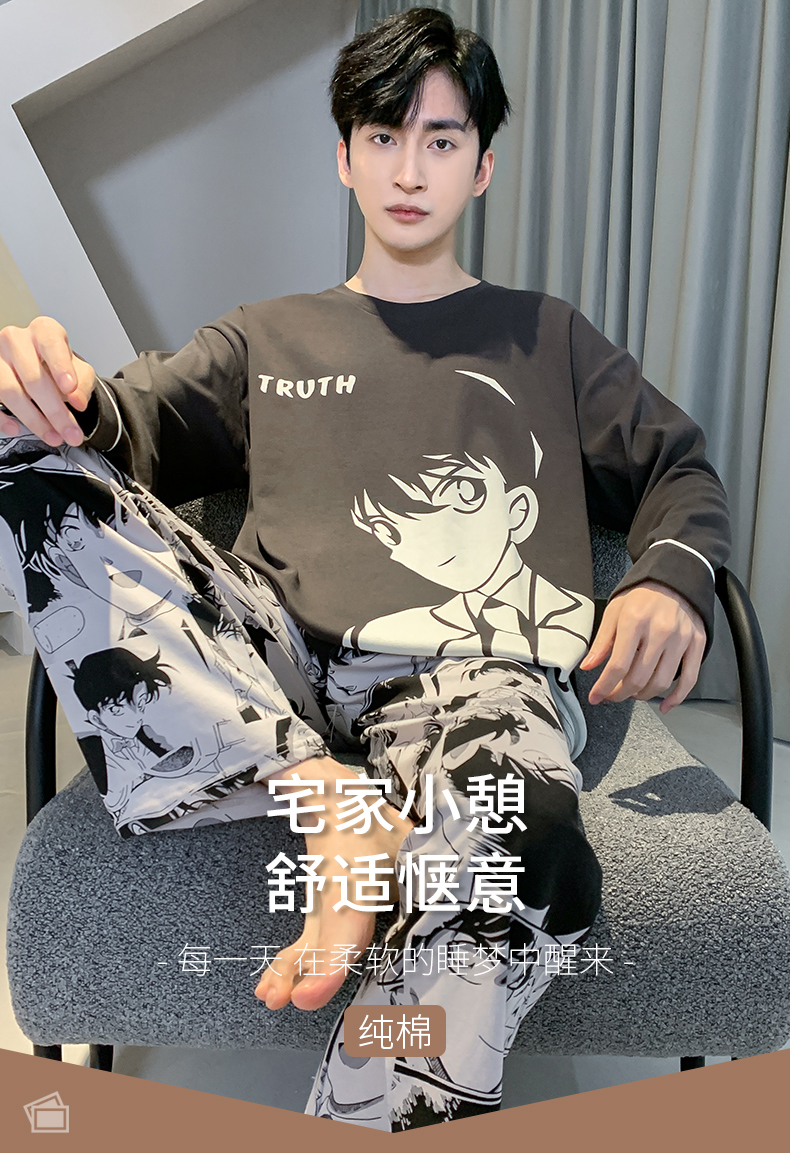 商品名称:春秋季纯棉圆领睡衣男士卡通长袖家居服夏季青少年休闲可外穿套装 89257