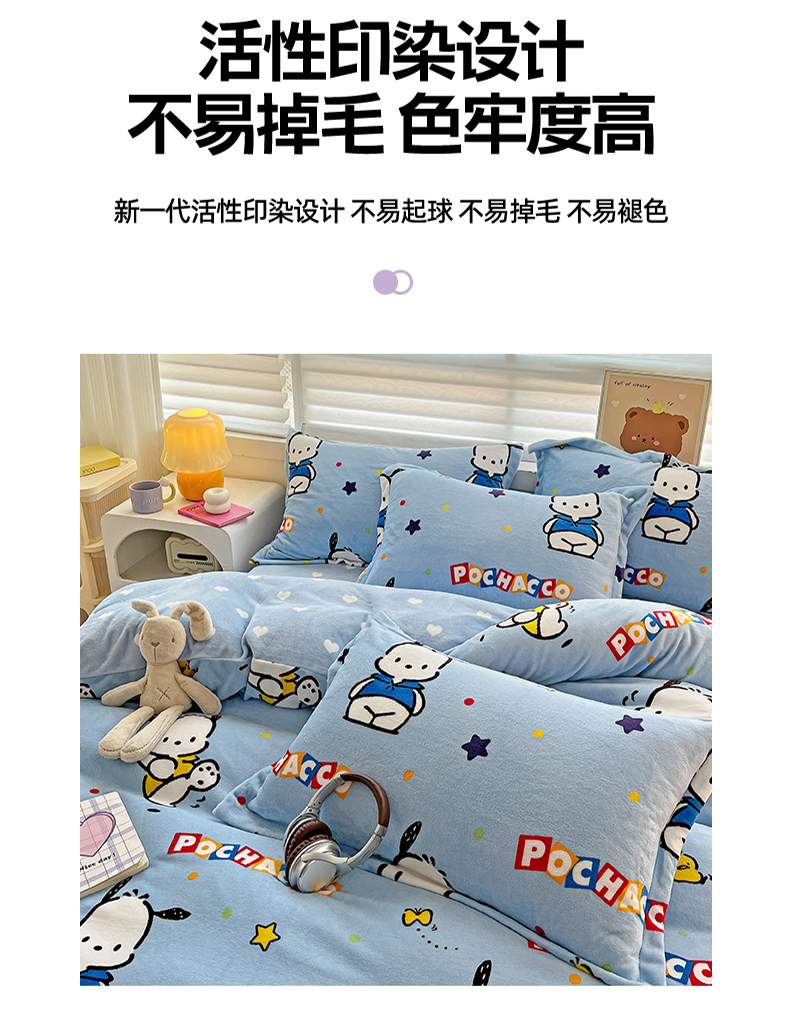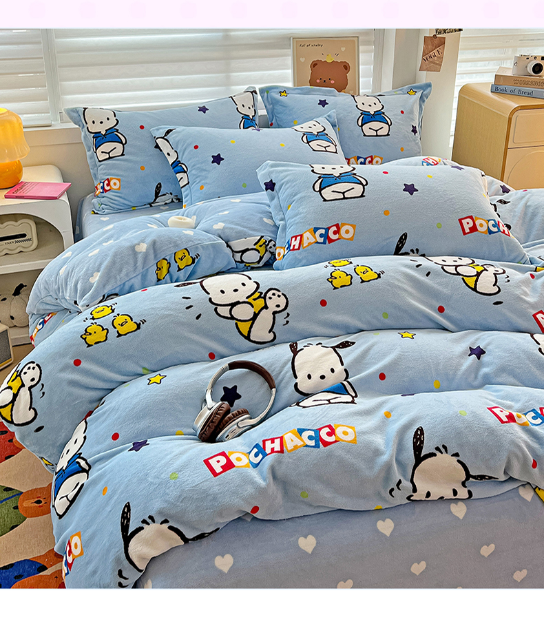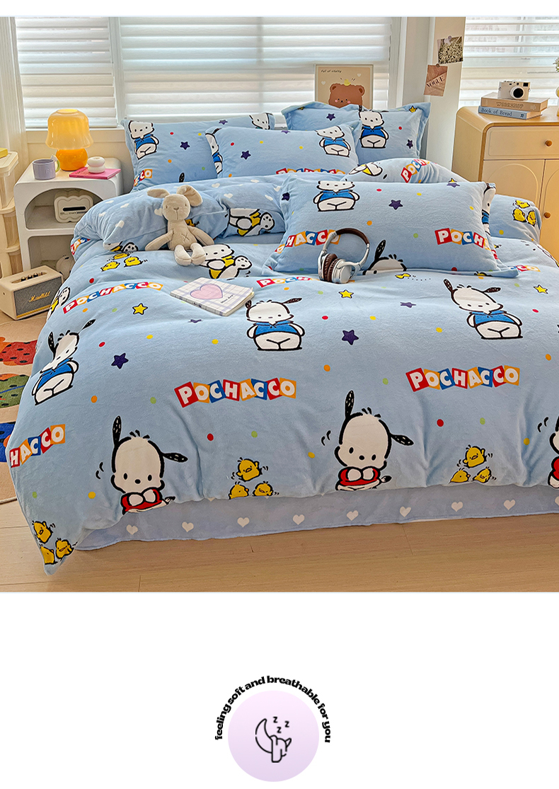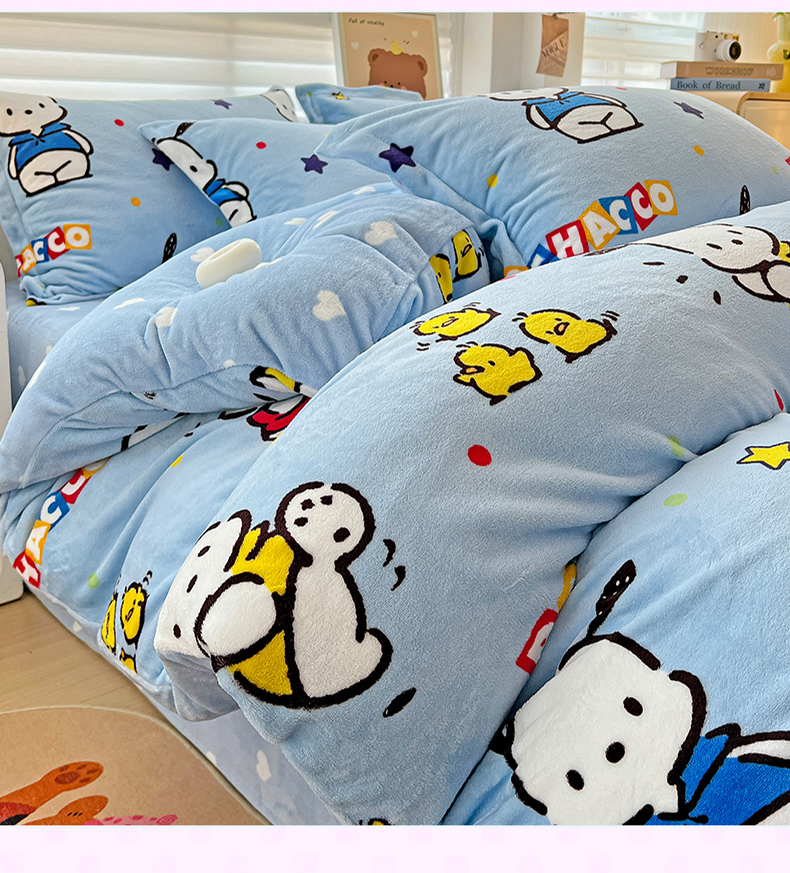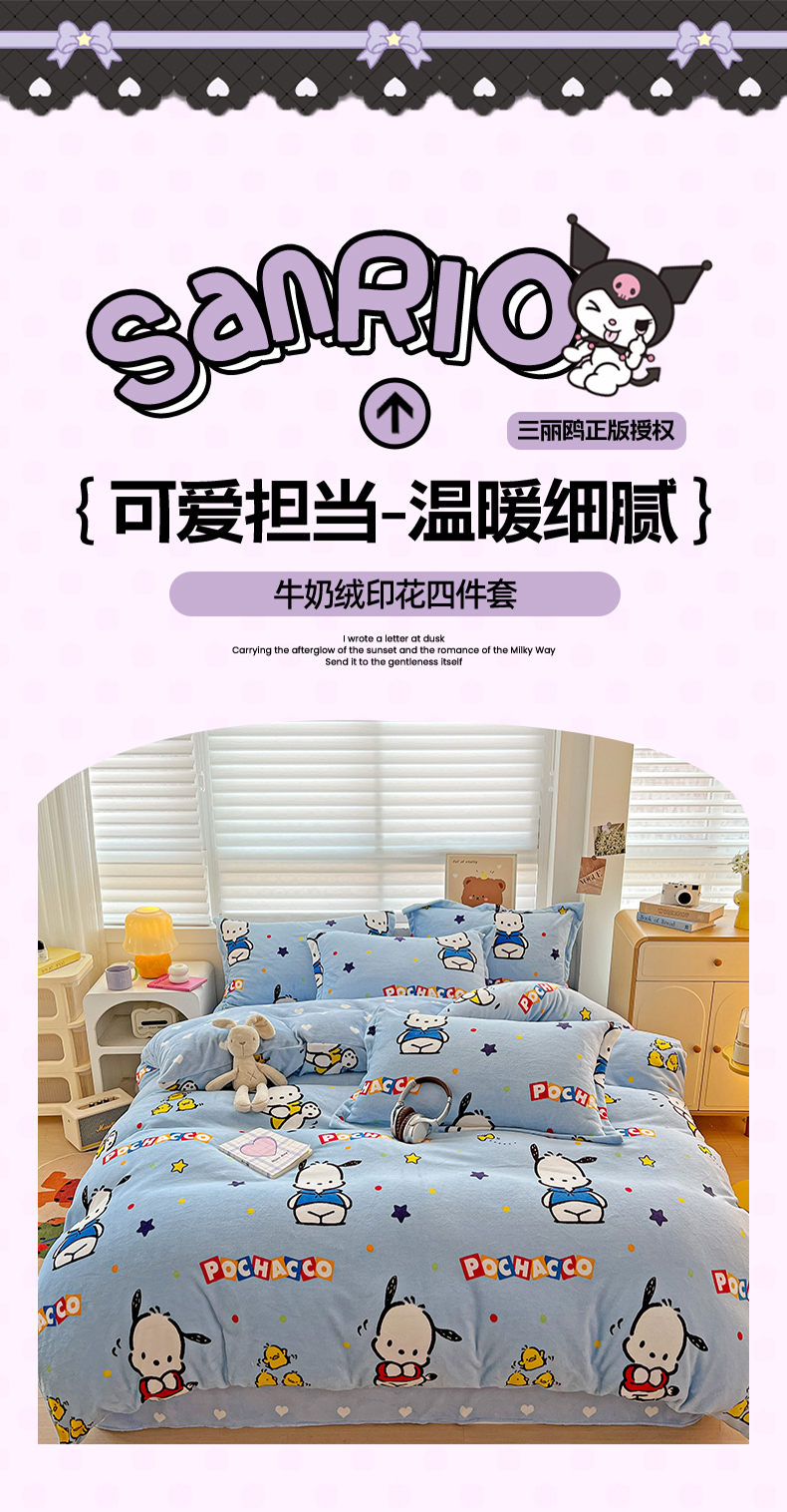 当前位置: 91家纺网 > 商品网购 > 床品套件 > 四件套 > 牛奶绒四件套 > KT猫直营店 2024新款三丽鸥库洛米牛奶绒四件套 活力帕恰狗