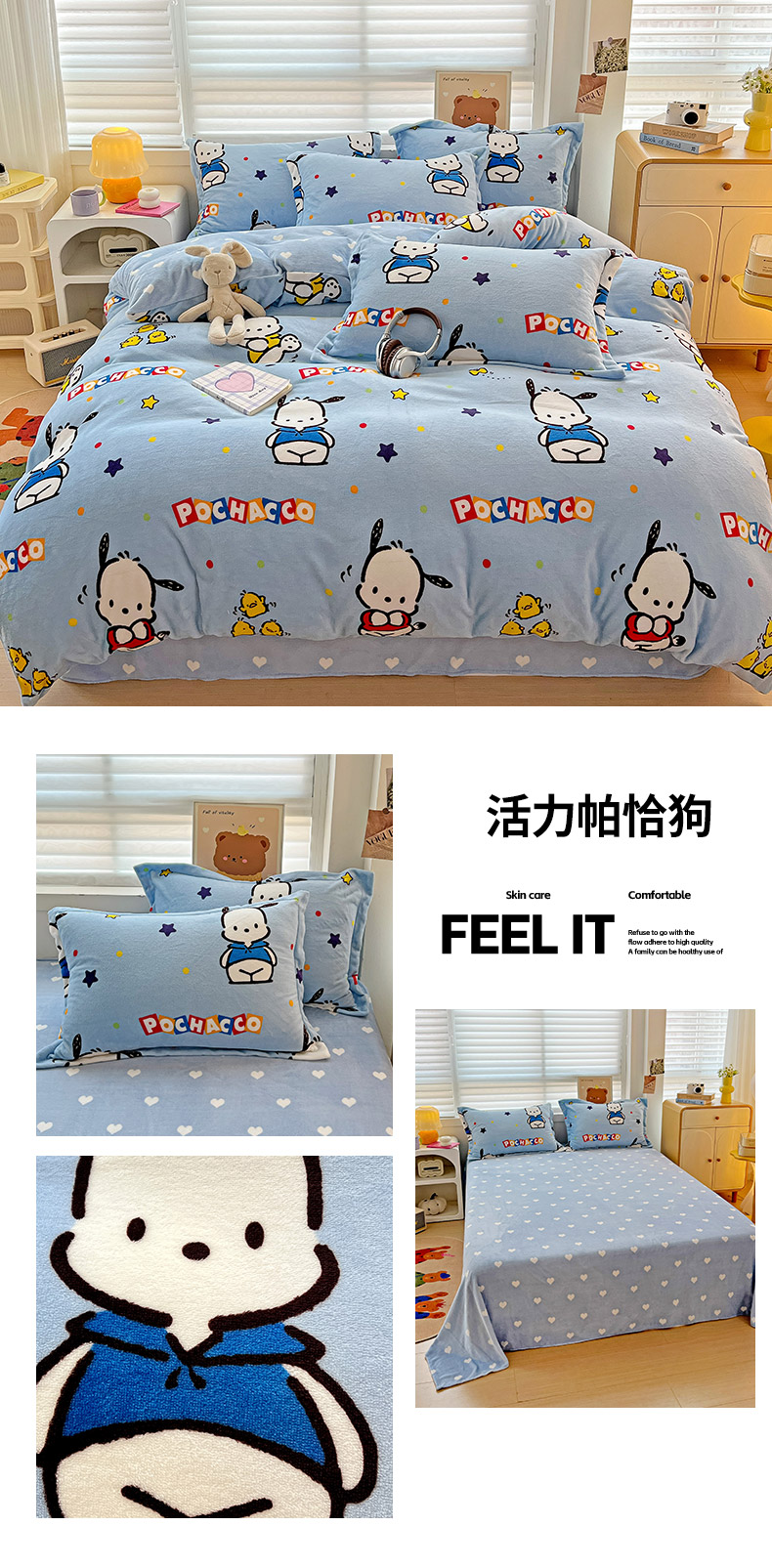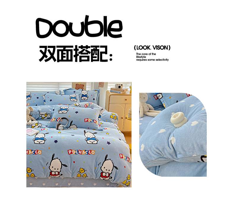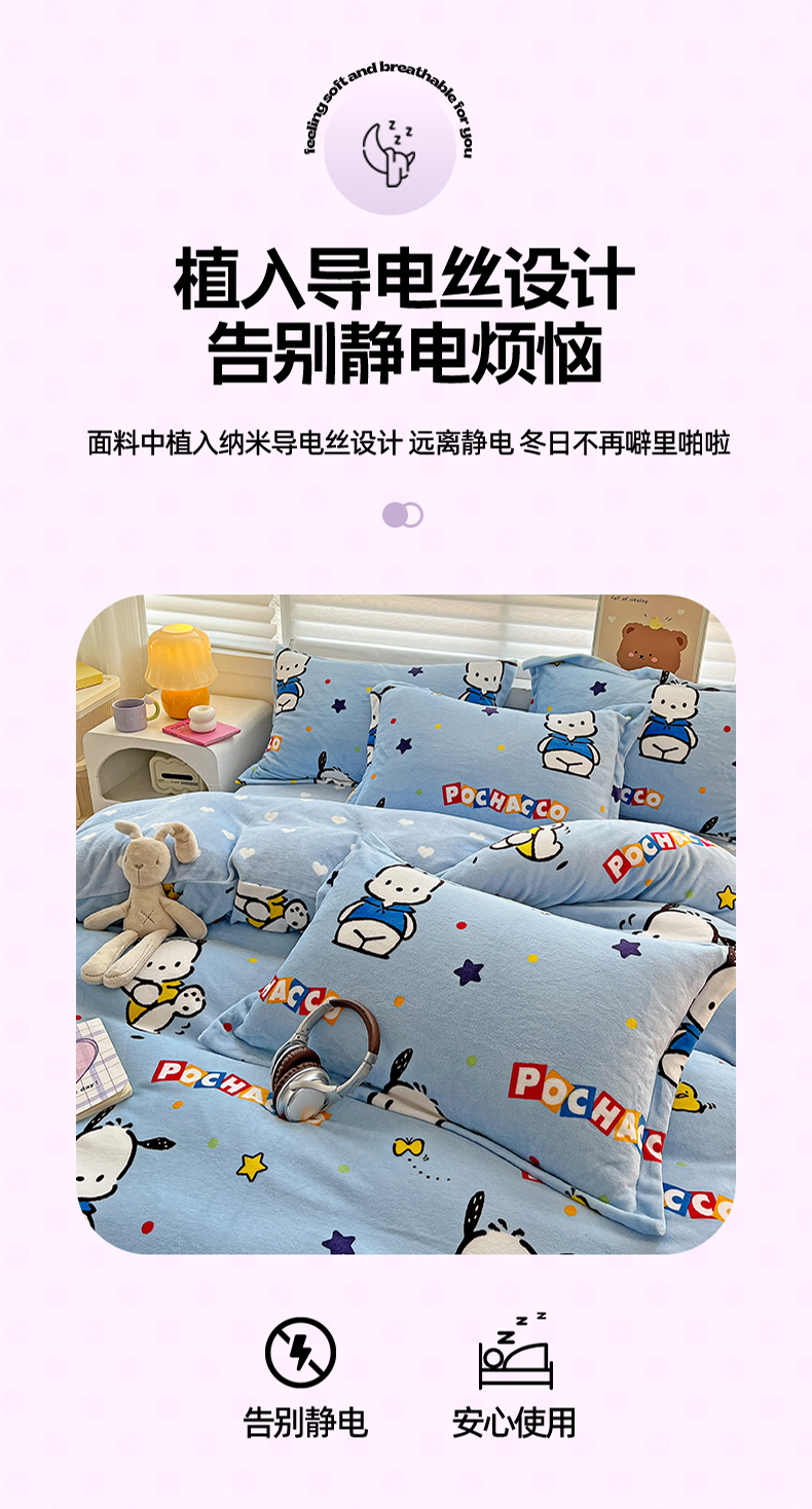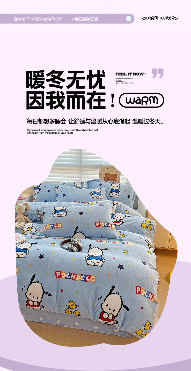 当前位置: 91家纺网 > 商品网购 > 床品套件 > 四件套 > 牛奶绒四件套 > KT猫直营店 2024新款三丽鸥库洛米牛奶绒四件套 活力帕恰狗