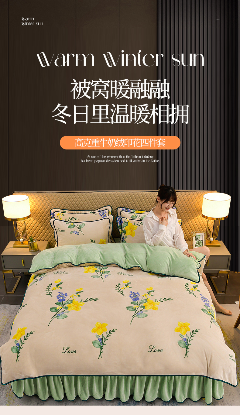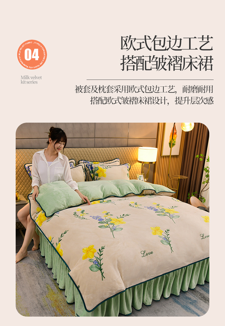 (总)曼尼2025新品高克重直播印花牛奶绒四件套床裙款法莱绒金貂珊瑚绒,牛奶派对,安娜粉,巴黎之约,霸王茶姬,玫瑰庄园,咪ni,秘密花园,逆境,暖暖时光,青花瓷,三生有幸,山茶花,时尚斑马,时尚格,水墨江南,小熊丫丫,叶叶思语,一鹿有你,穿越浪漫,淡雅,花间漫舞,小熊芭比,时尚风情,奇妙花开,迷情方格,艾莎 绿,清新怡人,梦幻花韵,郁金香,晚秋,蓝大格,妙笔生花,小兔吉米,吉祥如意,花开暮色