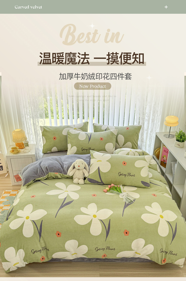 当前位置: 91家纺网 > 商品网购 > 床品套件 > 四件套 > 牛奶绒四件套 > 觅妮家纺 2025新款高克重秋冬加厚印花牛奶绒四件套 花漫