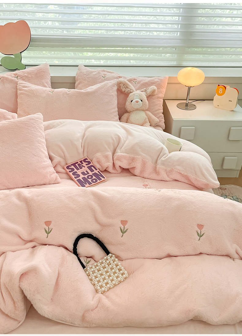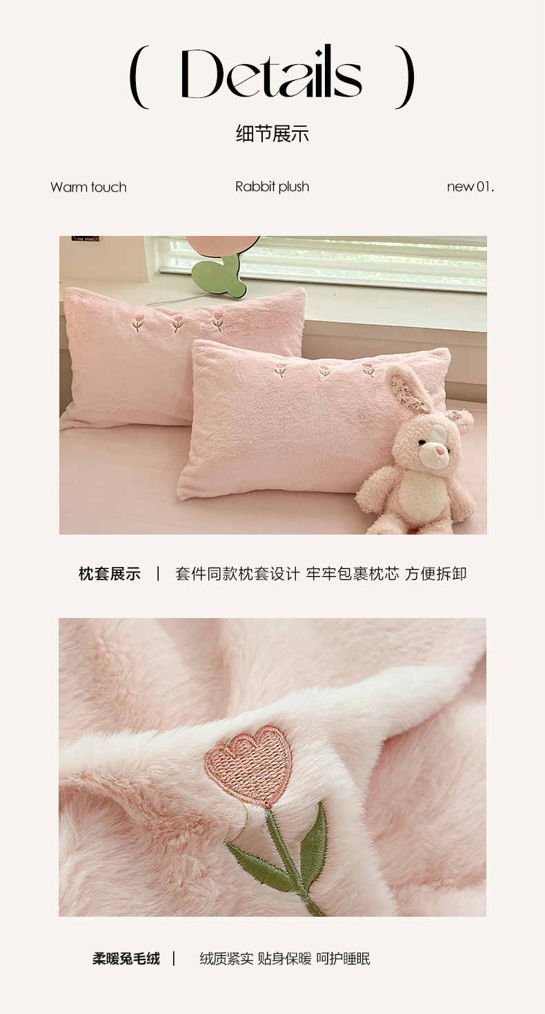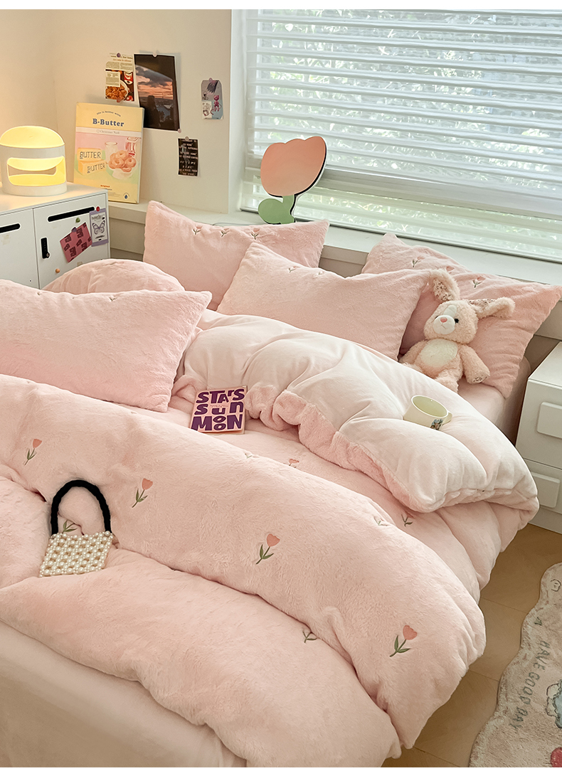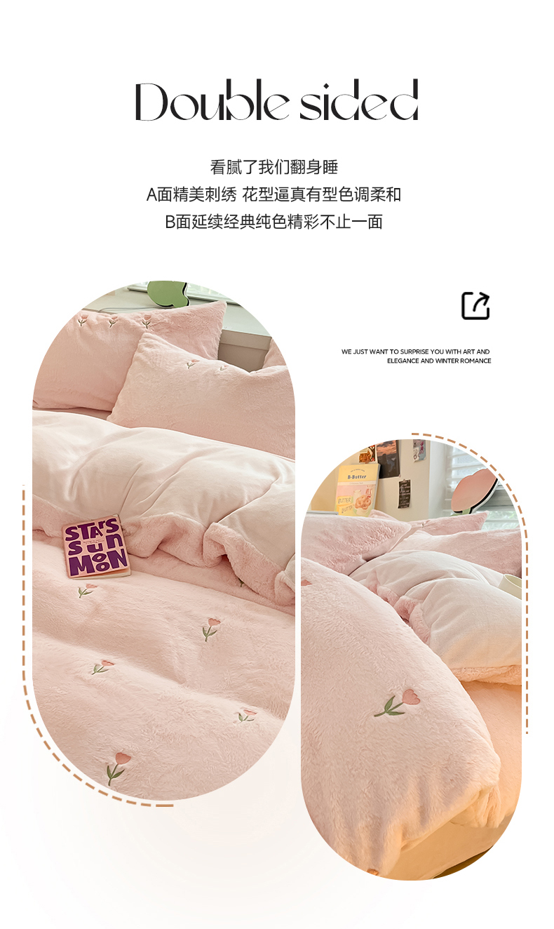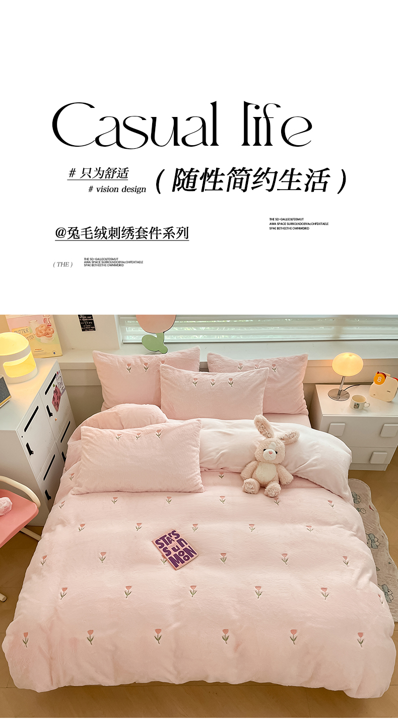 当前位置: 91家纺网 > 商品网购 > 床品套件 > 四件套 > 牛奶绒四件套 > 蜜柚 2024新款牛奶绒兔毛绒高克重小清新满版绣花四件套 花朵浅粉