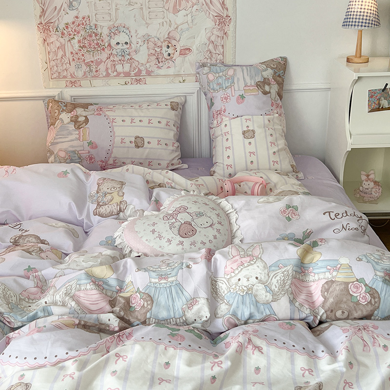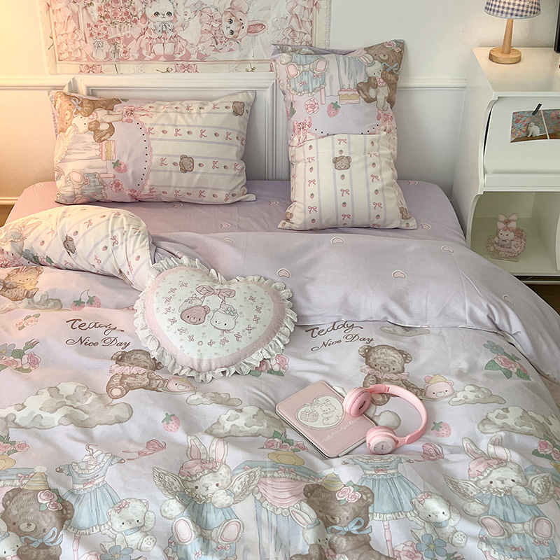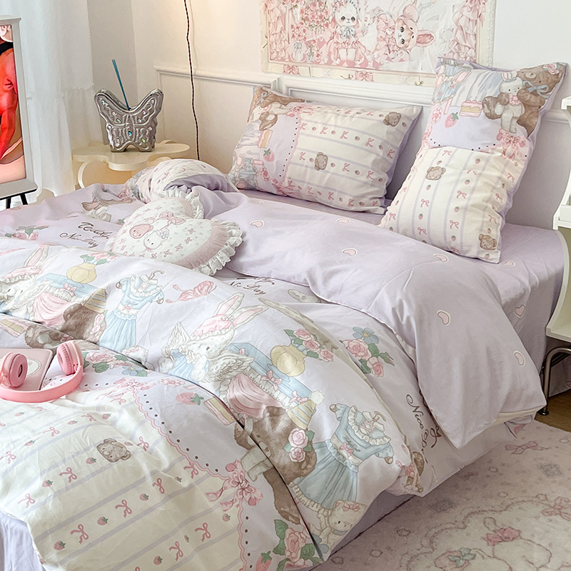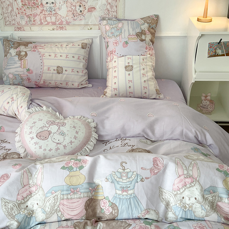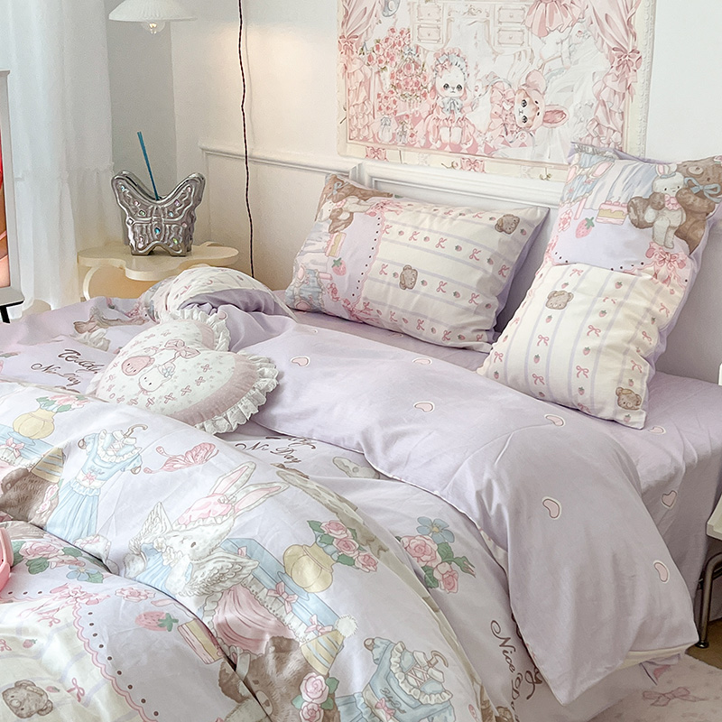 (总)昔可家纺 2024新款印花牛奶绒四件套系列-洛丽塔风,萝莉小兔,小熊烘焙屋,小熊玩偶屋