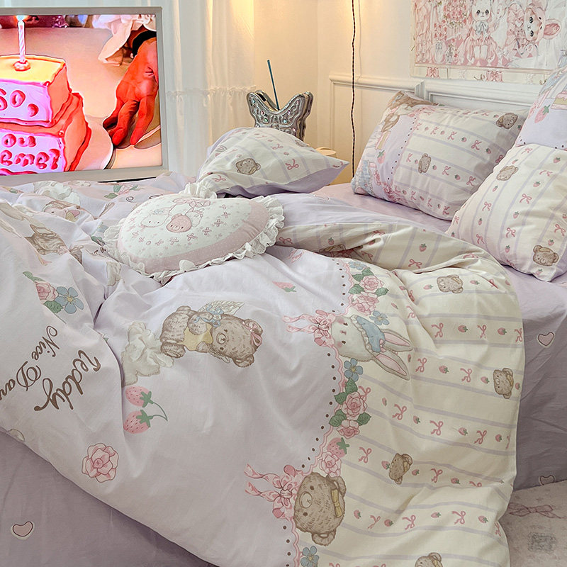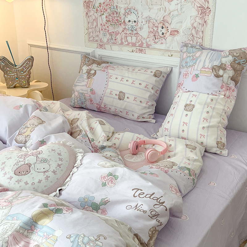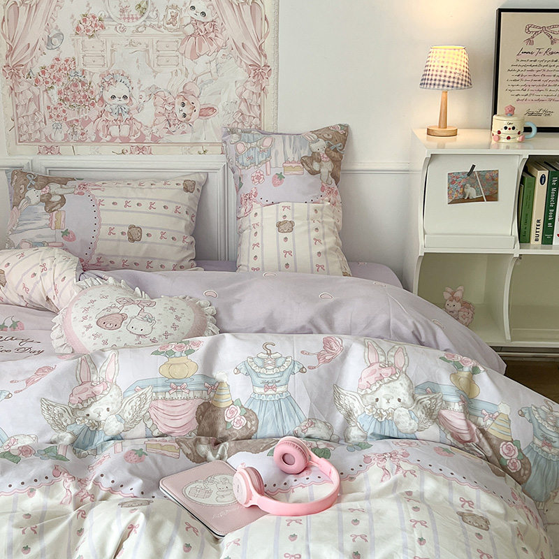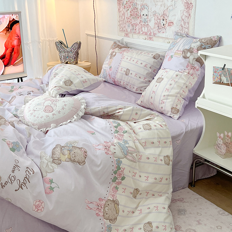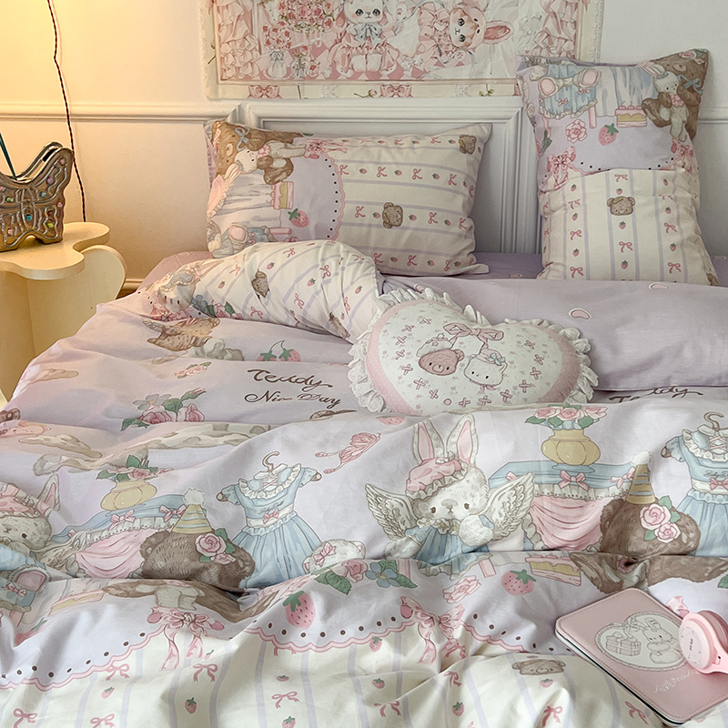 (总)昔可家纺 2024新款印花牛奶绒四件套系列-洛丽塔风,萝莉小兔,小熊烘焙屋,小熊玩偶屋