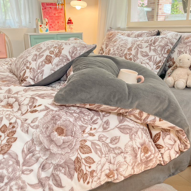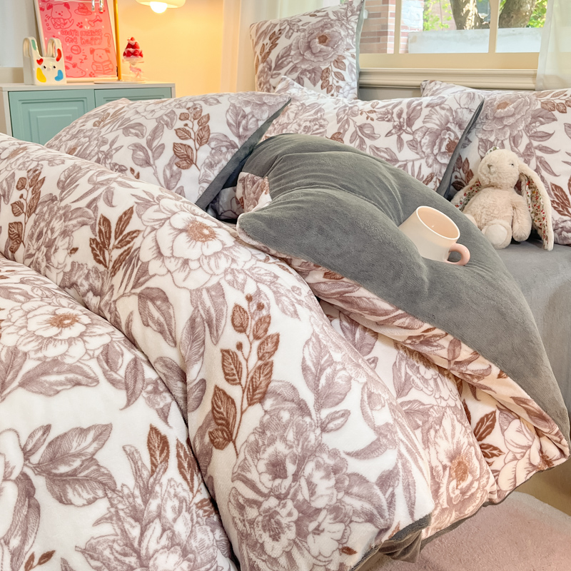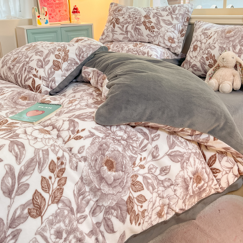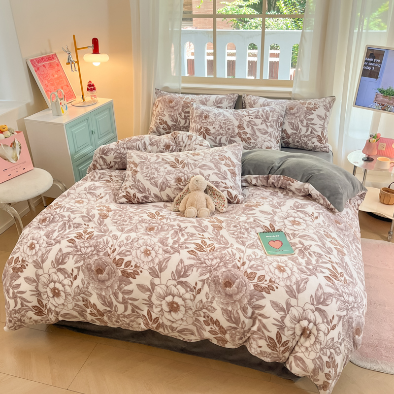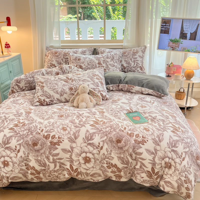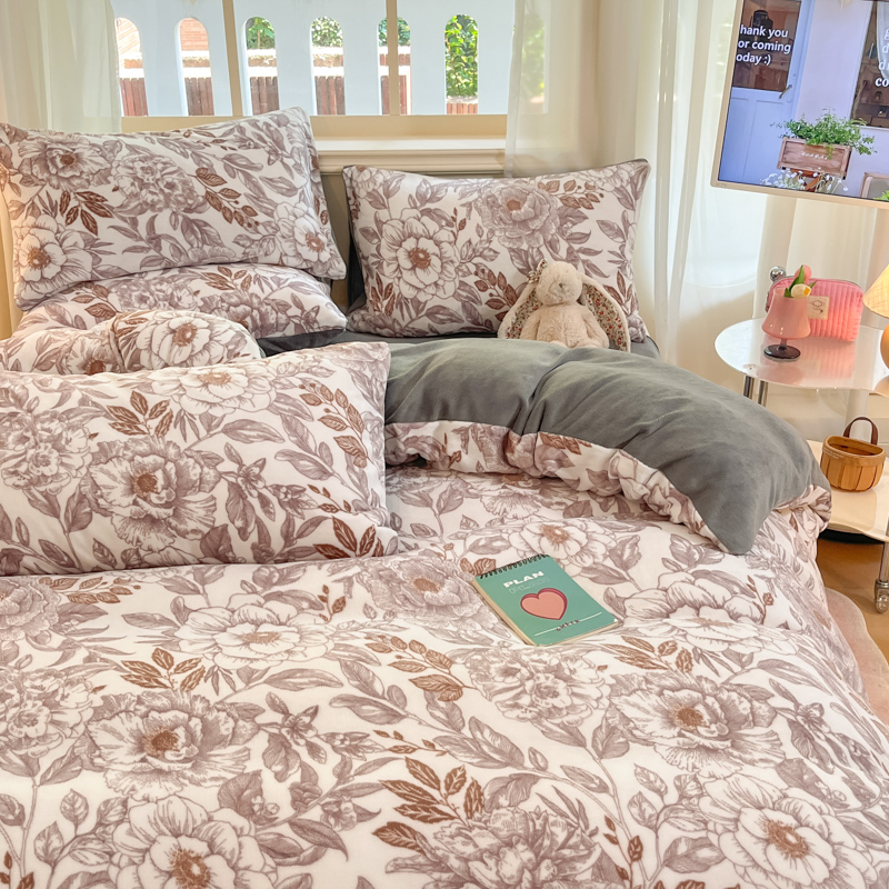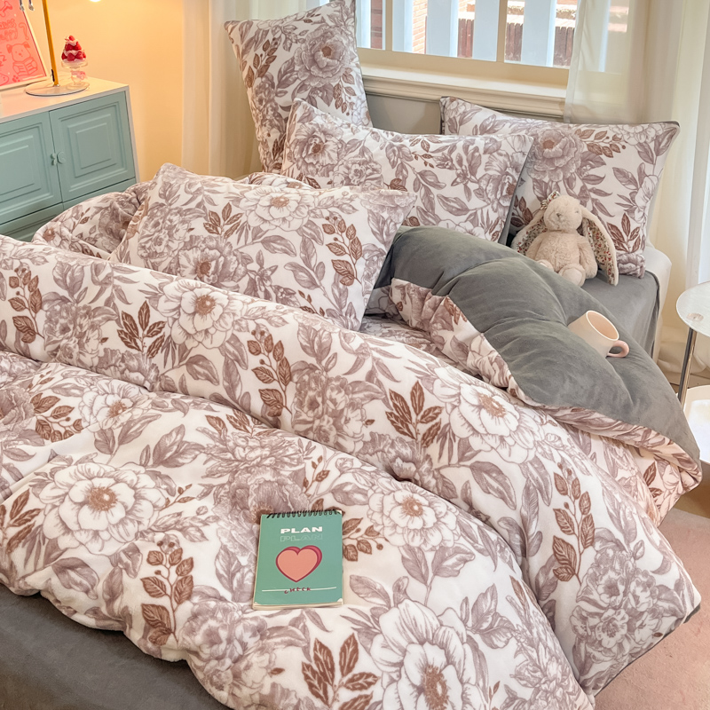 卡派 2024新款冬季亲肤透气牛奶绒印花四件套 秋意浓