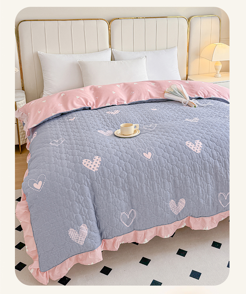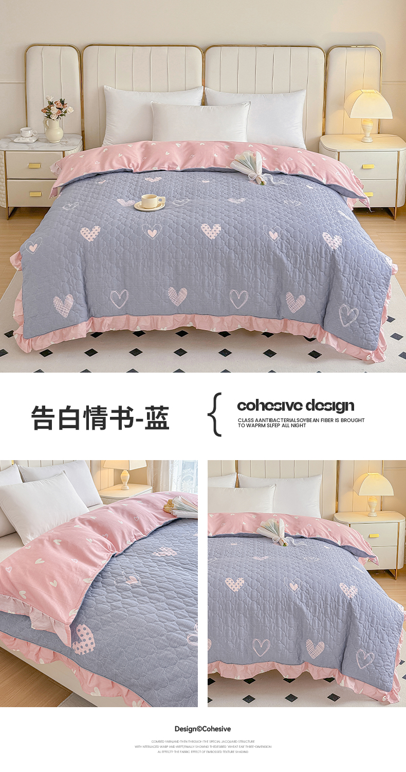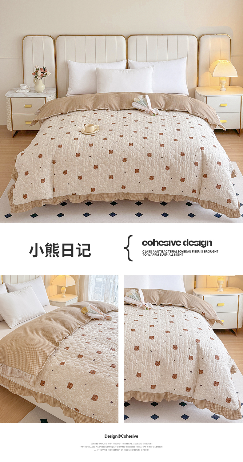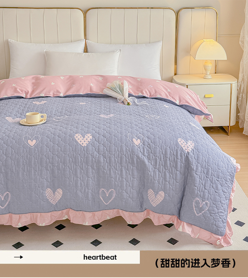 (总)爱妮玖玖 2022新款12868全棉夹棉床盖,爱恋蓝,草莓,春风里,点点,动物派对,格调,灰羽毛,蕉叶,柠檬,甜甜熊,叶语仙境,叶知秋,一路繁花,雨花石