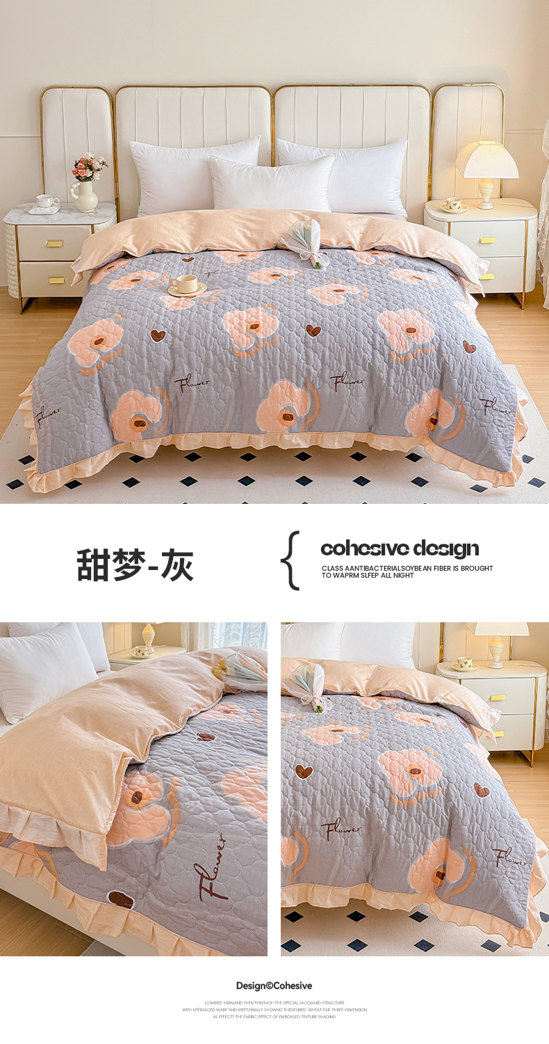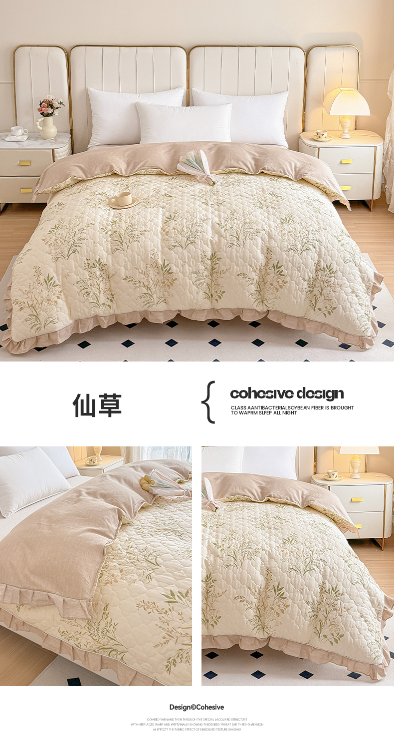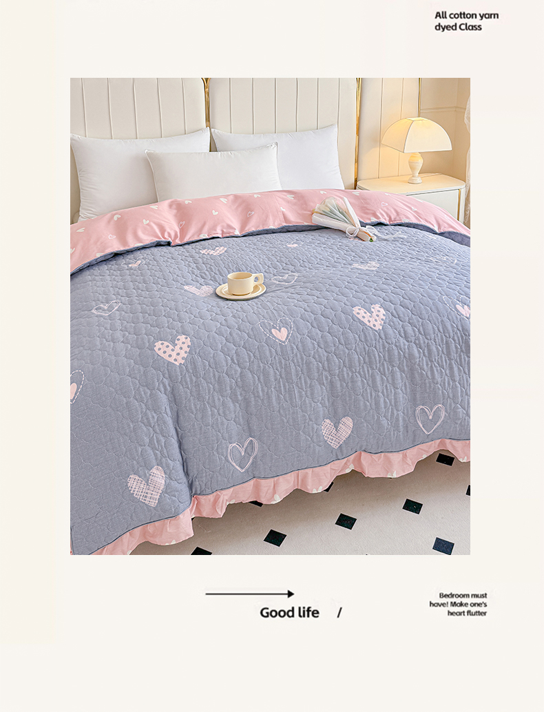(总)爱妮玖玖 2022新款12868全棉夹棉床盖,爱恋蓝,草莓,春风里,点点,动物派对,格调,灰羽毛,蕉叶,柠檬,甜甜熊,叶语仙境,叶知秋,一路繁花,雨花石