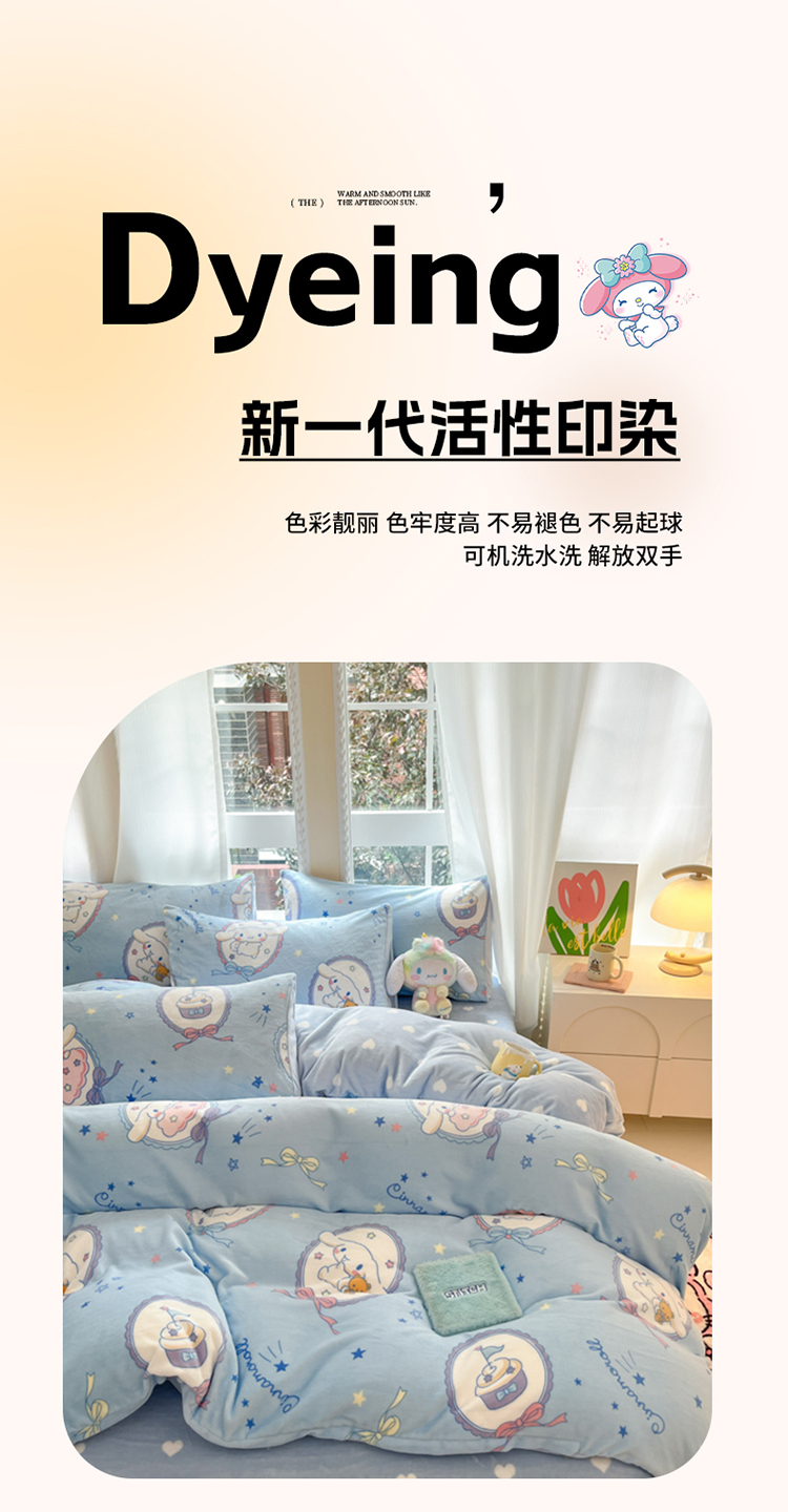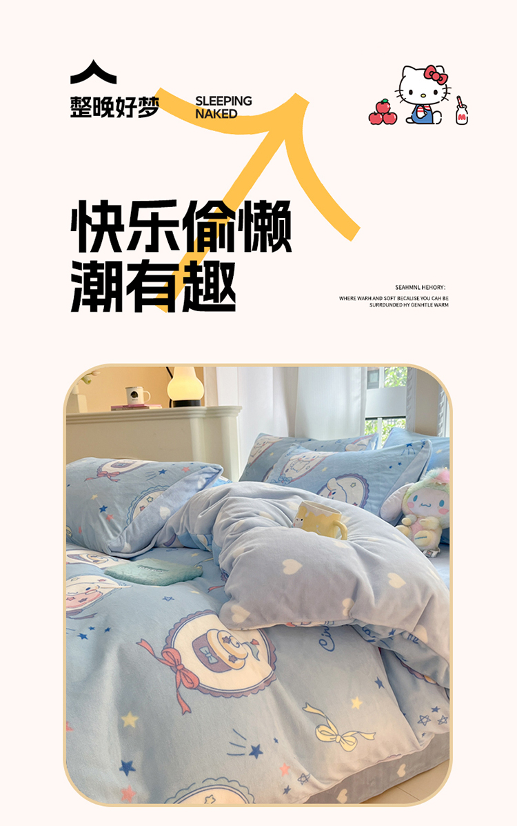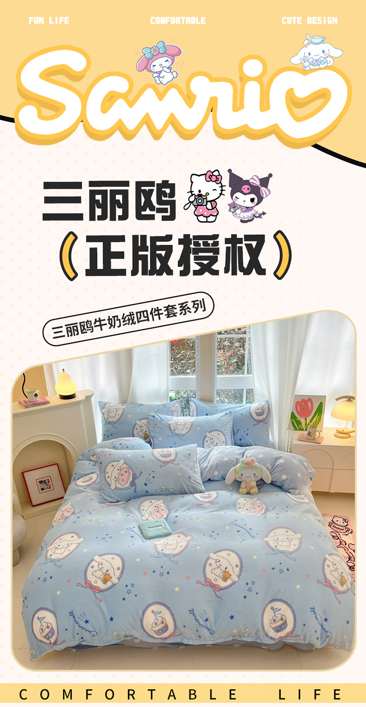 当前位置: 91家纺网 > 商品网购 > 床品套件 > 四件套 > 牛奶绒四件套 > 2024新款三丽鸥牛奶绒小版四件套 牛奶绒小版-蓝色玉桂狗